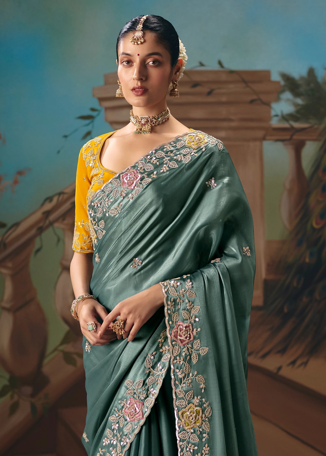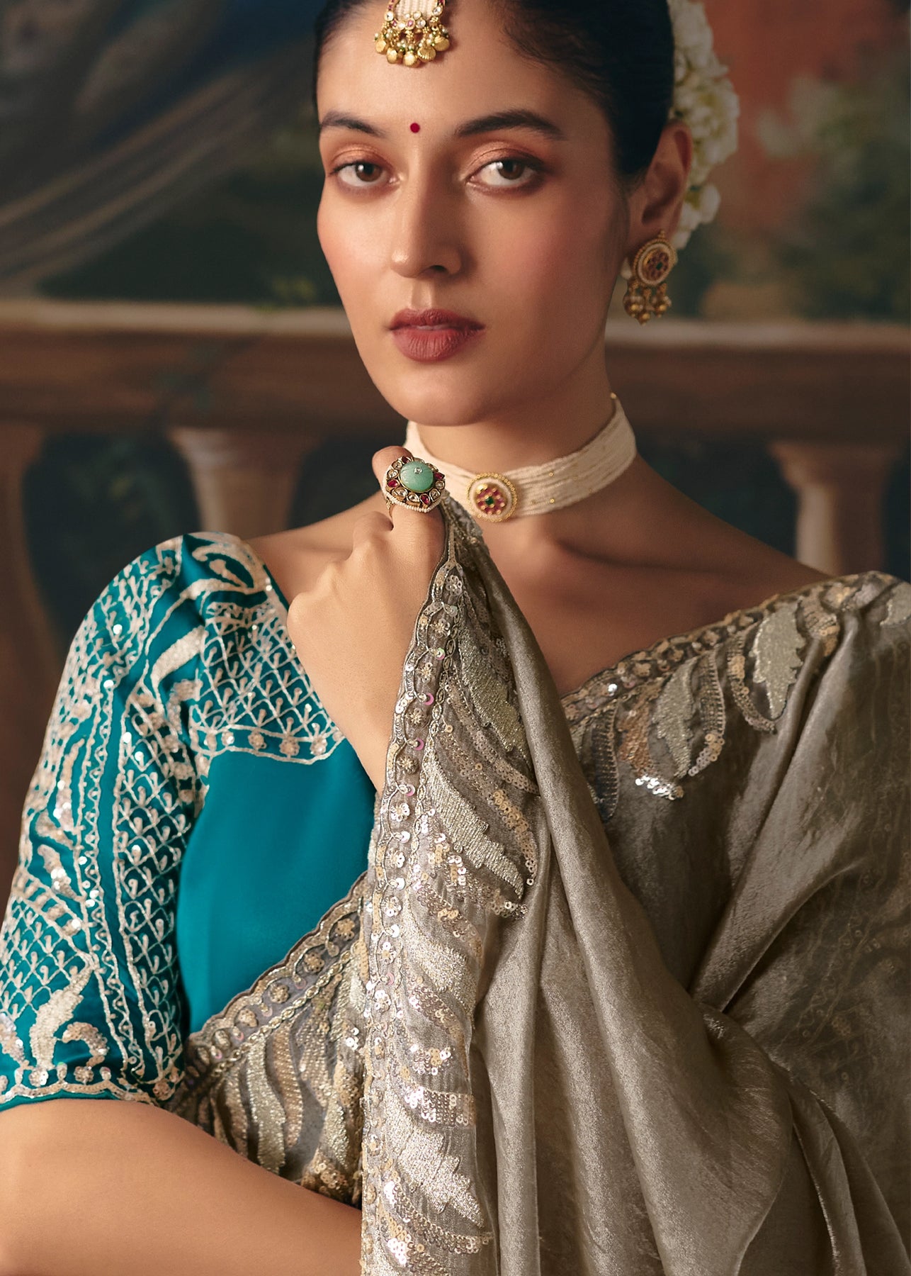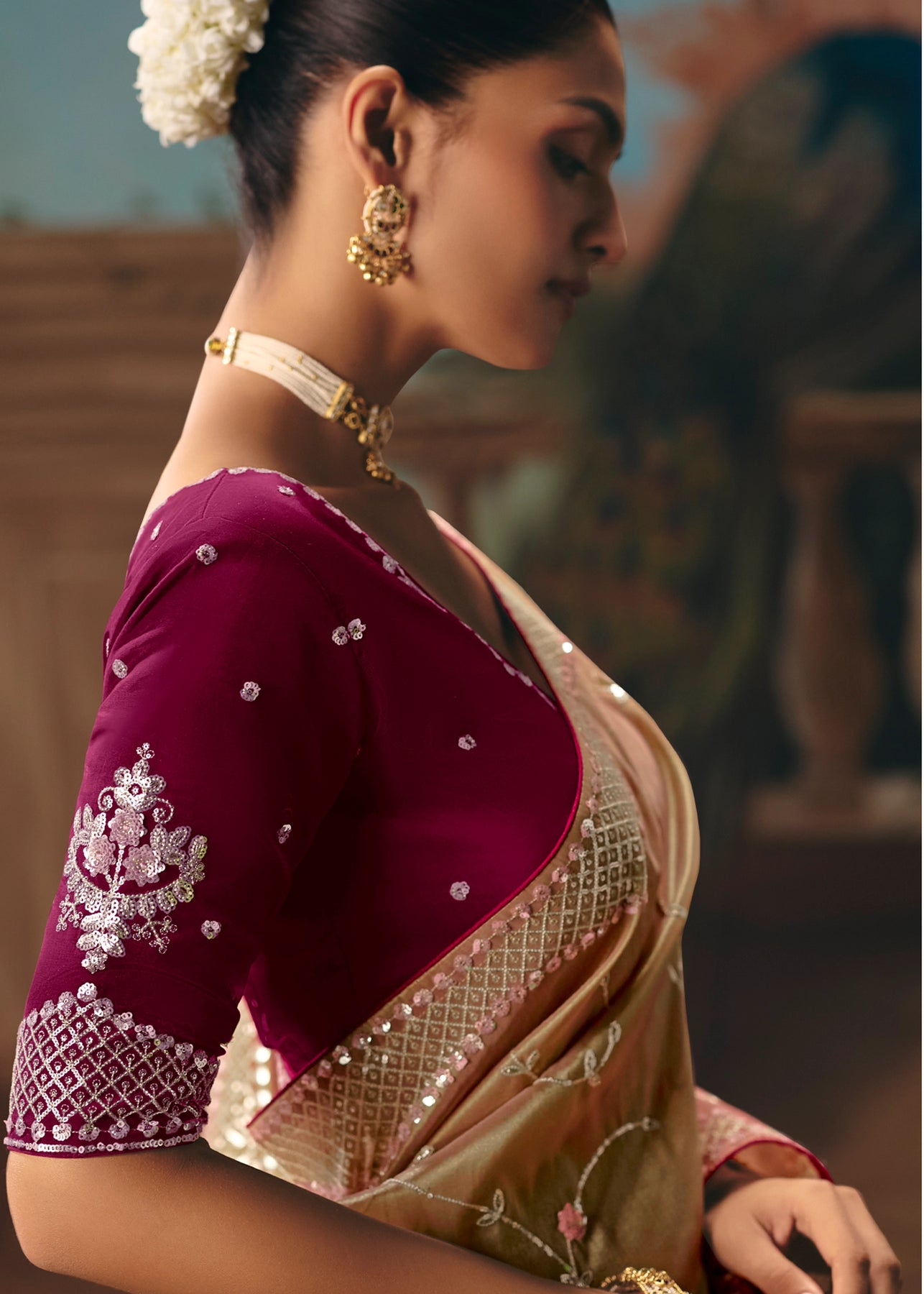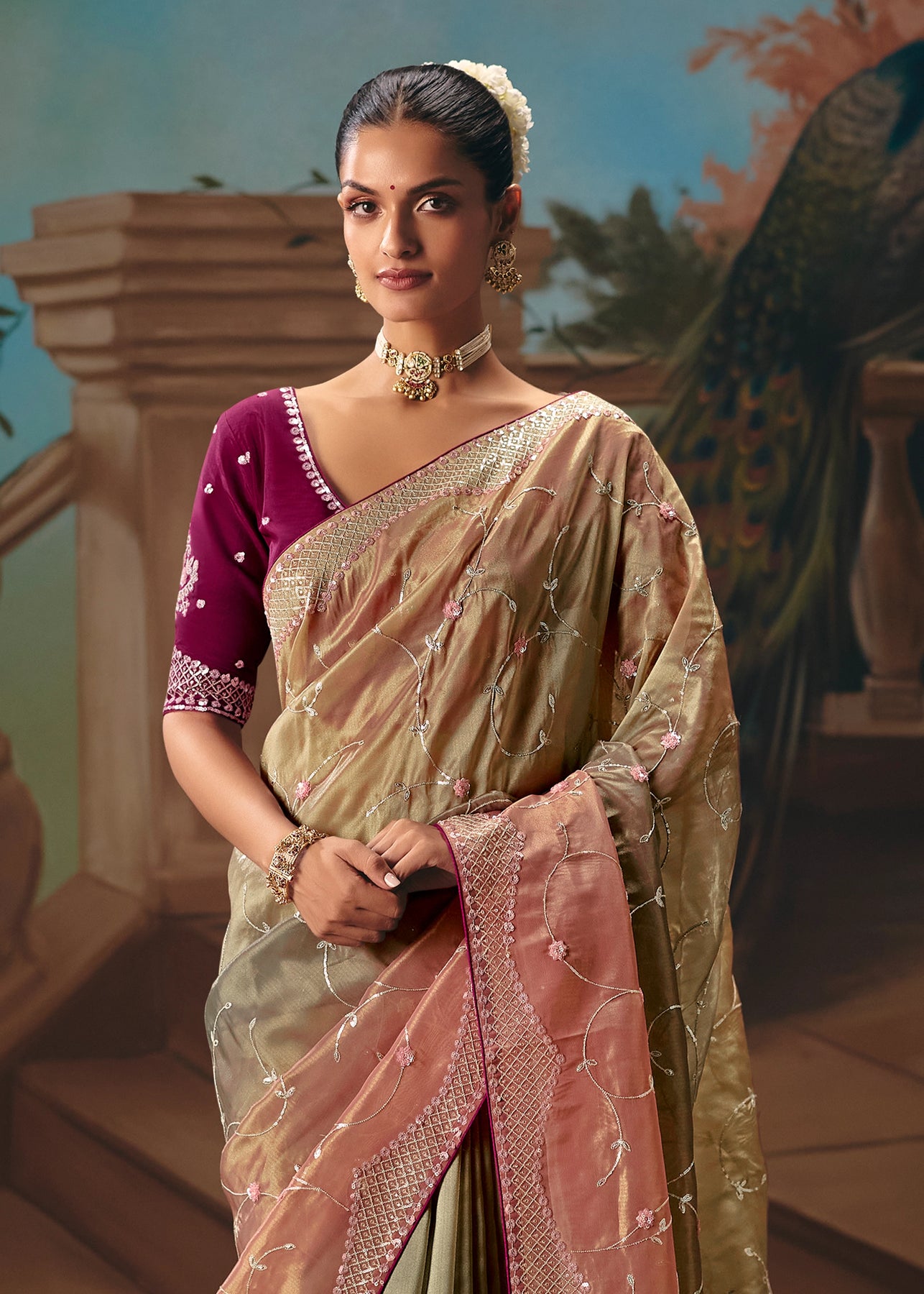 The Zari Banaras saree, draped with an effortless elegance by Abhirami in the mesmerizing song 'Jinguchaa,' alongside the iconic Kamal Haasan and set to the genius score of A.R. Rahman.