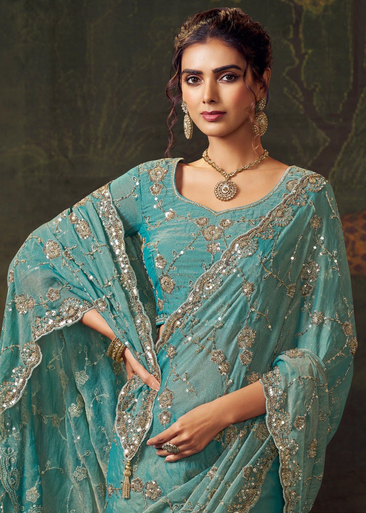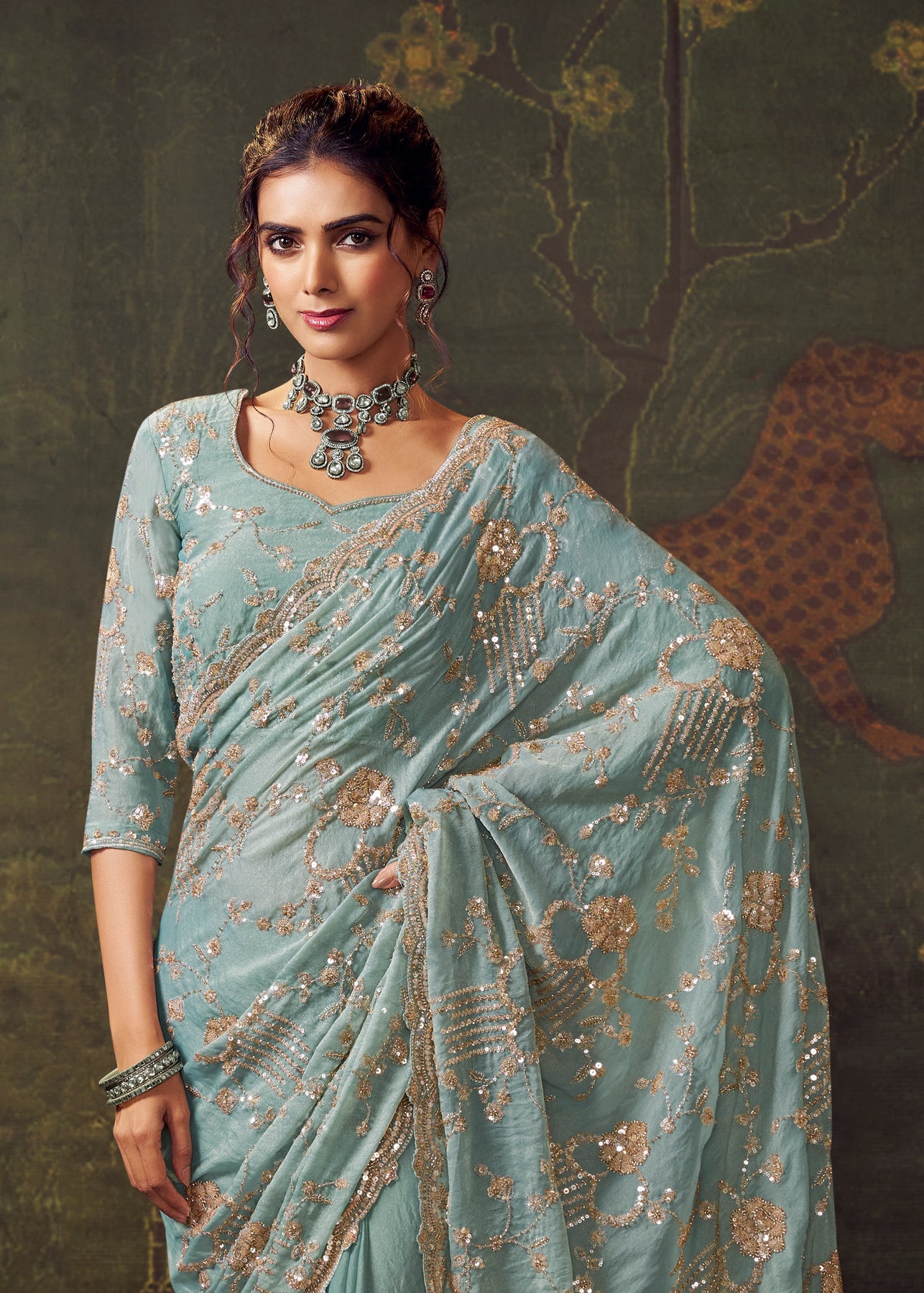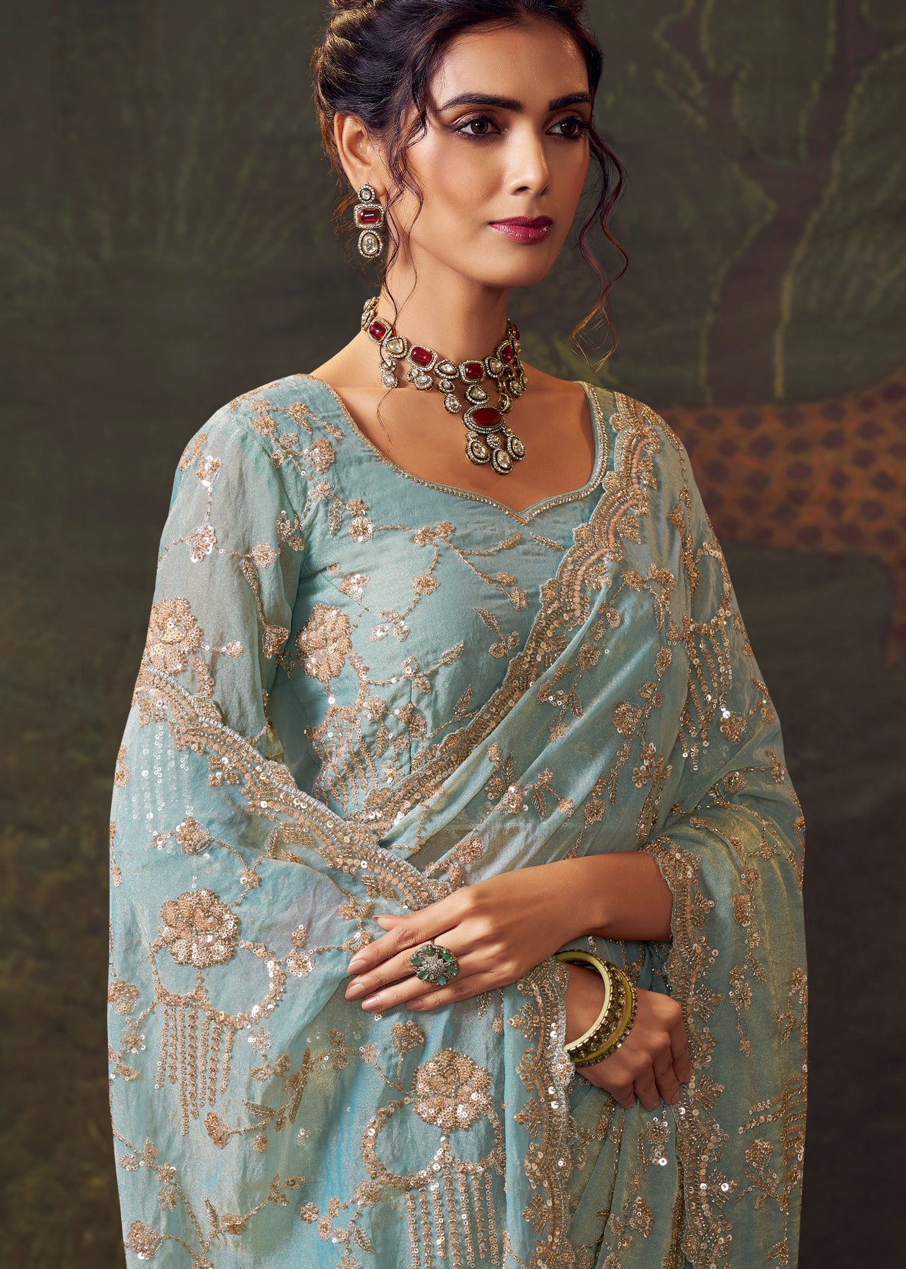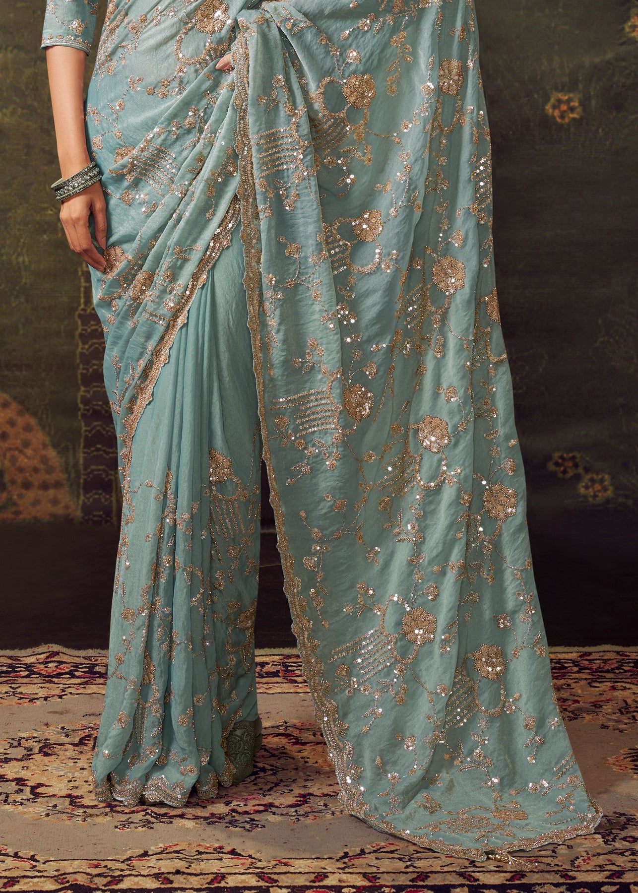 Mineral Blue Designer Tissue Silk Saree