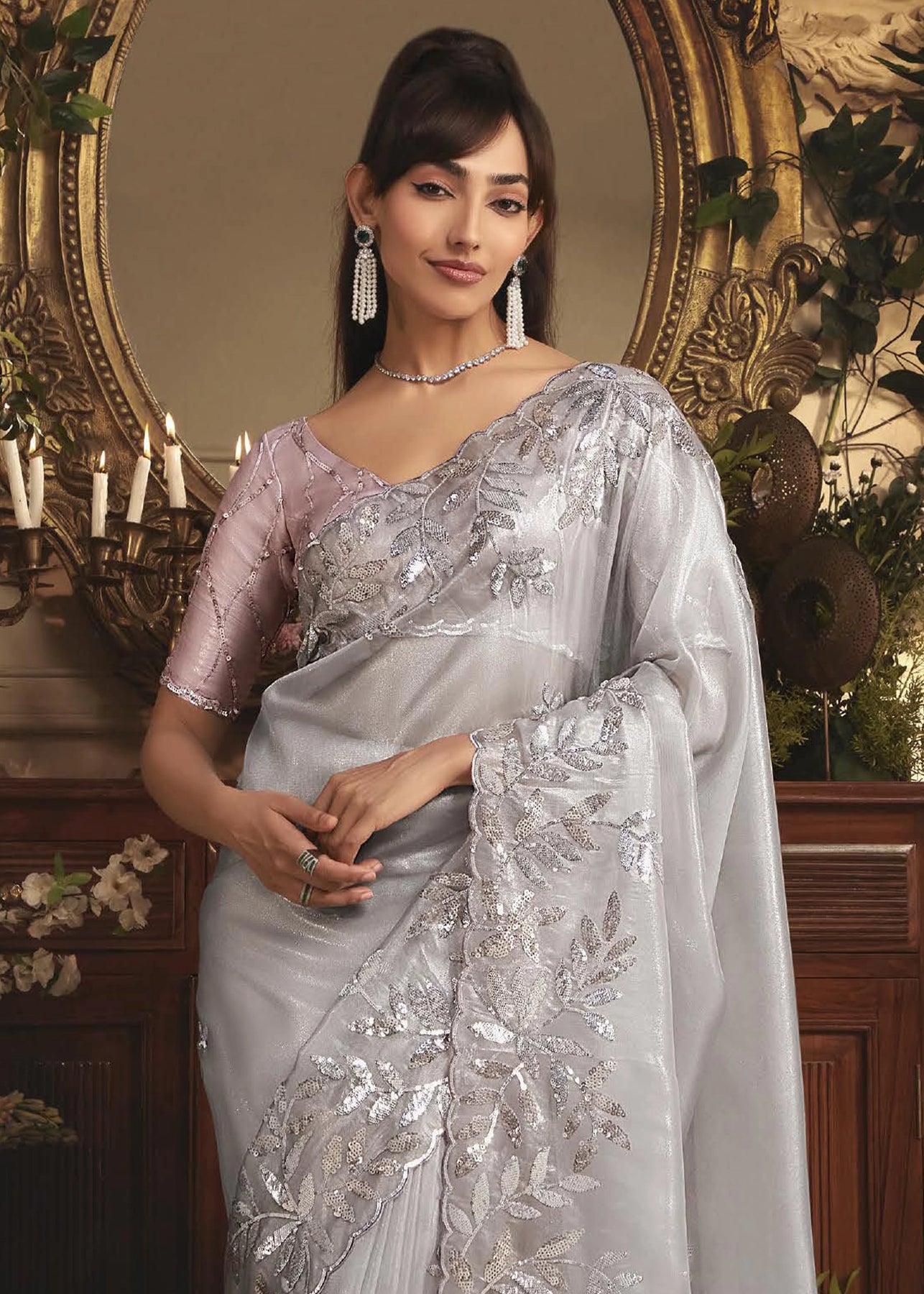 A bespoke saree with surreal charm in radiant shade with intricate zari work all over the drape. we added a...