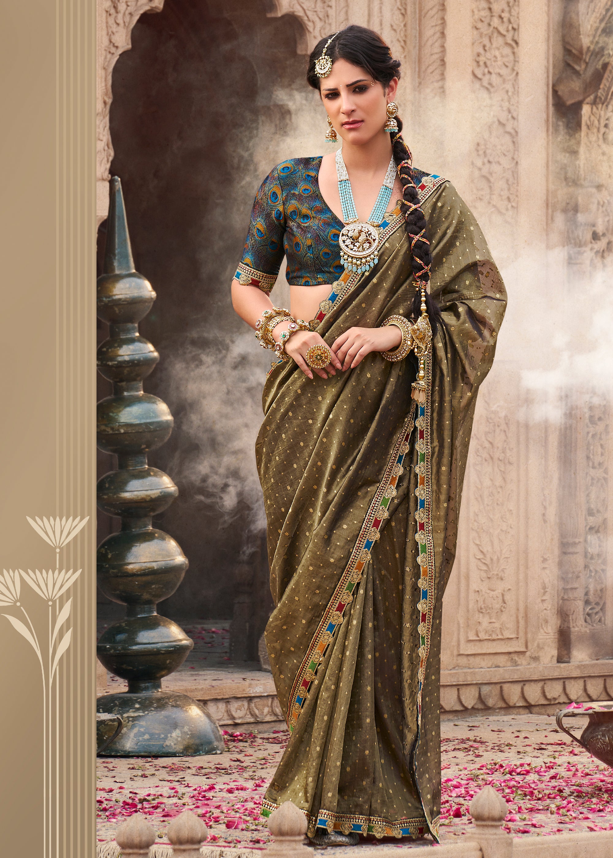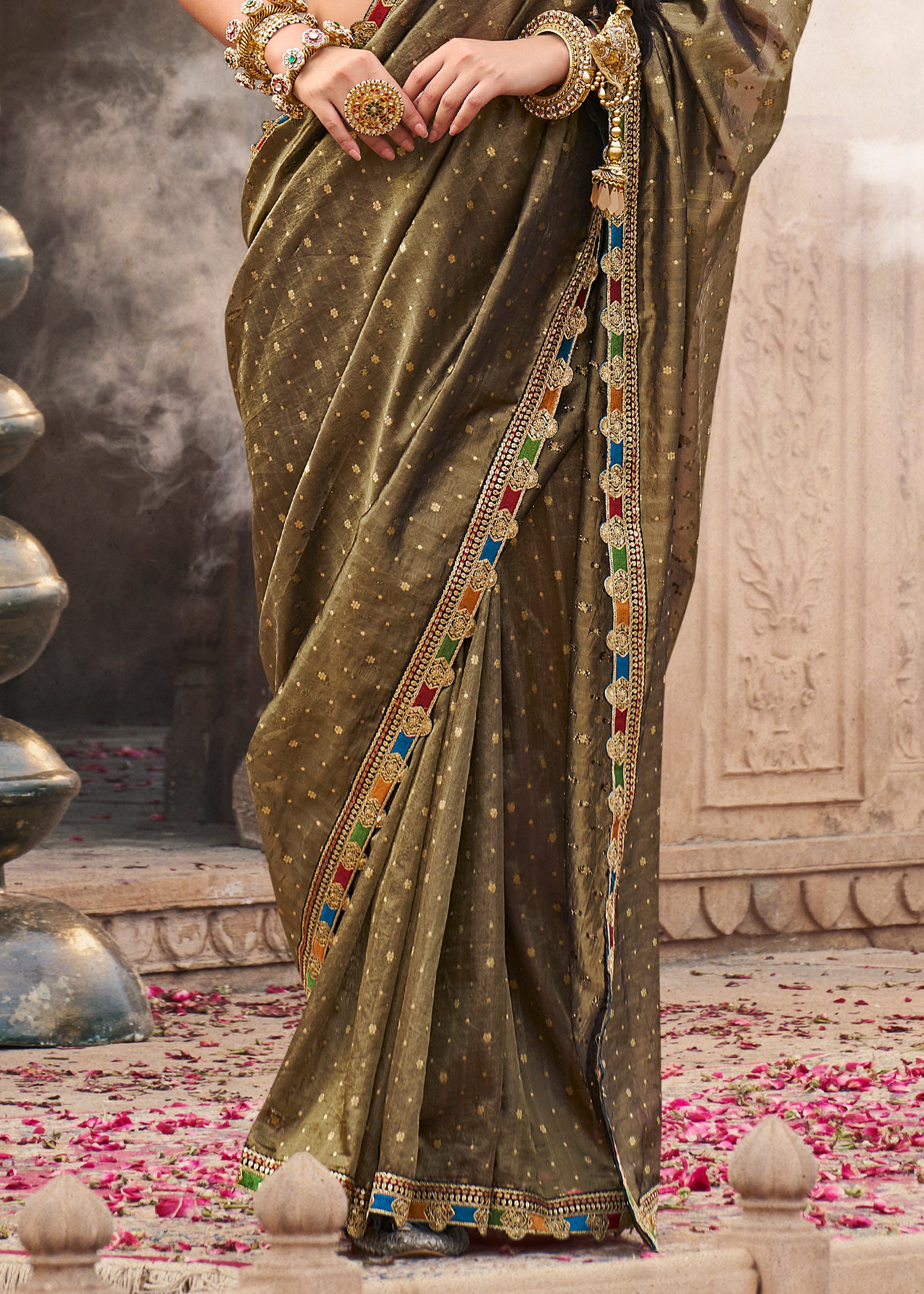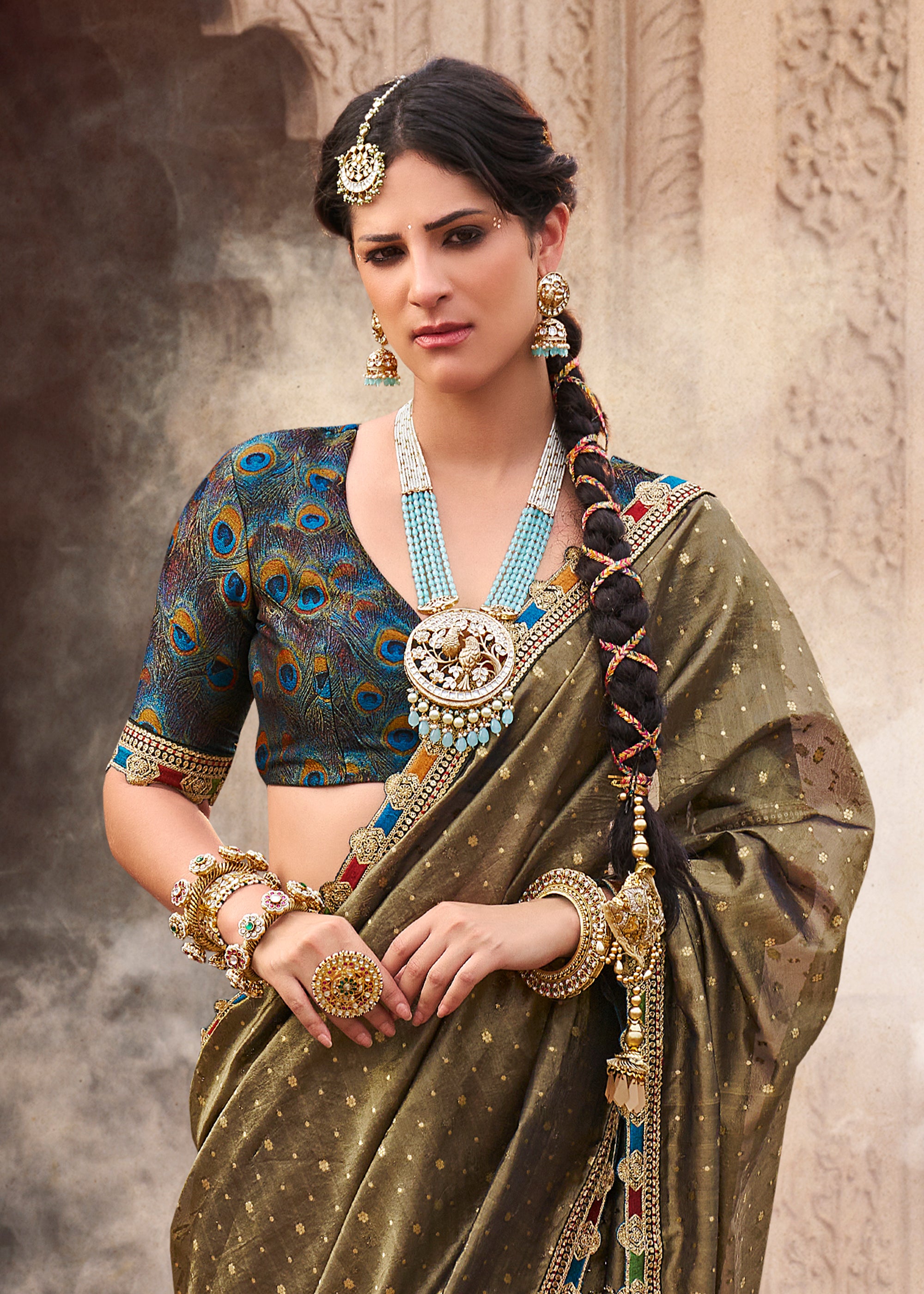 Avocado Green Designer Banarasi Tissue Silk Saree
