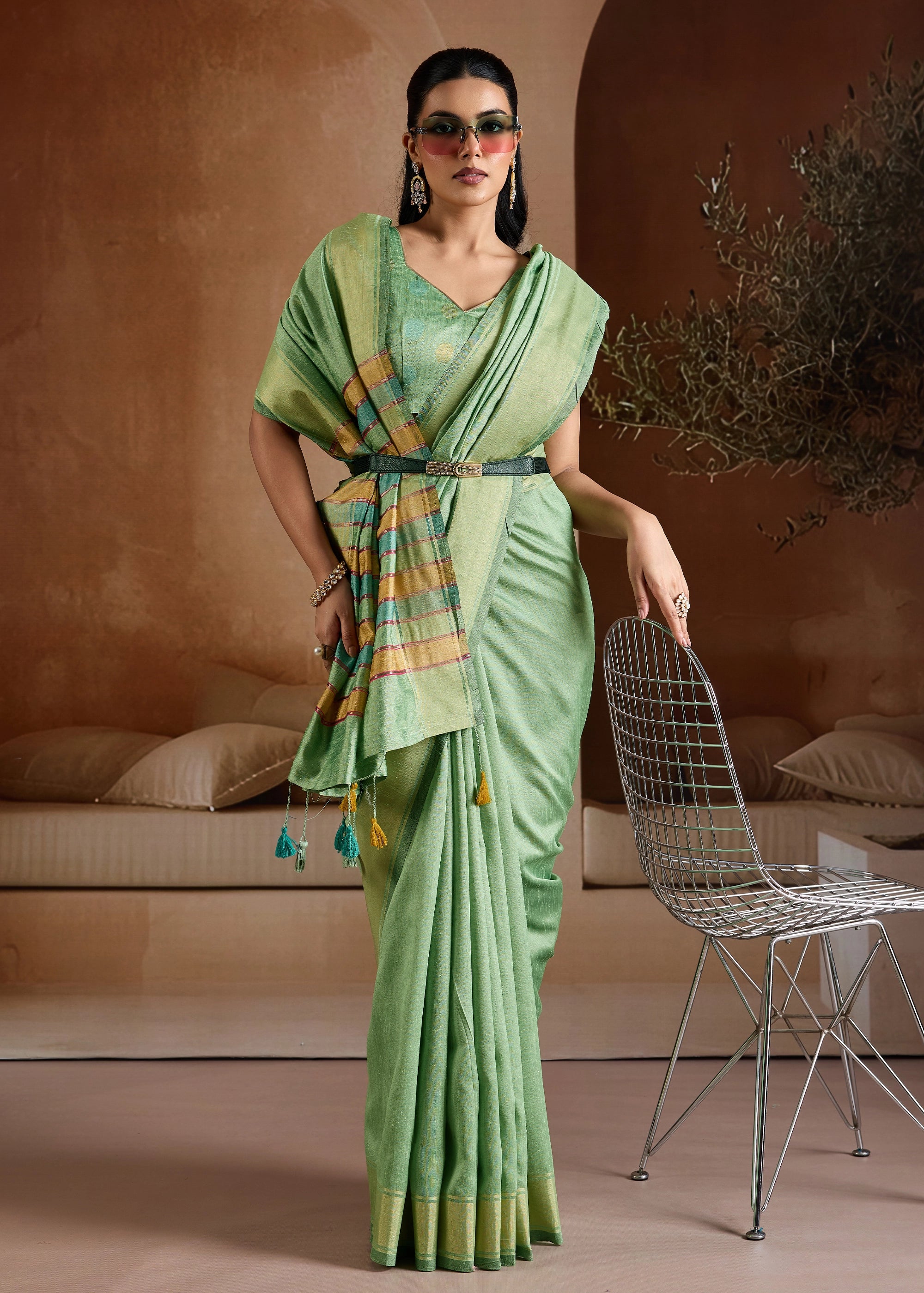 Pure delight that combine royalty and clam stability into your wardrobe. the rich weaving enhances the aura whereas the delicate colors exude the richness of tradition. this beautiful 6-yard gives a aura a more enchanting appeal for any special occasions.