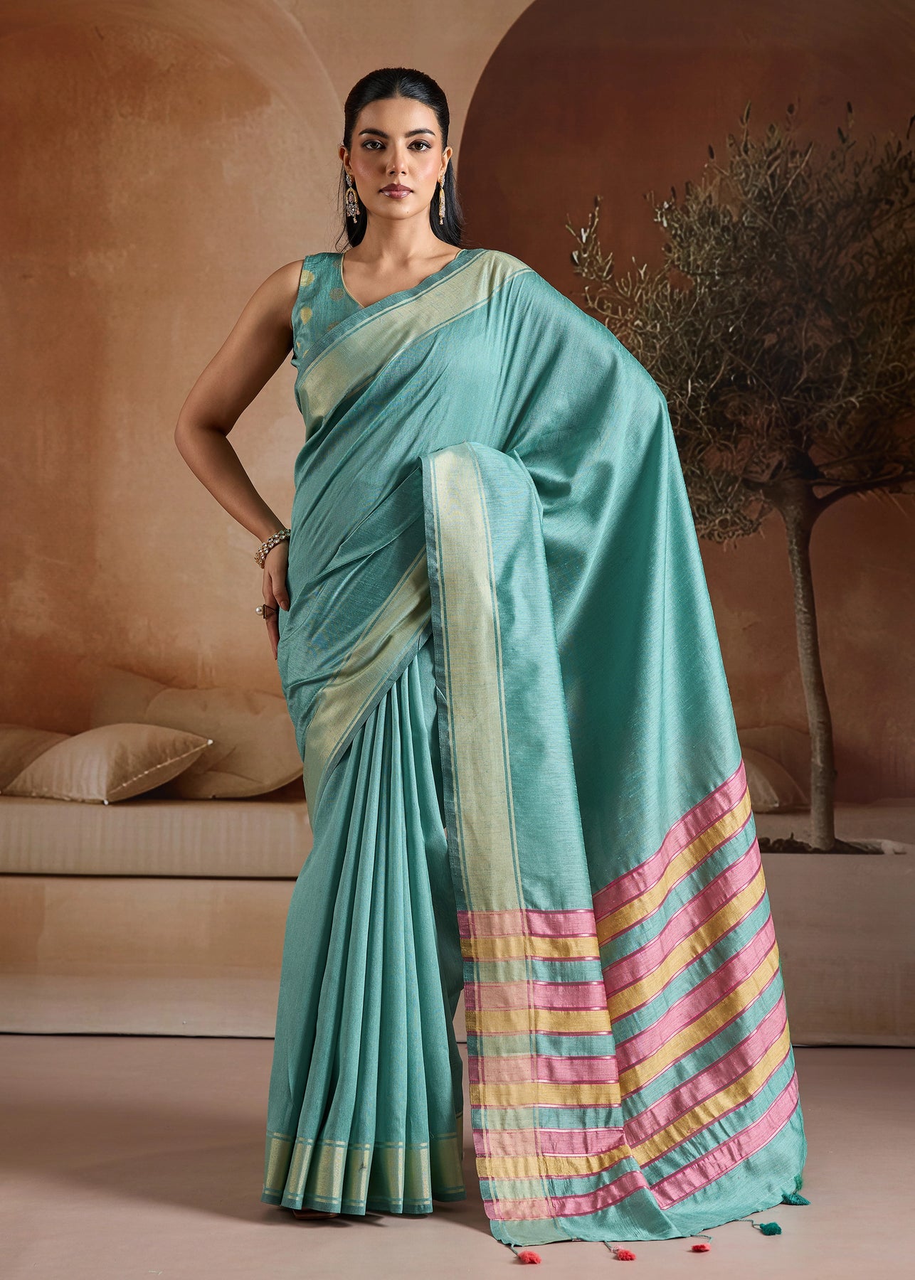 Saree length : 5.5 meter Blouse piece : 0.8 meter Fabric : Blended Silk Time to ship : 7 to 8 working days