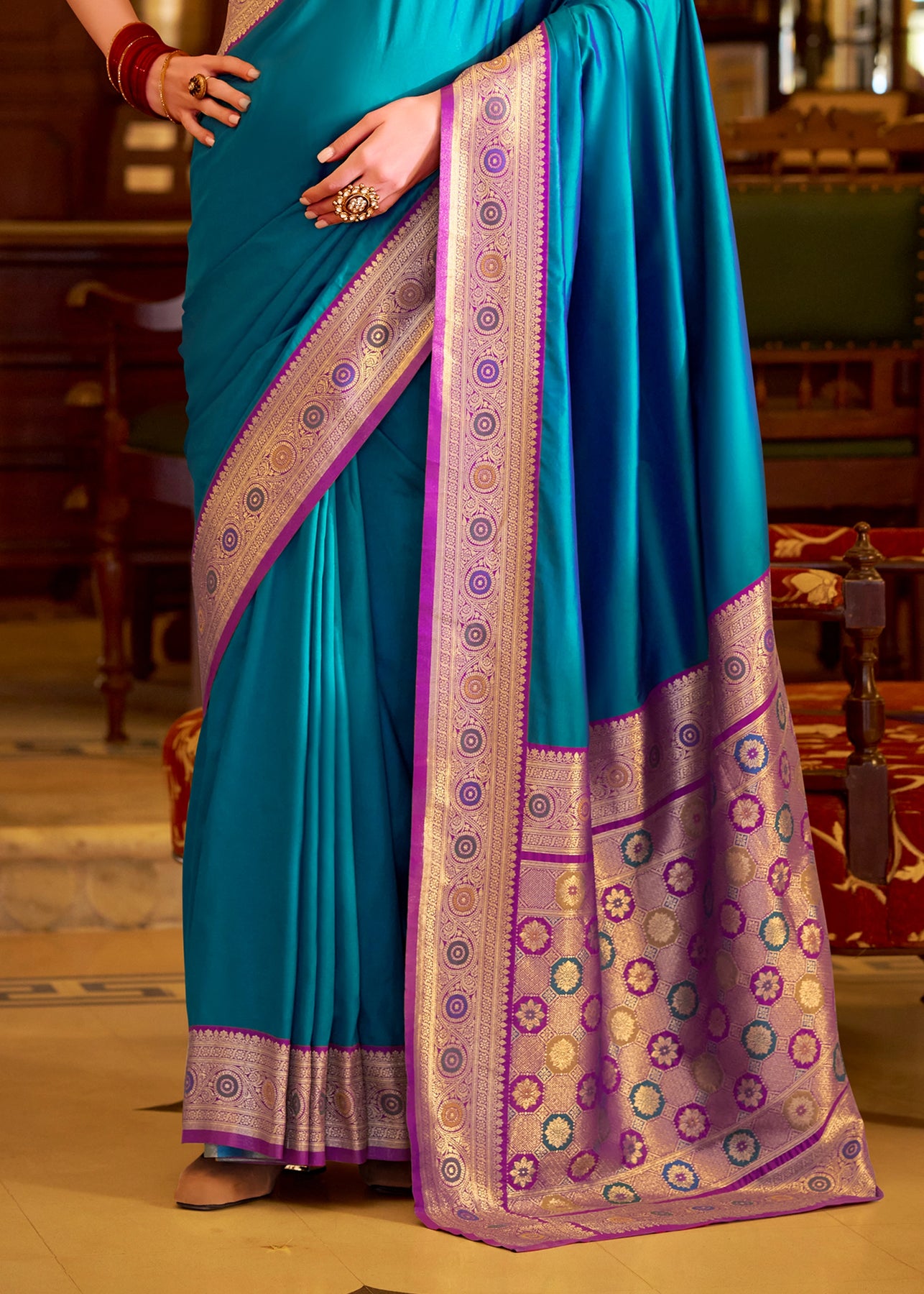 Ceramic Blue Woven Banarasi Silk Saree