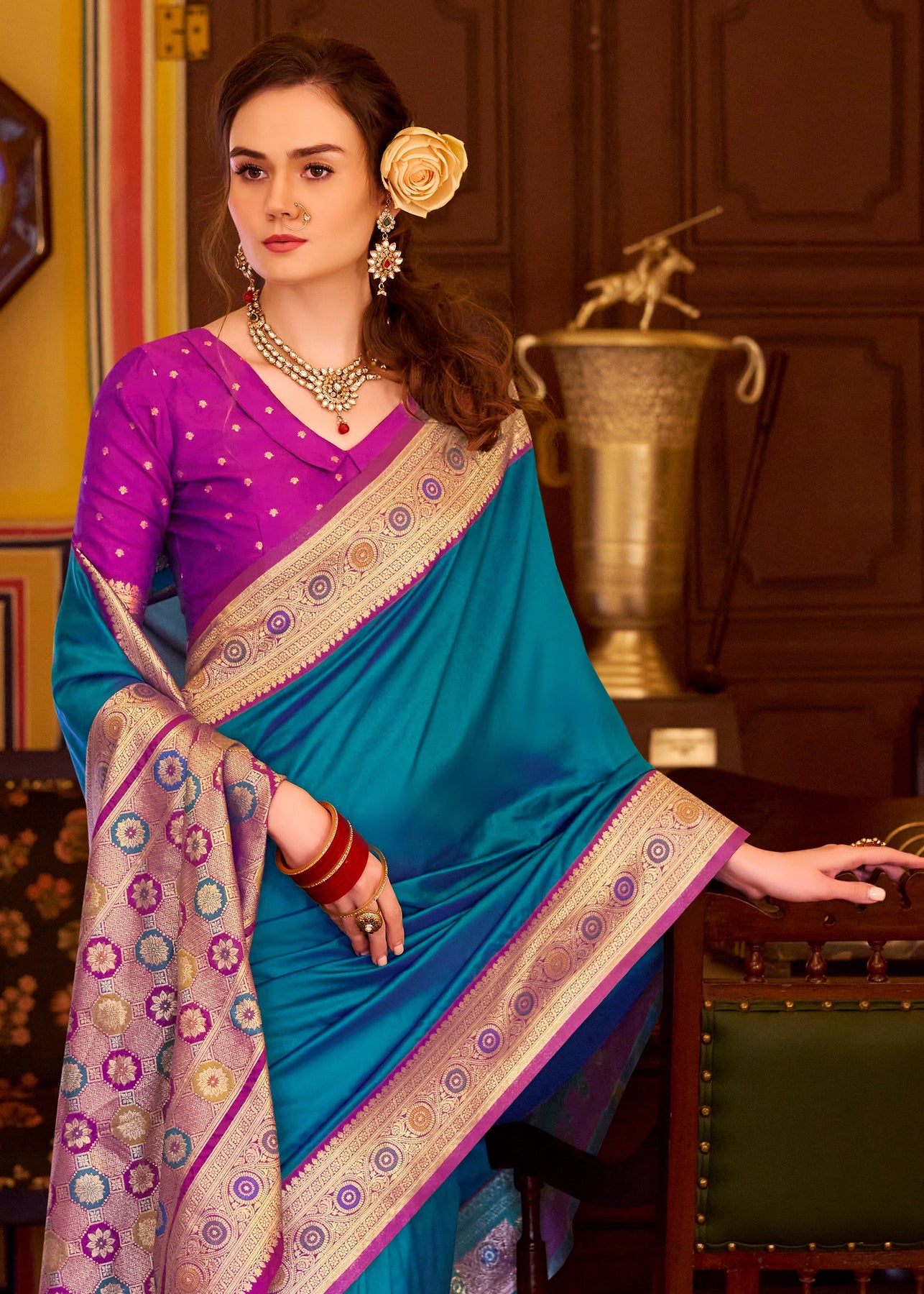 Radiance Blue Woven Banarasi Silk Saree