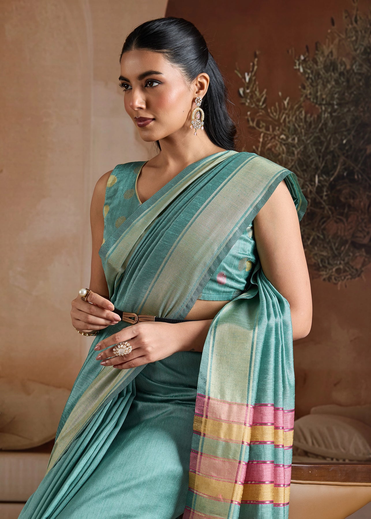 Pure delight that combine royalty and clam stability into your wardrobe. the rich weaving enhances the aura whereas the delicate colors exude the richness of tradition. this beautiful 6-yard gives a aura a more enchanting appeal for any special occasions.