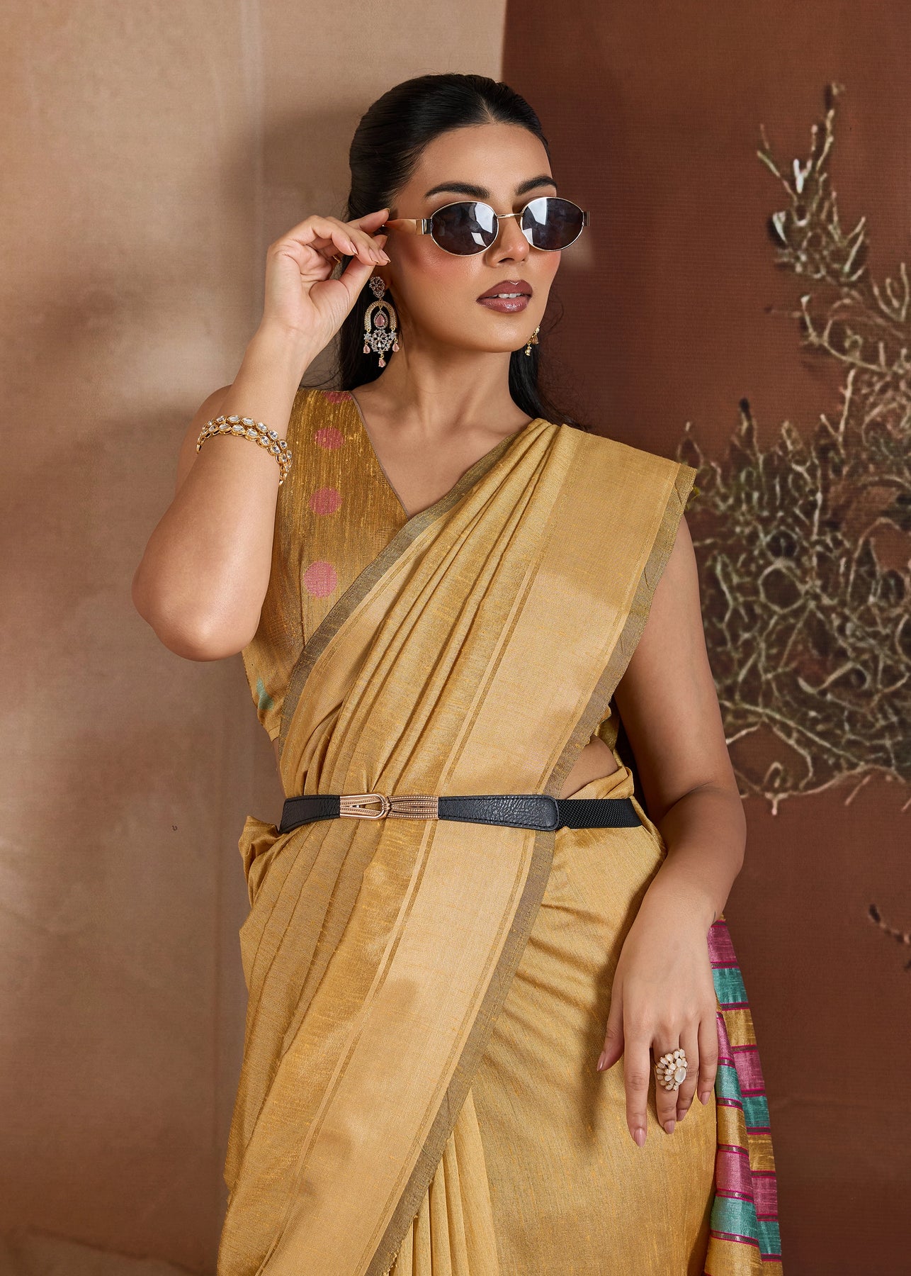 Golden Beige Woven Banarasi Silk Saree