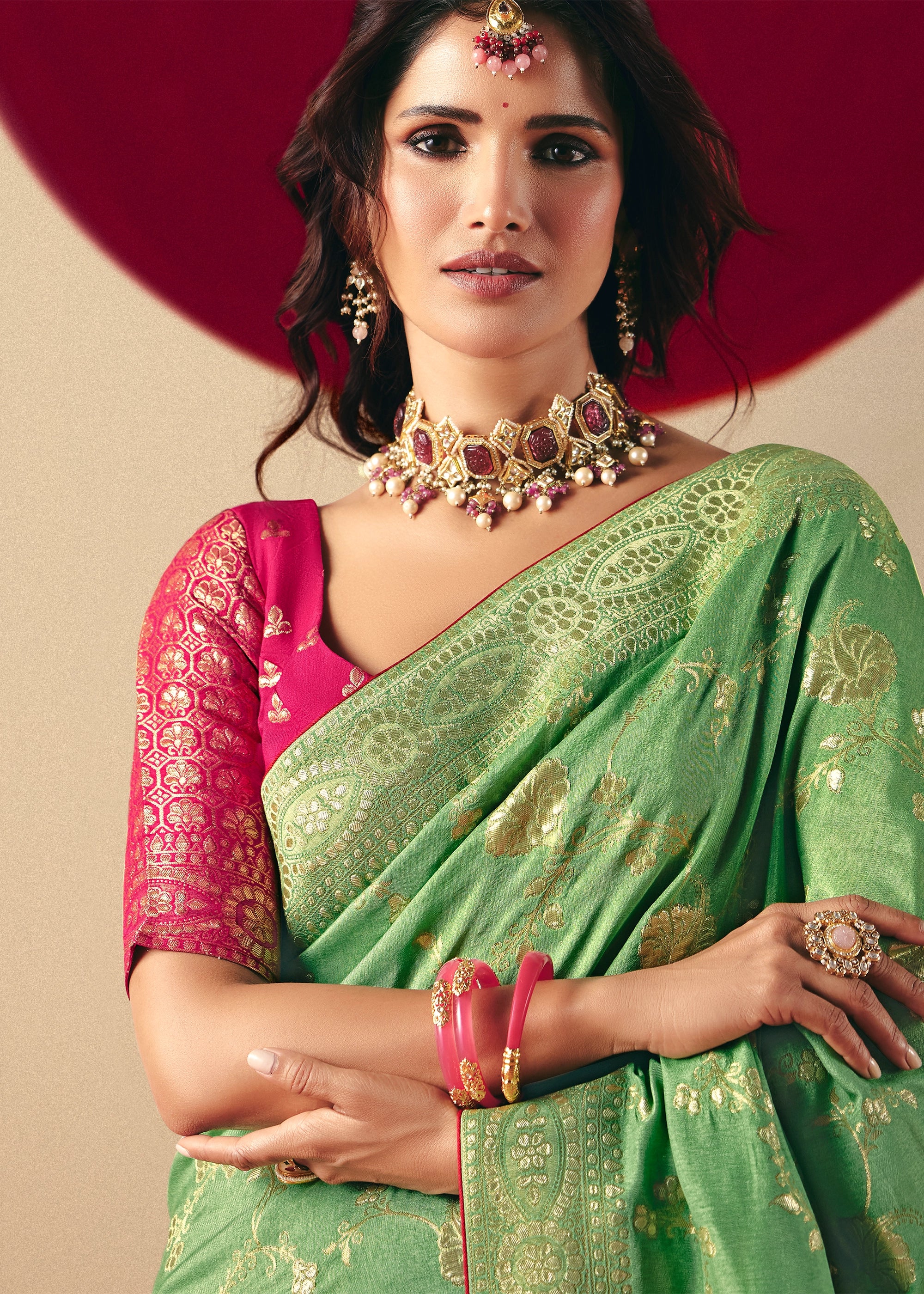 Pure delight that combine royalty and clam stability into your wardrobe. the rich weaving enhances the aura whereas the delicate colors exude the richness of tradition. this beautiful 6-yard gives a aura a more enchanting appeal for any special occasions.