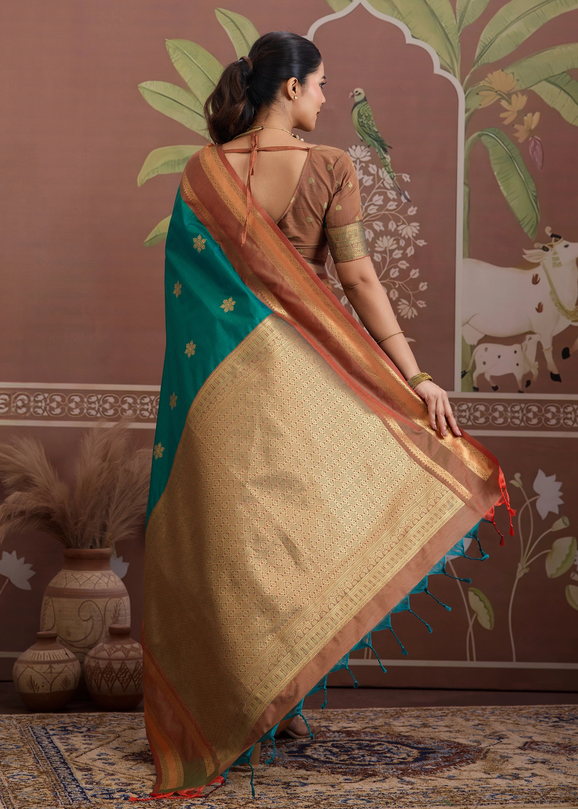 Discover the understated luxury of tradition with this exquisiteTussar Silk Saree, celebrated for its natural texture and rich golden sheen. Woven from pure tussar silk threads, this saree embodies earthy elegance and timeless craftsmanship.