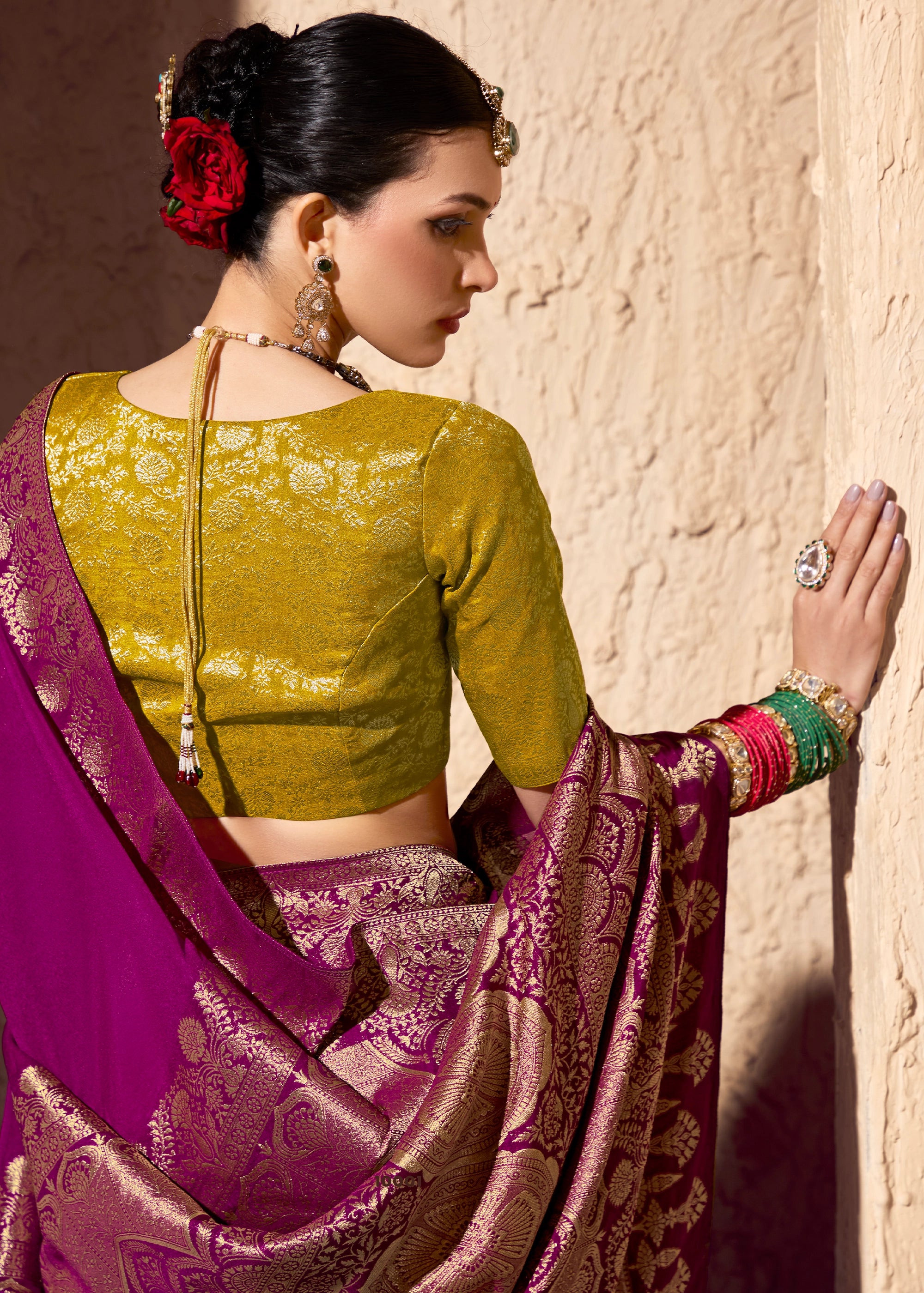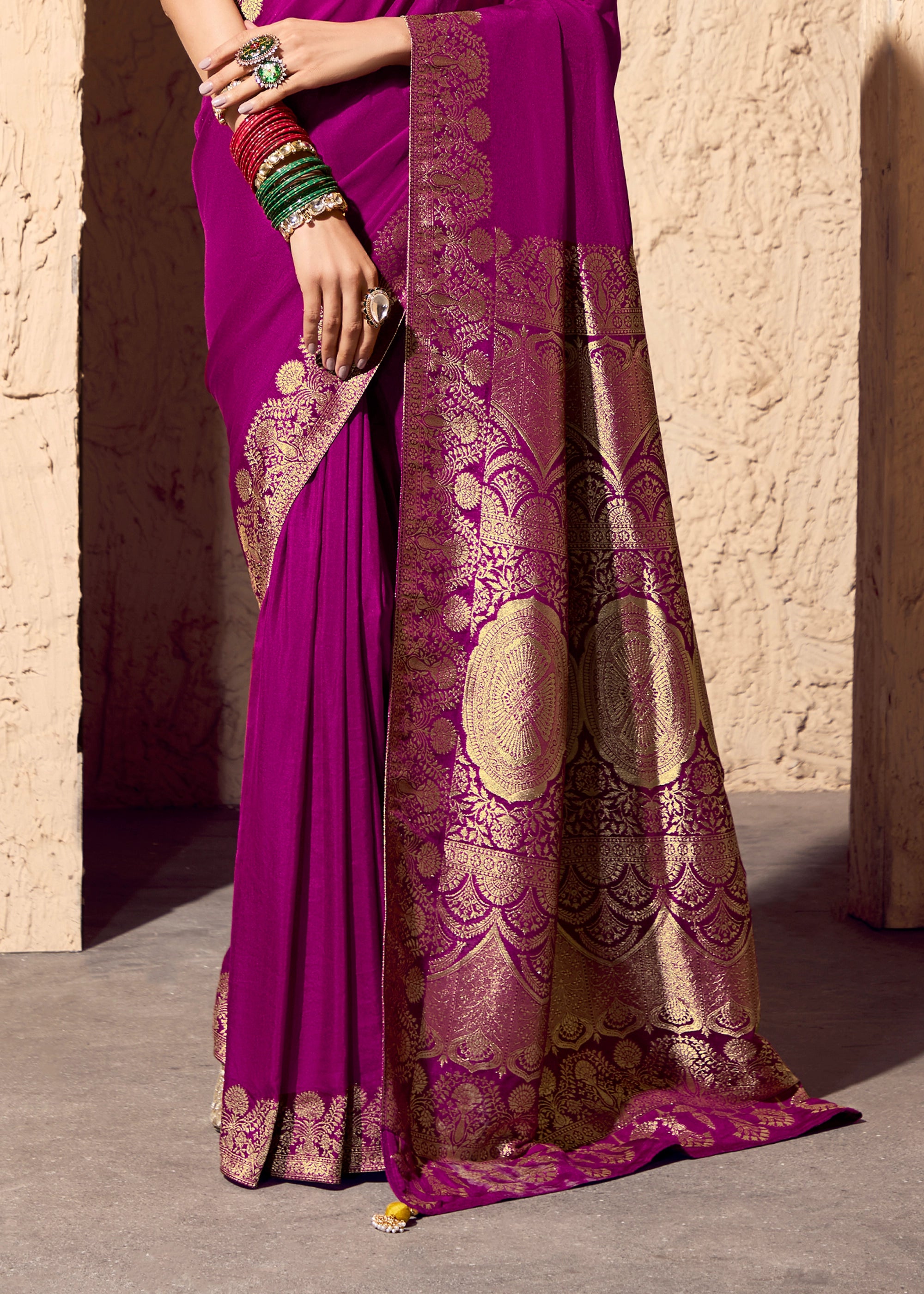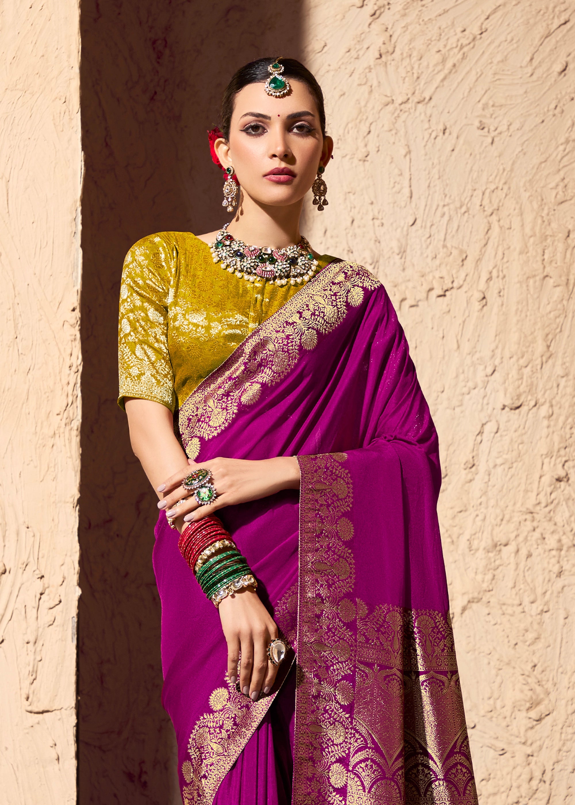 Deep Orchid Purple Woven Crepe Georgette Saree