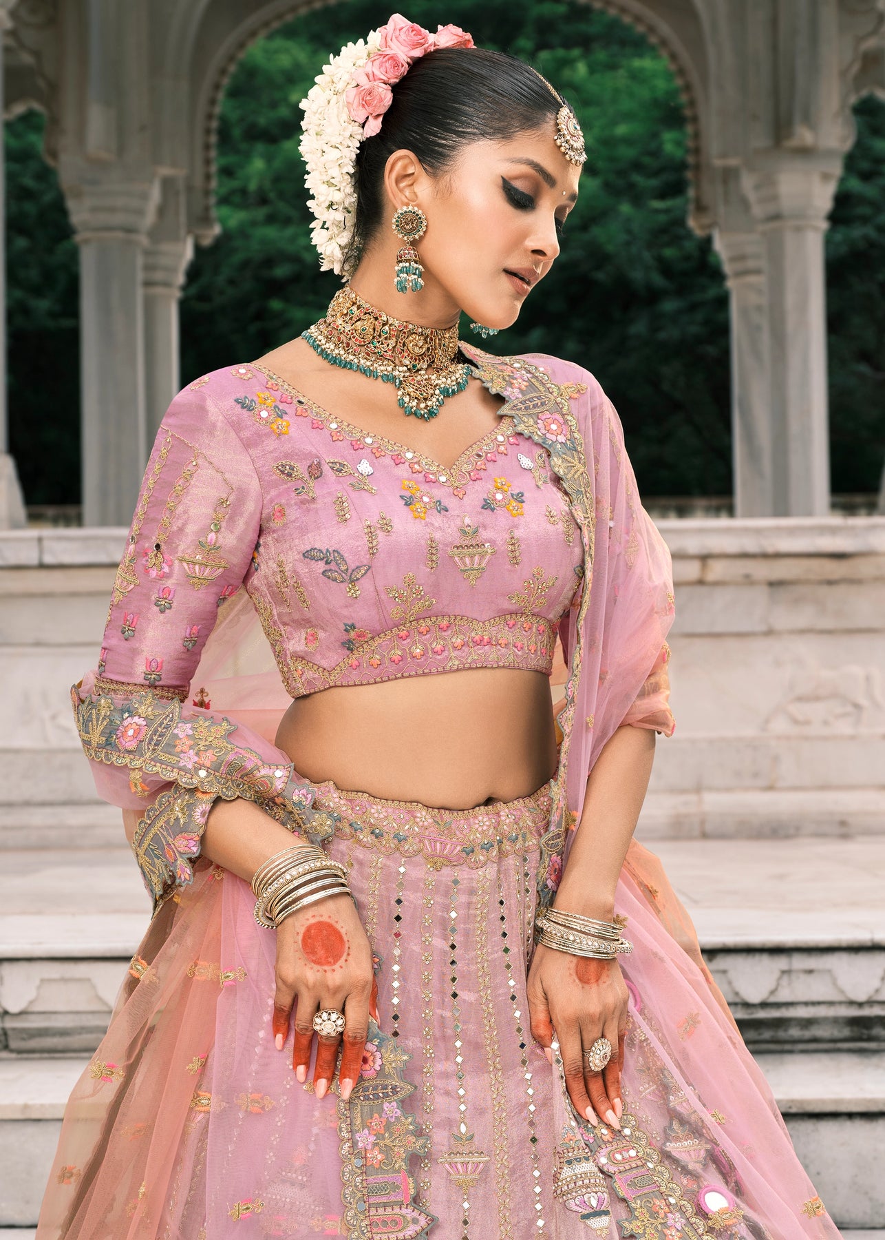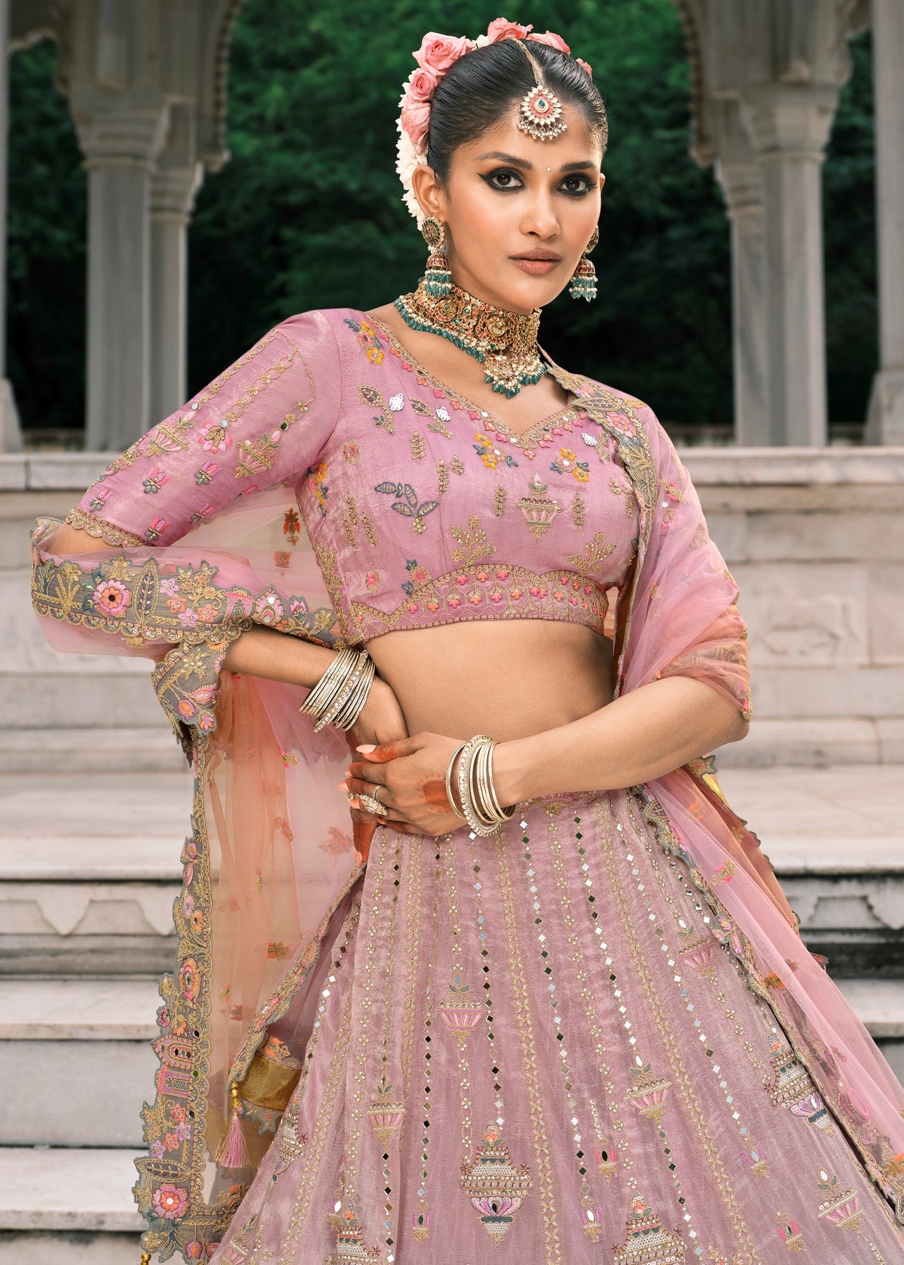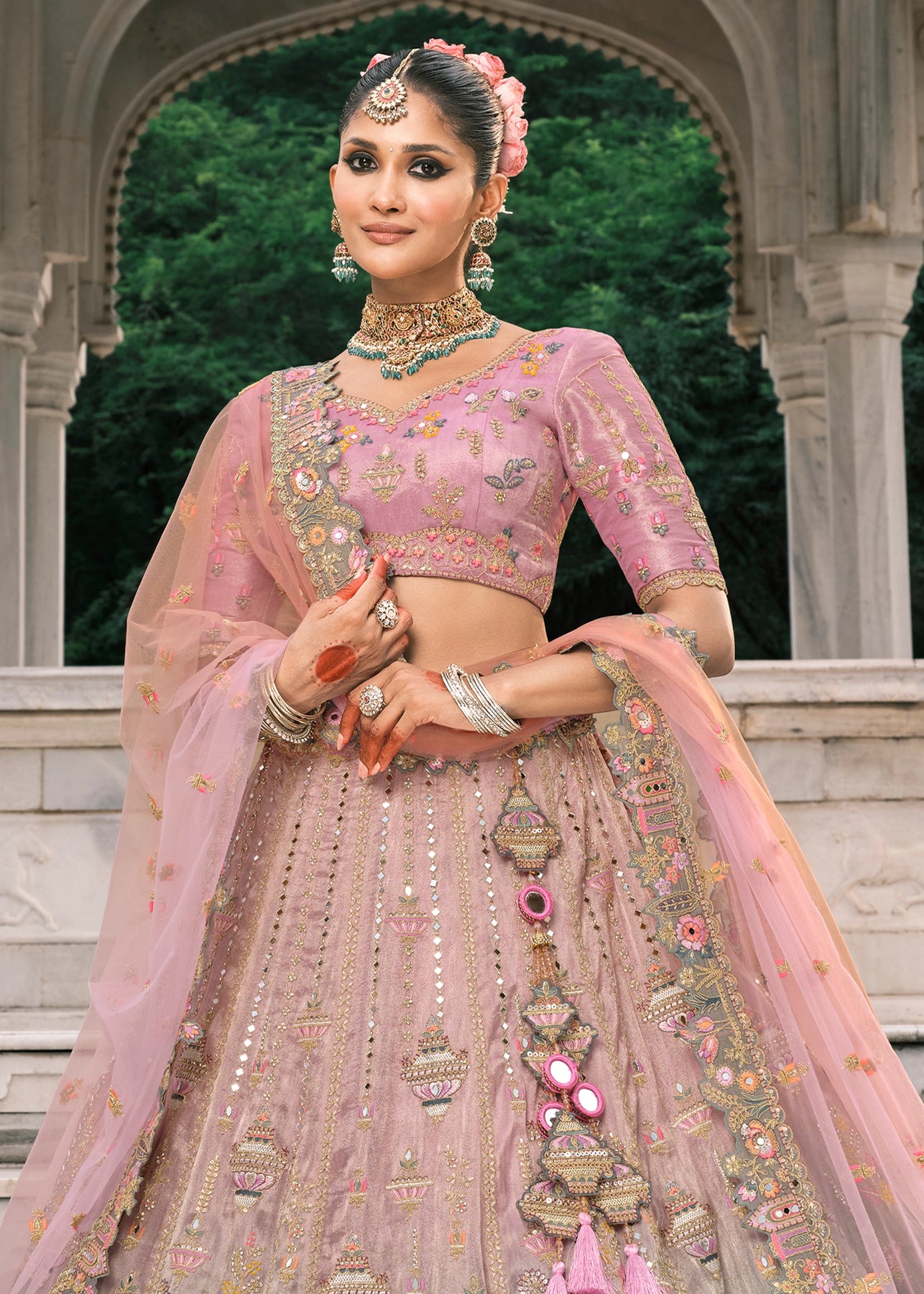 Be an angel and create and establish a smashing influence on everybody by carrying this traditional Banarasi Brocade saree. This saree...