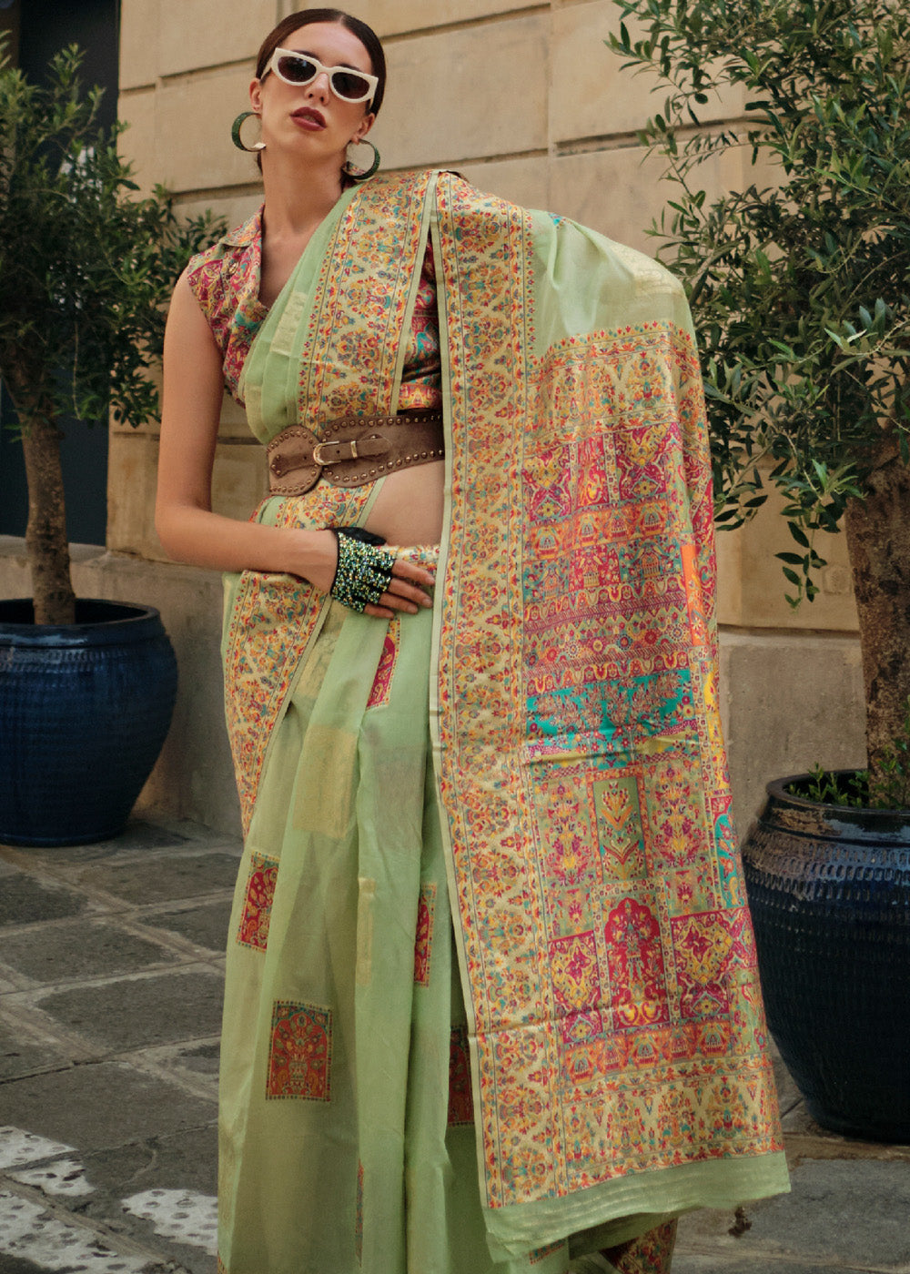 Capri Green Woven Silk Saree With Kashmiri Pallu