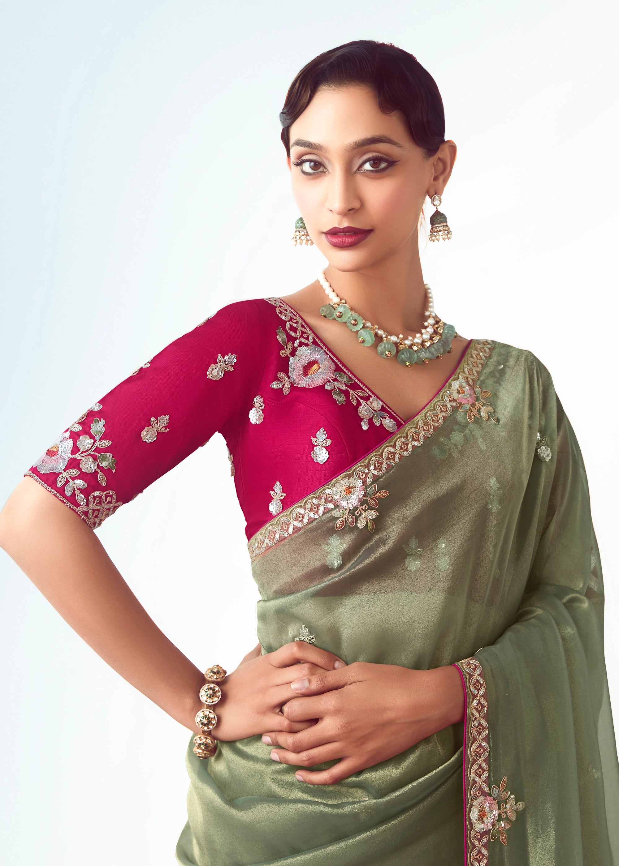 Drape yourself in this beautiful Banarasi saree with Zari woven work. This saree is woven by master weavers of Banaras. Be it your sangeet ceremony or haldi or any auspicious ceremonies, this saree will be the best companion, with the rich style and color coordination this saree is a must in wardrobe! Style it with a potli bag and high heels for a flawless look.