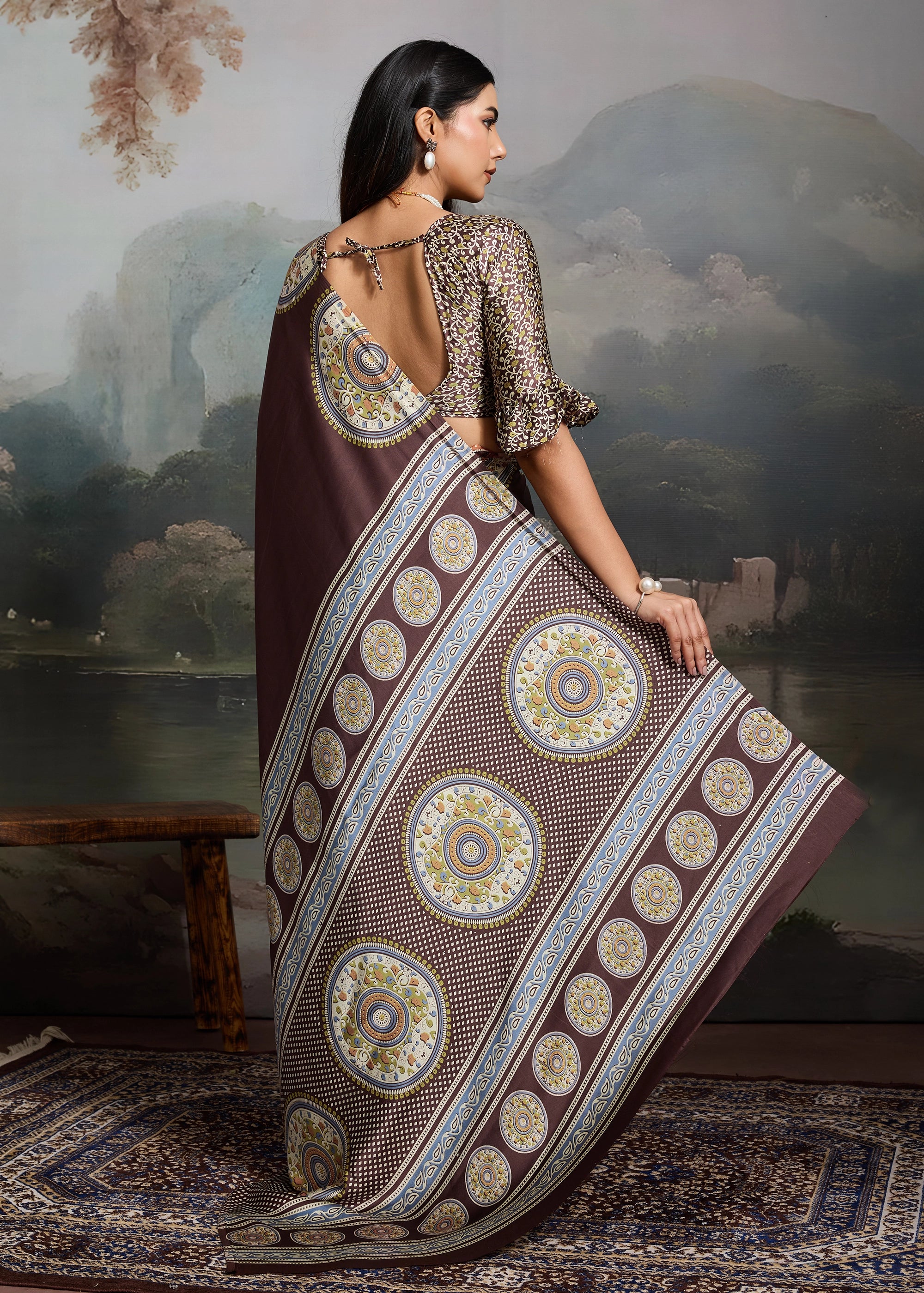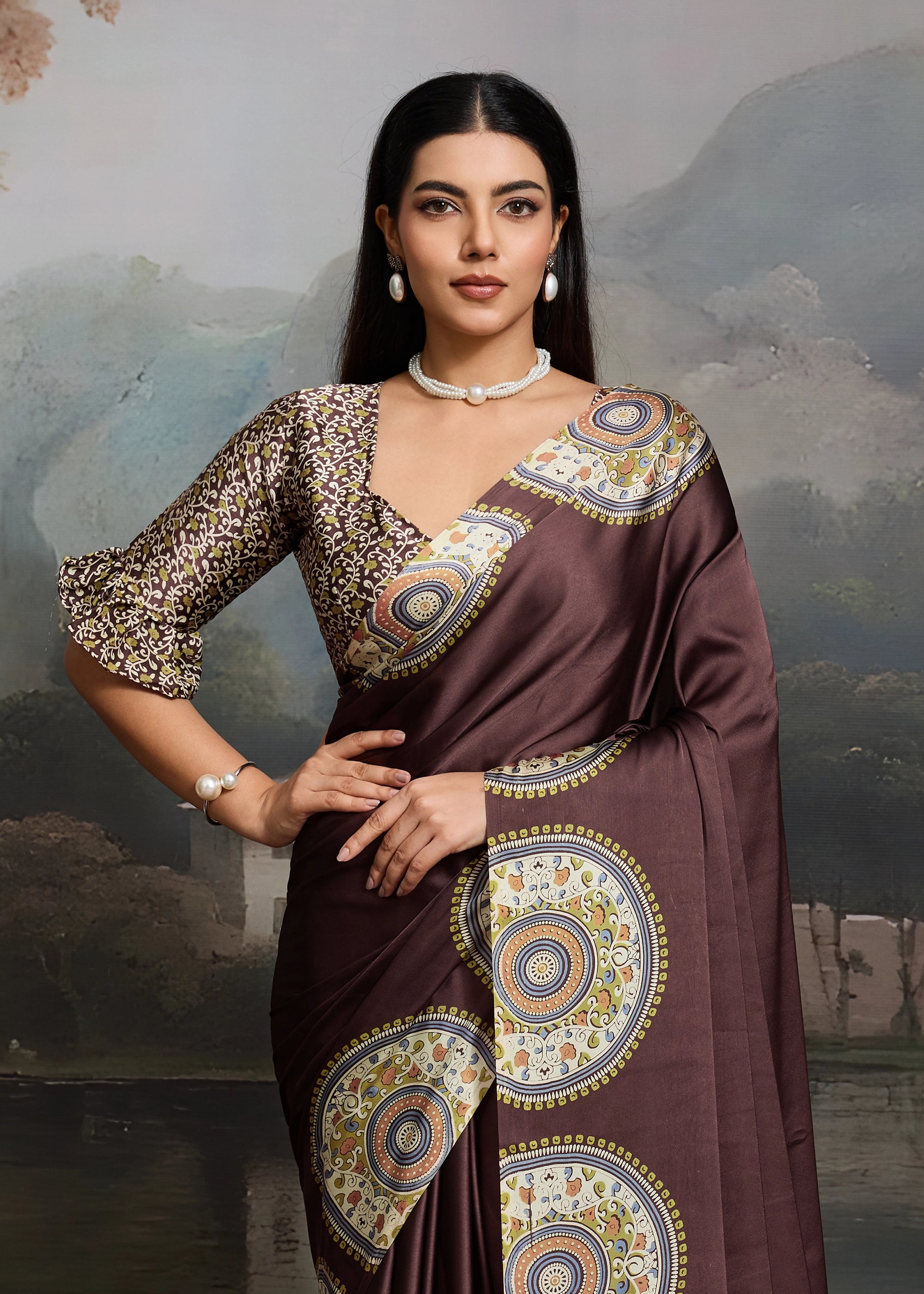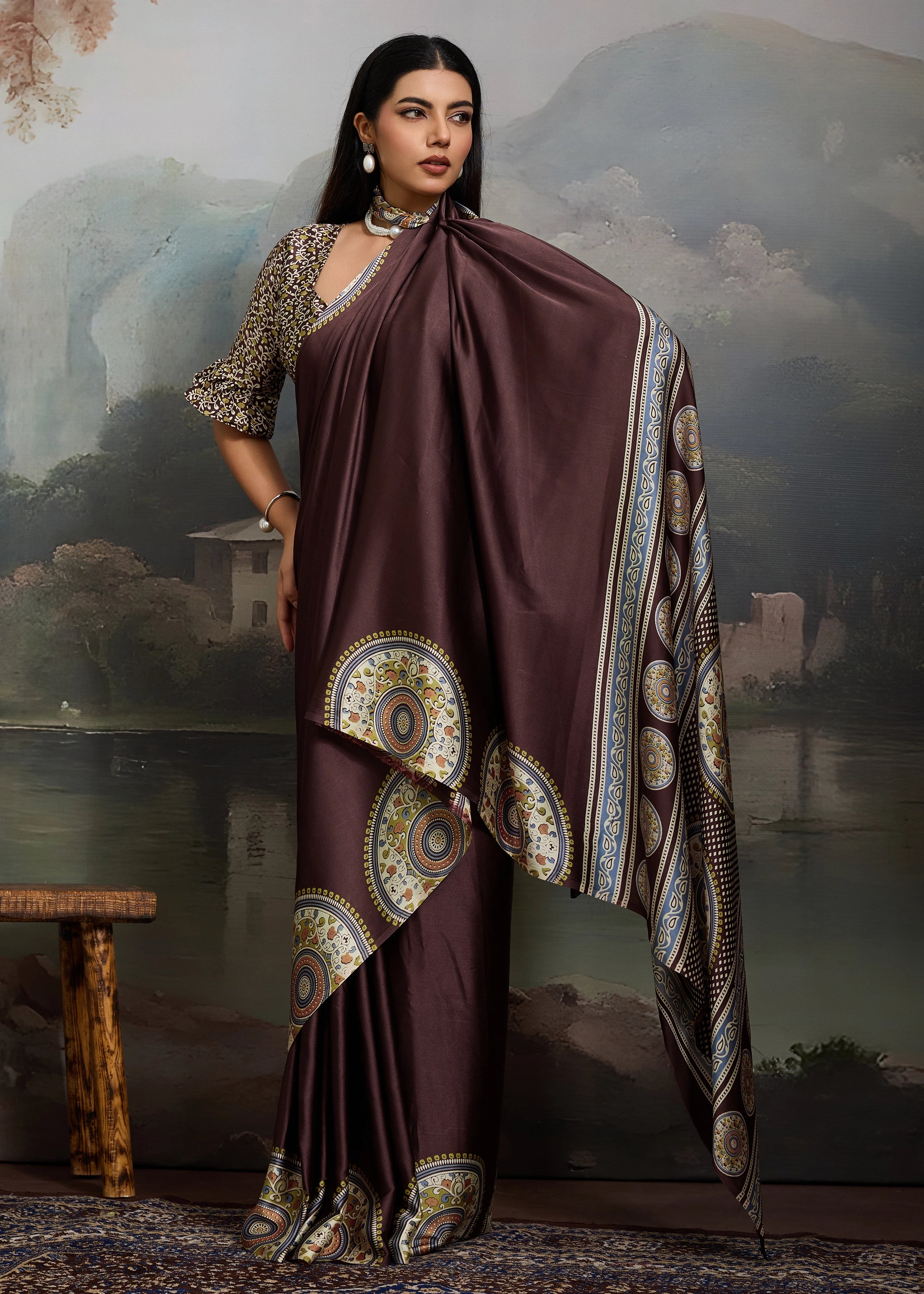 Drape yourself in the luxurious embrace of our Digital Printed Satin Silk Saree, a harmonious blend of traditional artistry and contemporary design. Crafted from the finest satin silk, this saree offers an unparalleled soft touch and a beautiful, flowing drape that accentuates every silhouette.