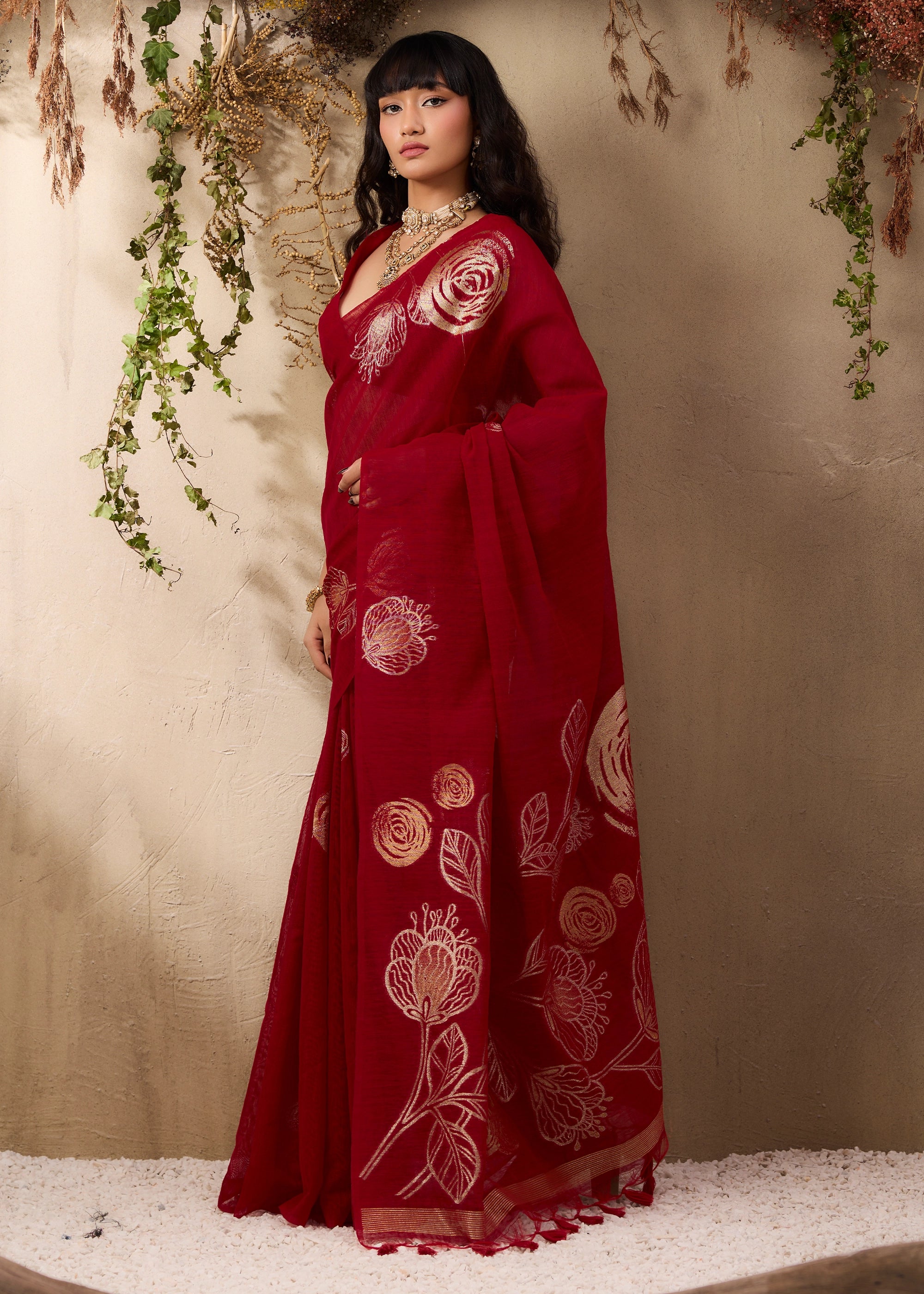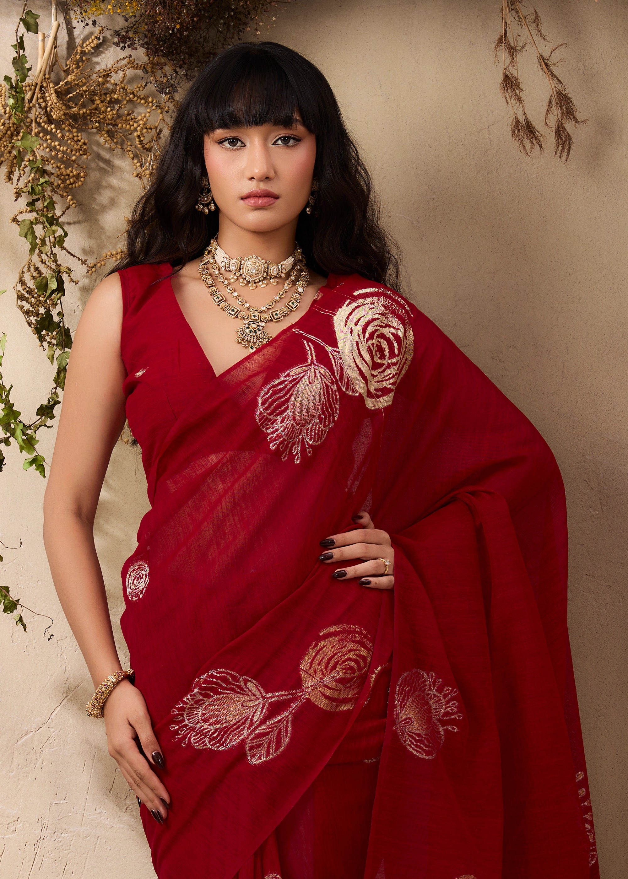 Elevate your ethnic wardrobe with this exquisite Muga Silk Saree, celebrated for its natural golden sheen, rich texture, and exceptional durability. The base beautifully complements the intricately woven floral motifs in subtle metallic tones, adding a touch of refined elegance to the drape.