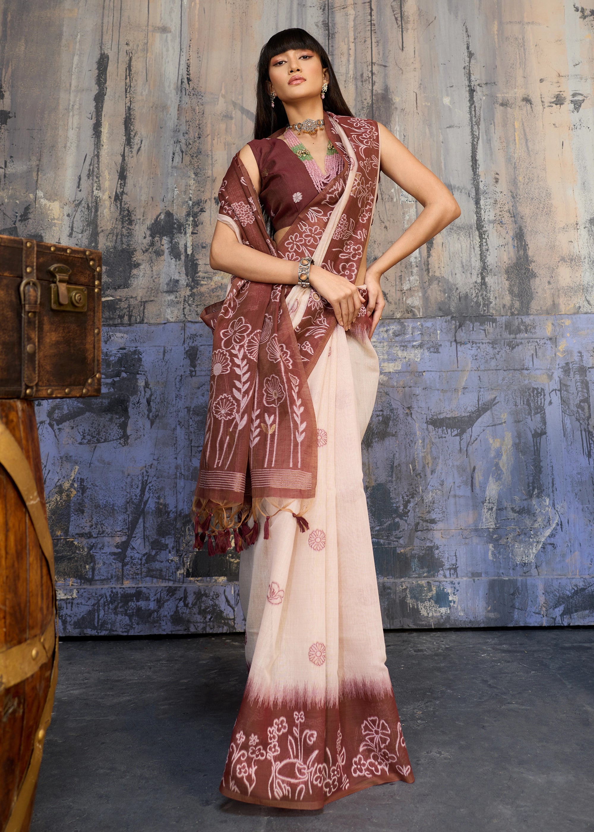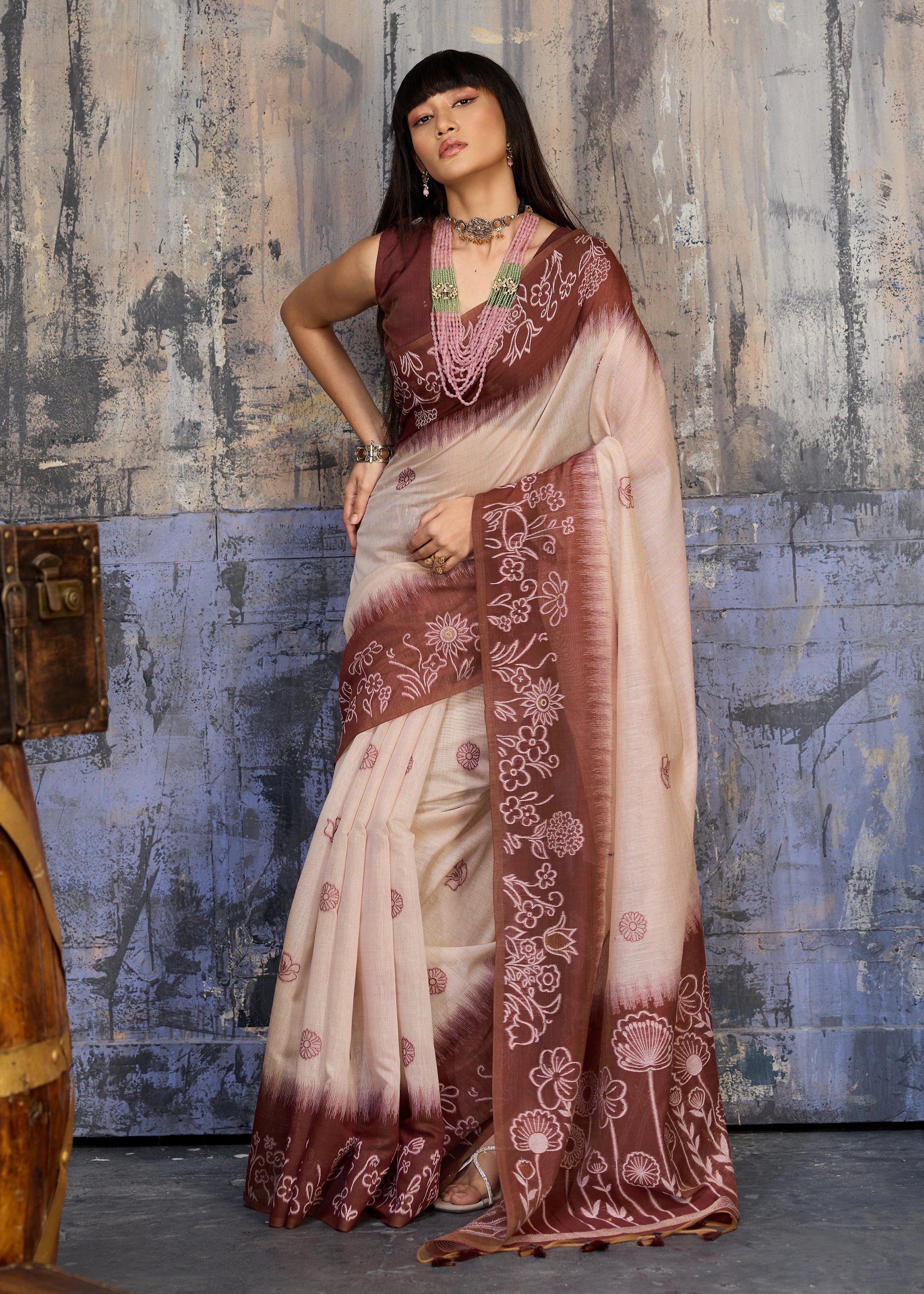 Coffee Brown Printed Cotton Silk Saree