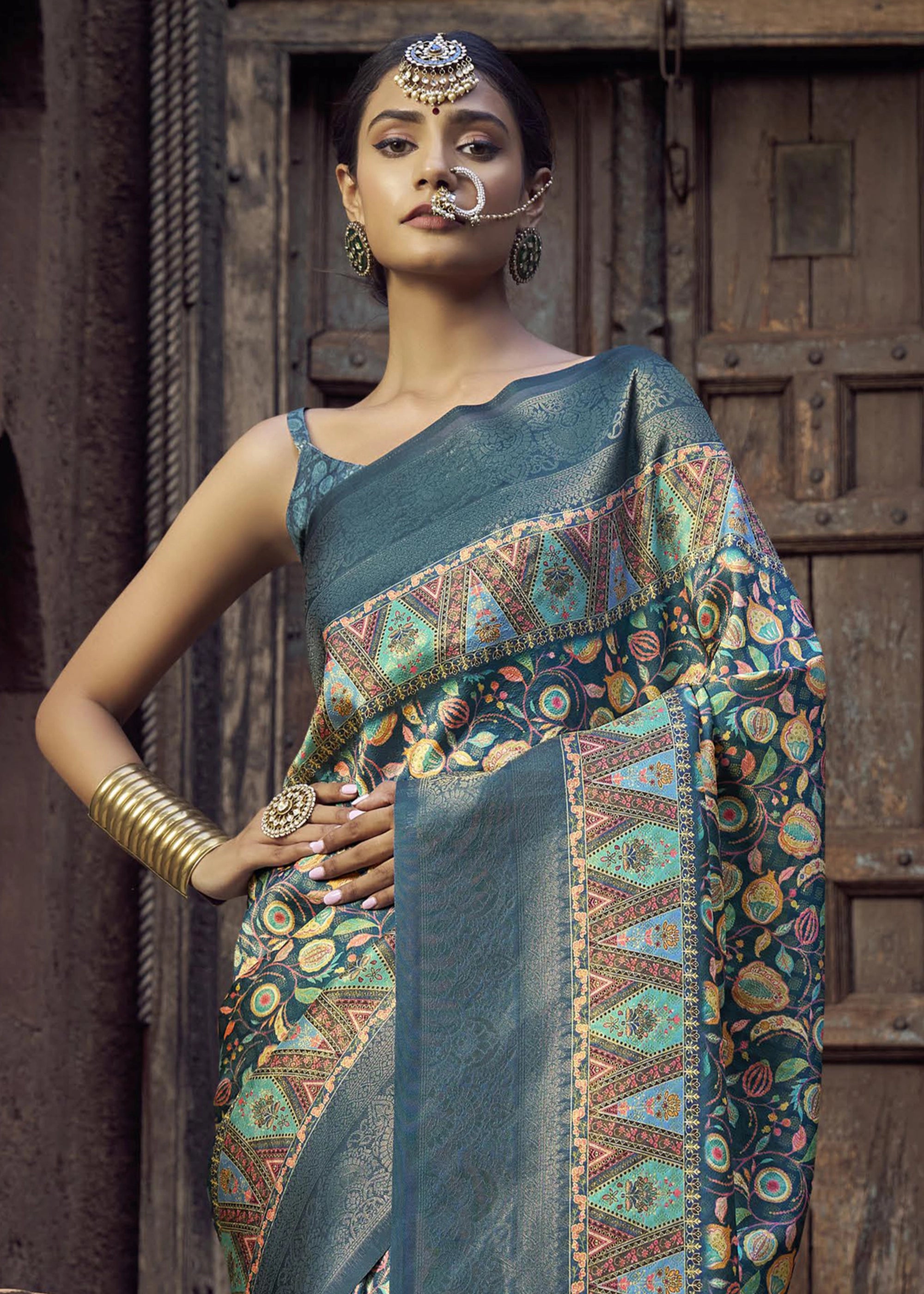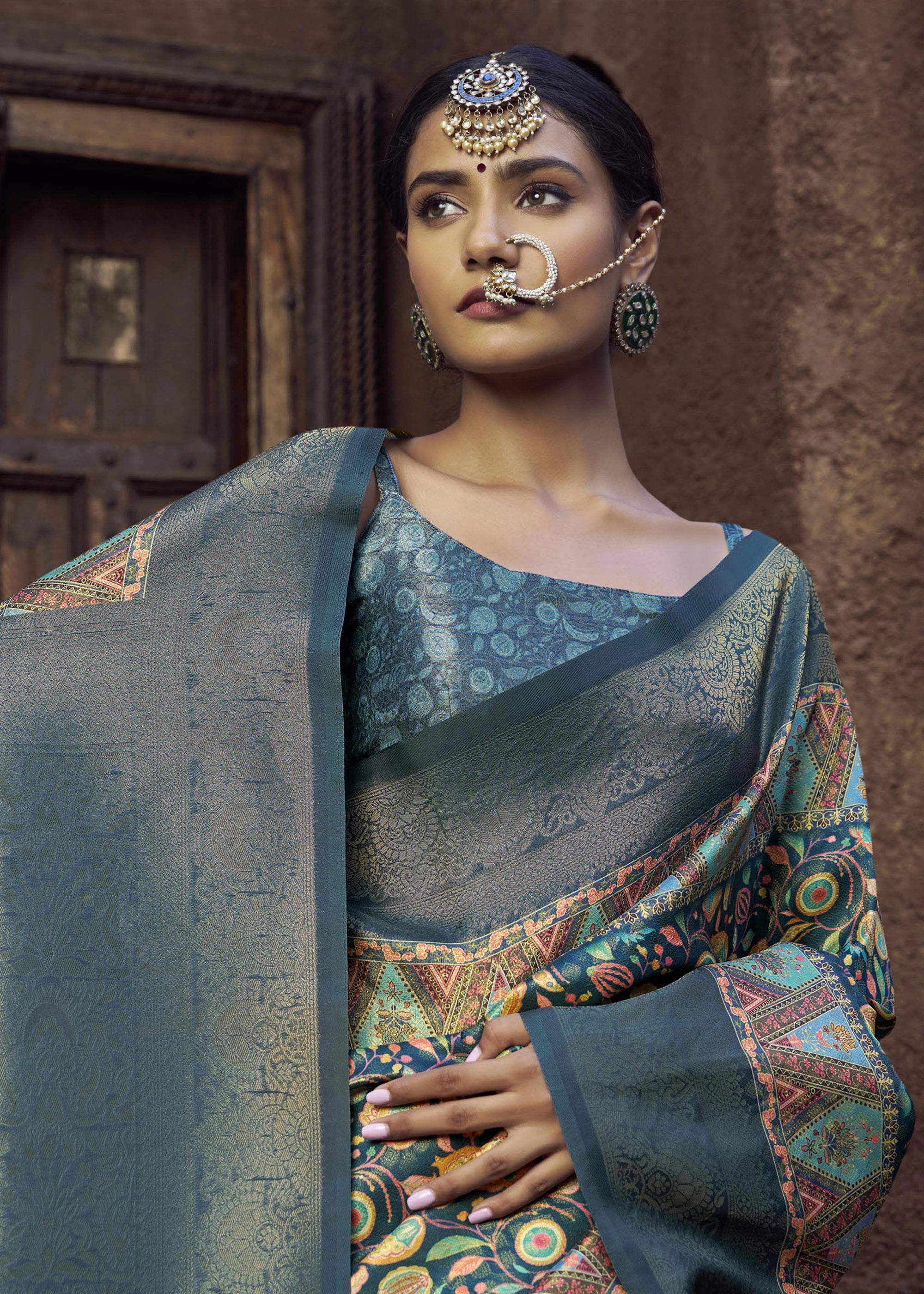 The intricate timeless design on this grand saree is perfect for a grand occasion. Banarasi sarees are always in with...