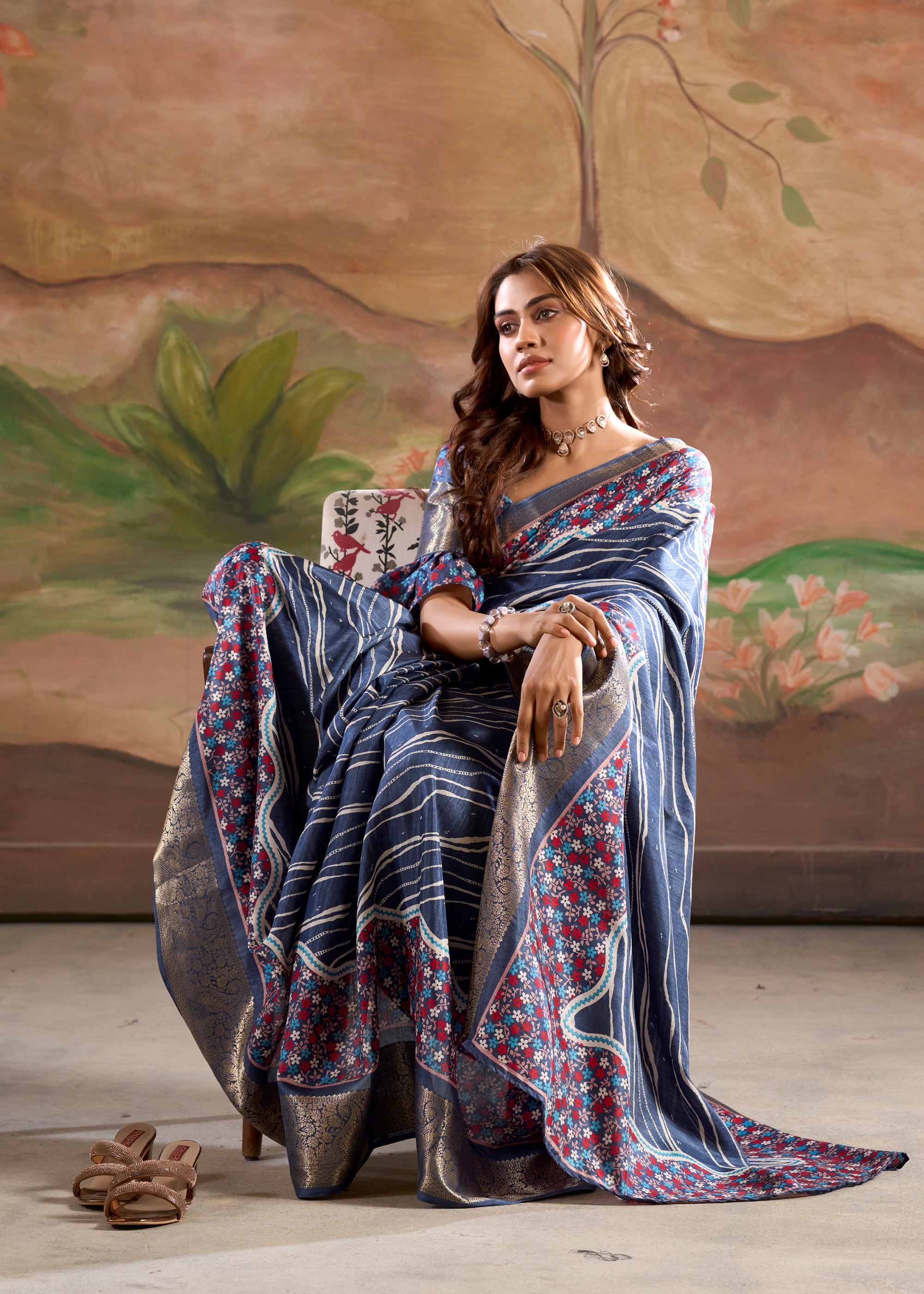 Embrace effortless style with this beautifully printed saree. The eye-catching print adds a touch of contemporary flair to a traditional silhouette. Crafted from soft silk , this saree drapes gracefully and ensures all-day comfort. Perfect for  casual outings, festive gatherings, everyday wear, this printed saree is a versatile addition to any wardrobe.