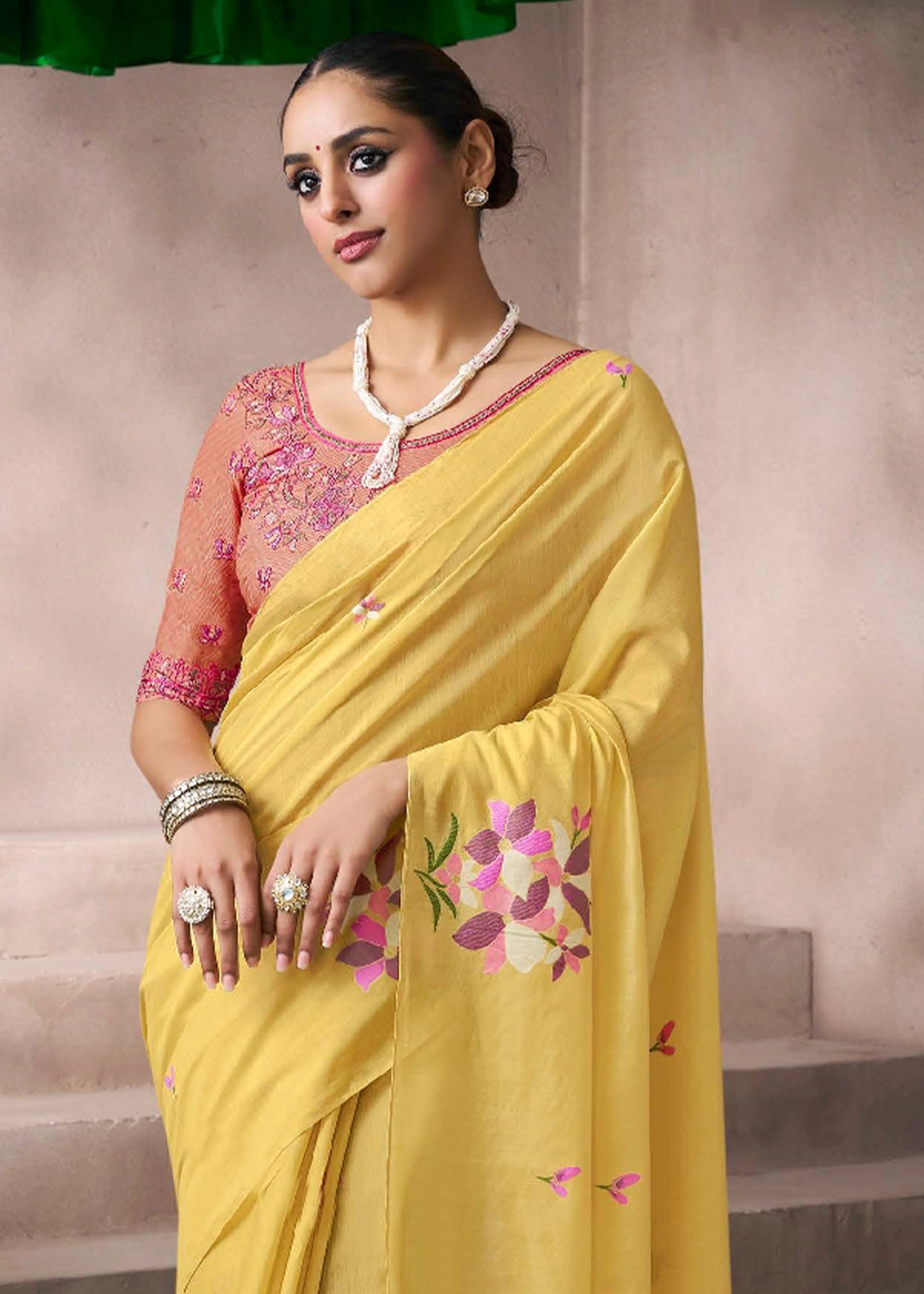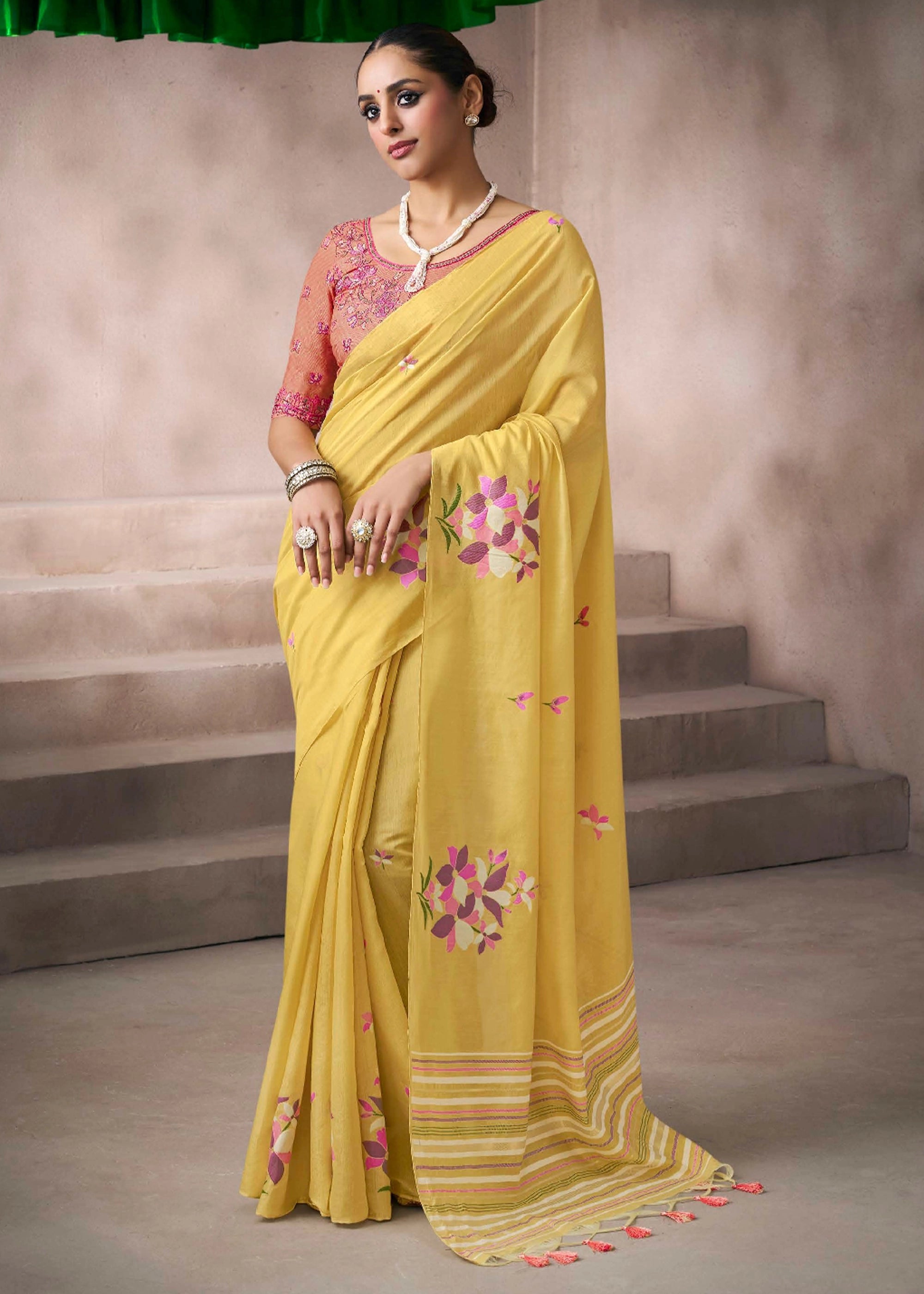 “Exclusive Offer” : Elegant Yellow Woven Cotton Silk Saree