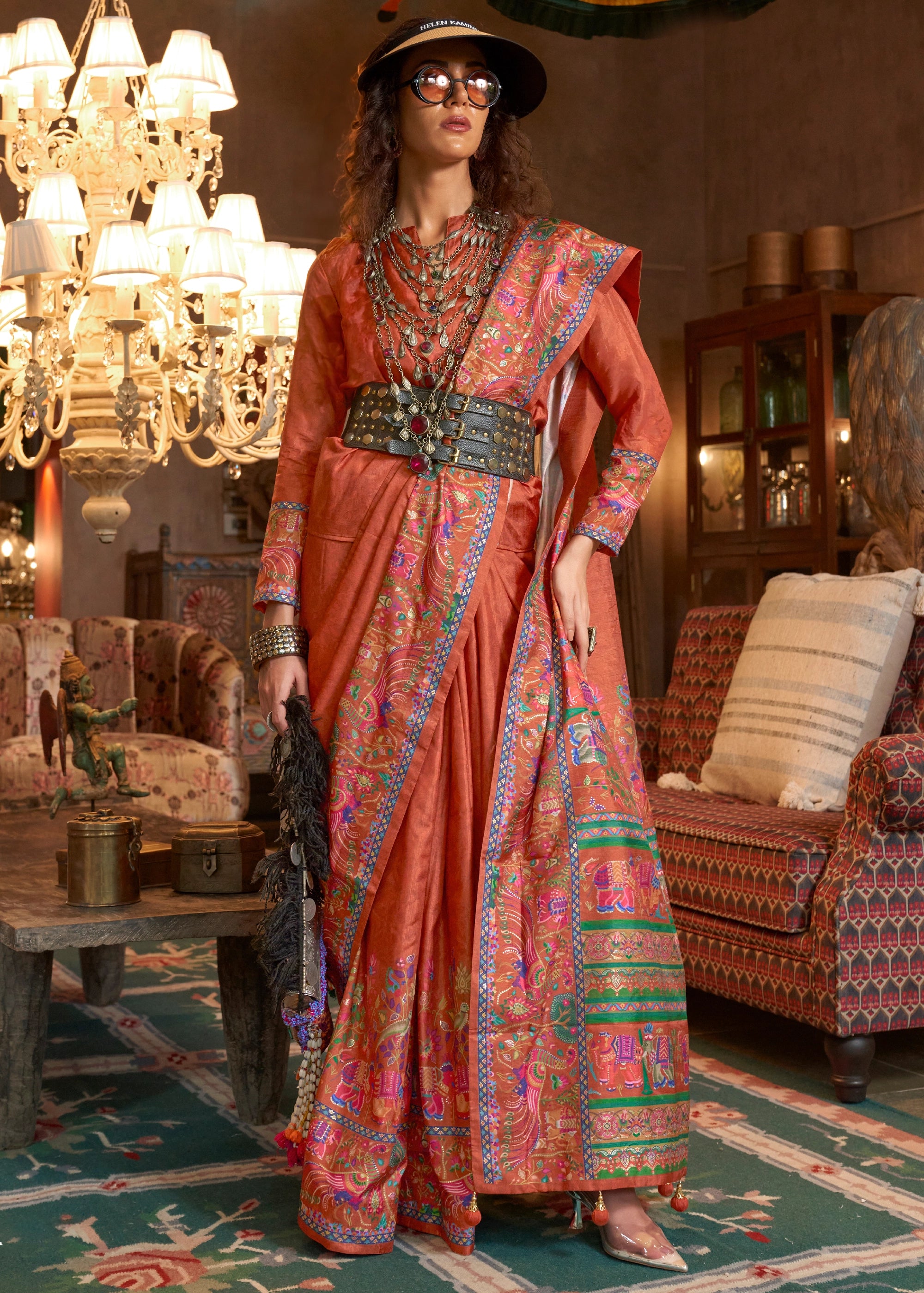 Embrace the essence of Indian artistry with this stunning Madhubani Printed Silk Saree, a masterpiece that blends traditional elegance with contemporary charm.Bring an exotic flair to your attire with this beautiful soft silk handloom saree drape, exclusively designed and curated with smooth flow, and embroidered on palla! Wear it like you want and glam your pujo or anytime occasion look.
