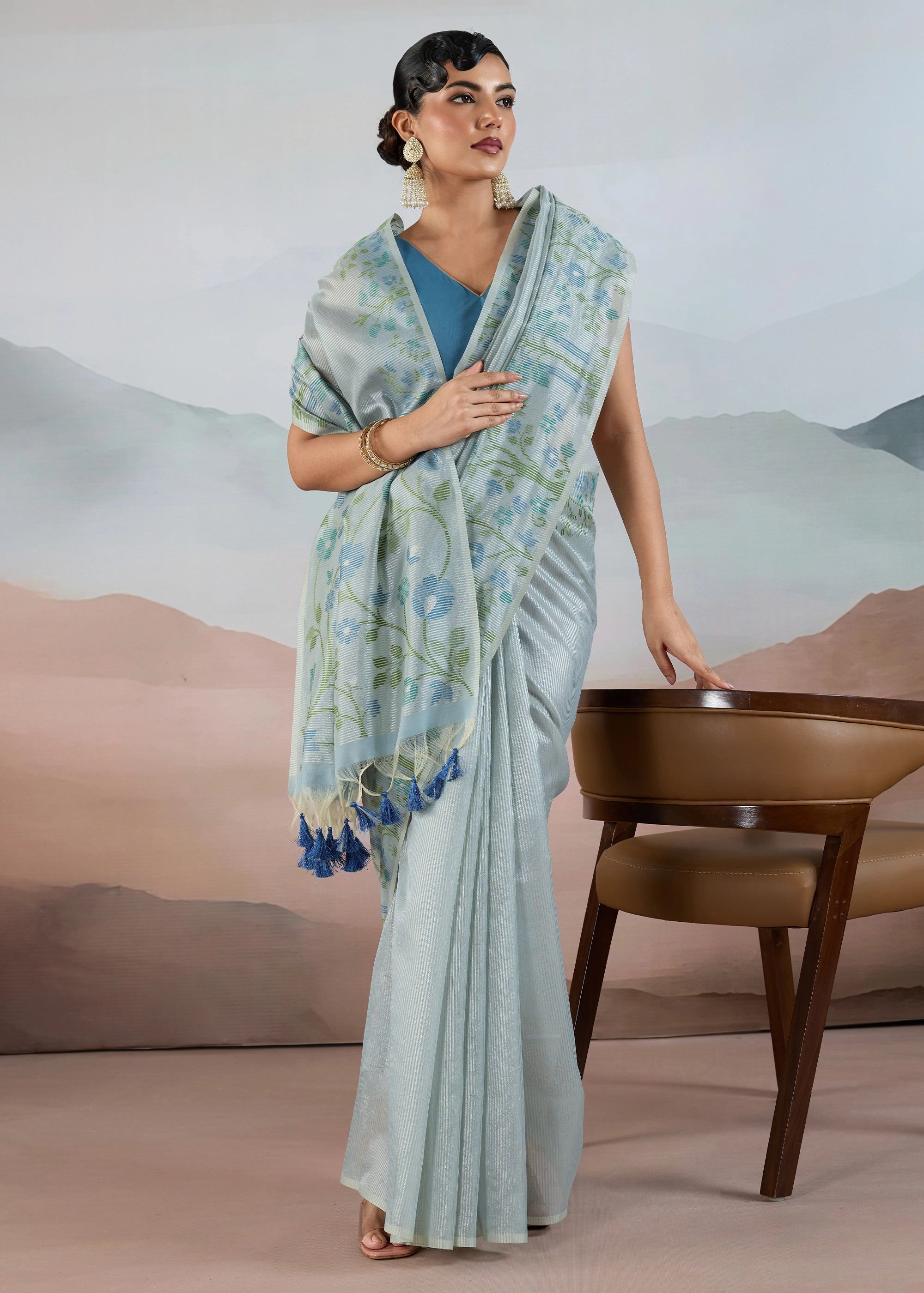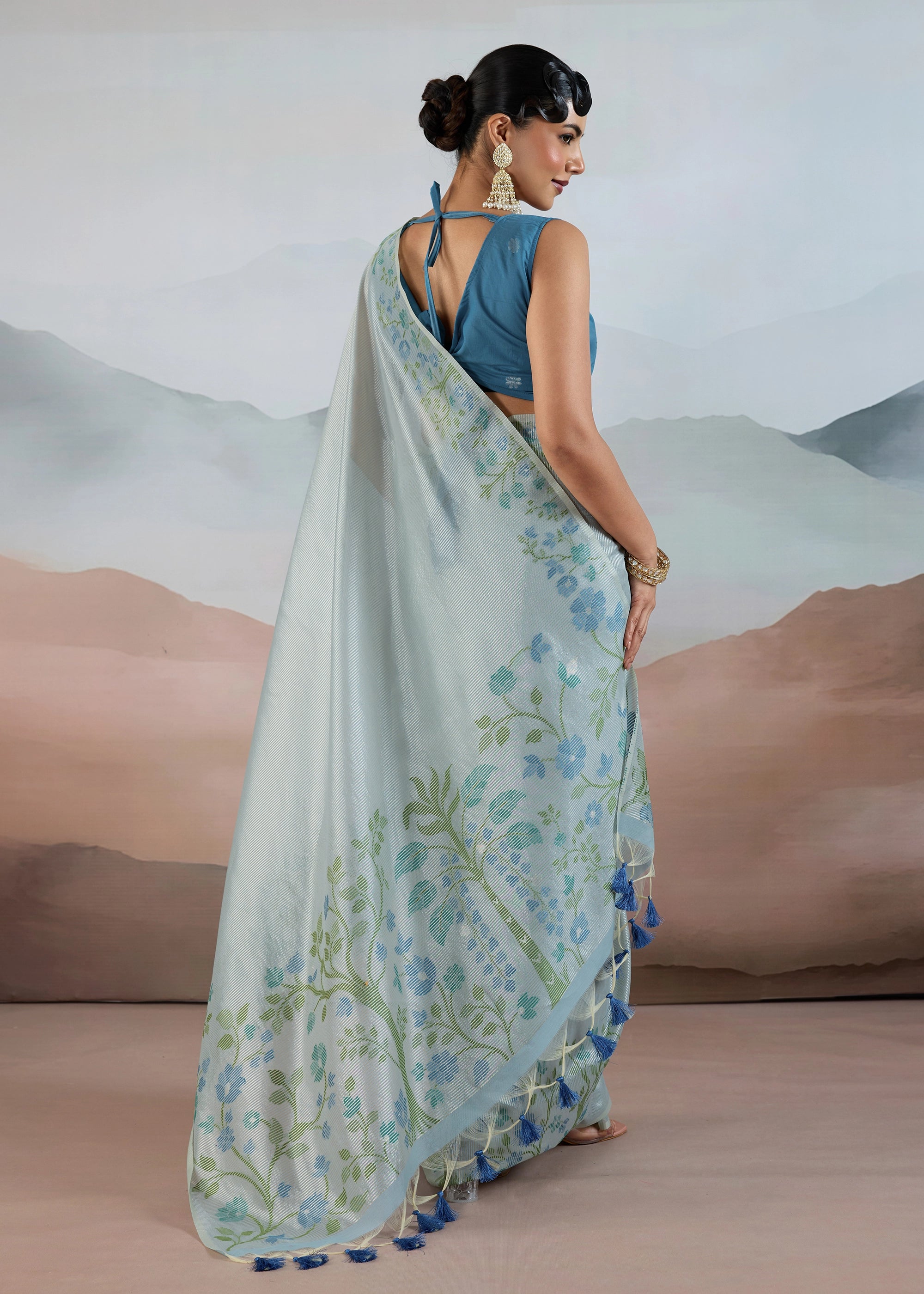 This elegant beige tissue silk saree, featuring intricate resham and sequin work, exudes subtle sophistication. Its versatile tone makes it perfect for weddings, festive occasions, and cultural gatherings, ensuring a graceful and stylish look.