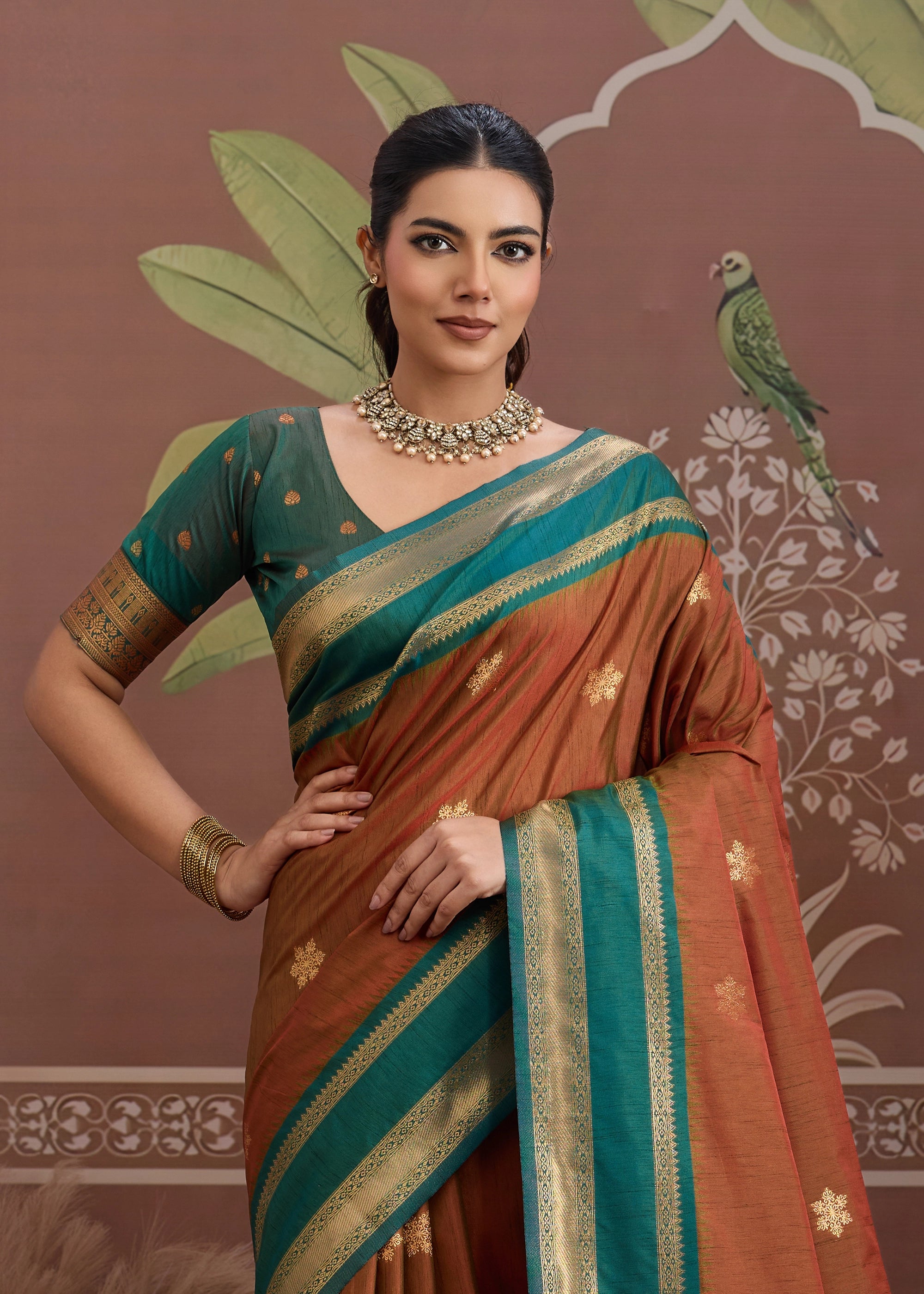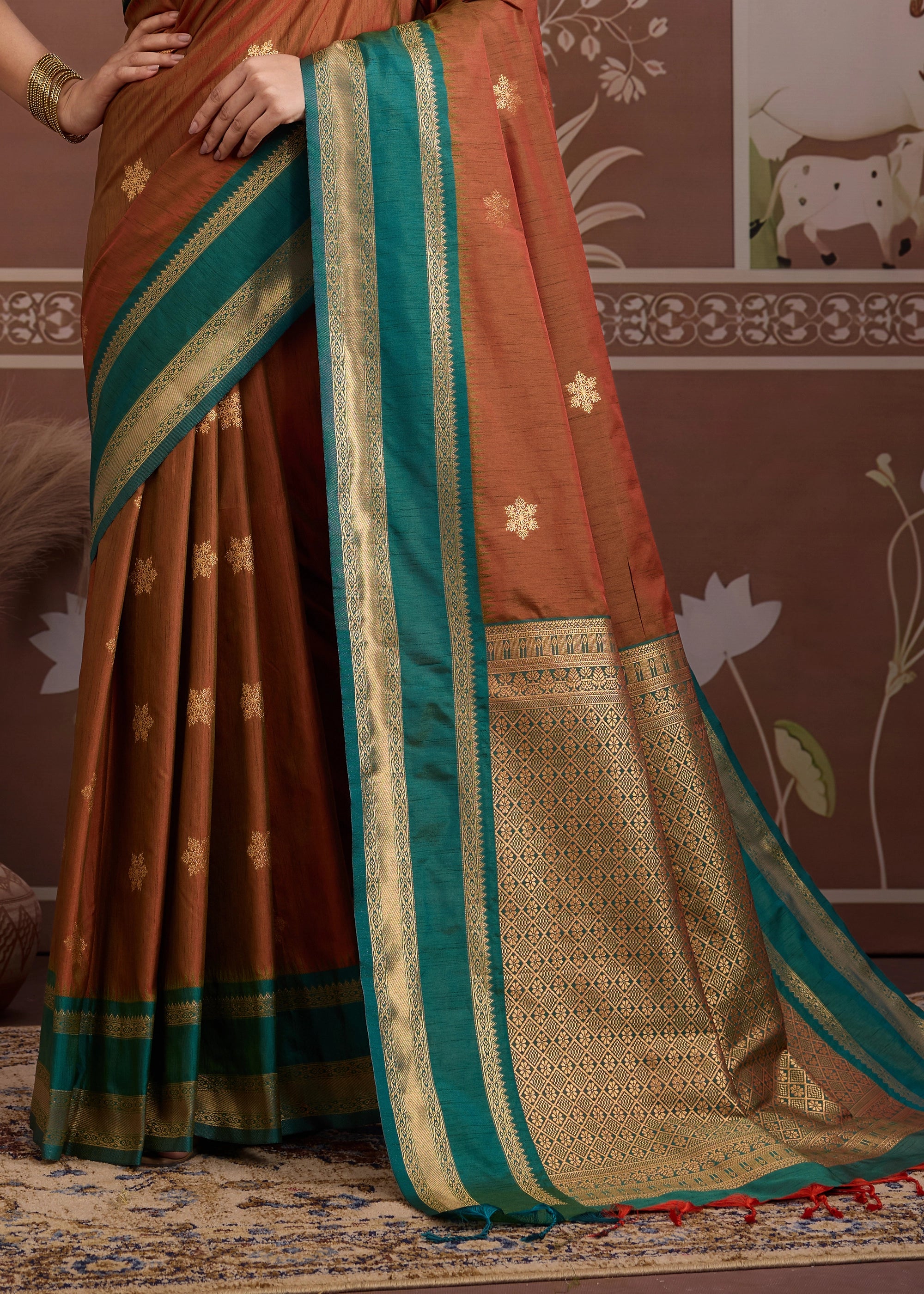 Hazel Brown Woven Banarasi Tussar Silk Saree