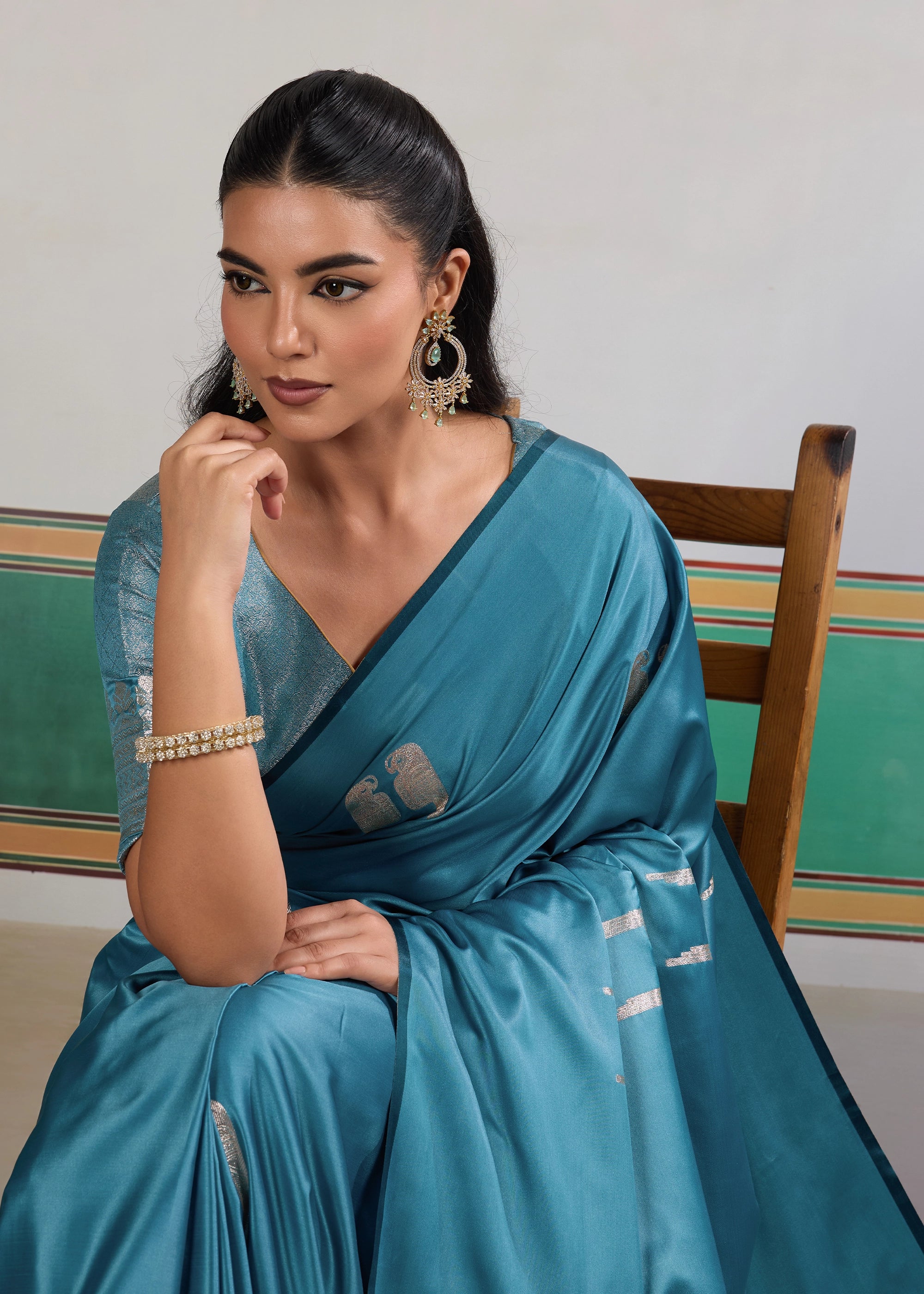 Radiate royal elegance with this luxurious Banarasi Satin Silk Saree, a perfect fusion of heritage and contemporary charm. Crafted from smooth, lustrous satin silk, it features intricate Banarasi zari weaving that reflects the timeless artistry of Varanasi’s master weavers.