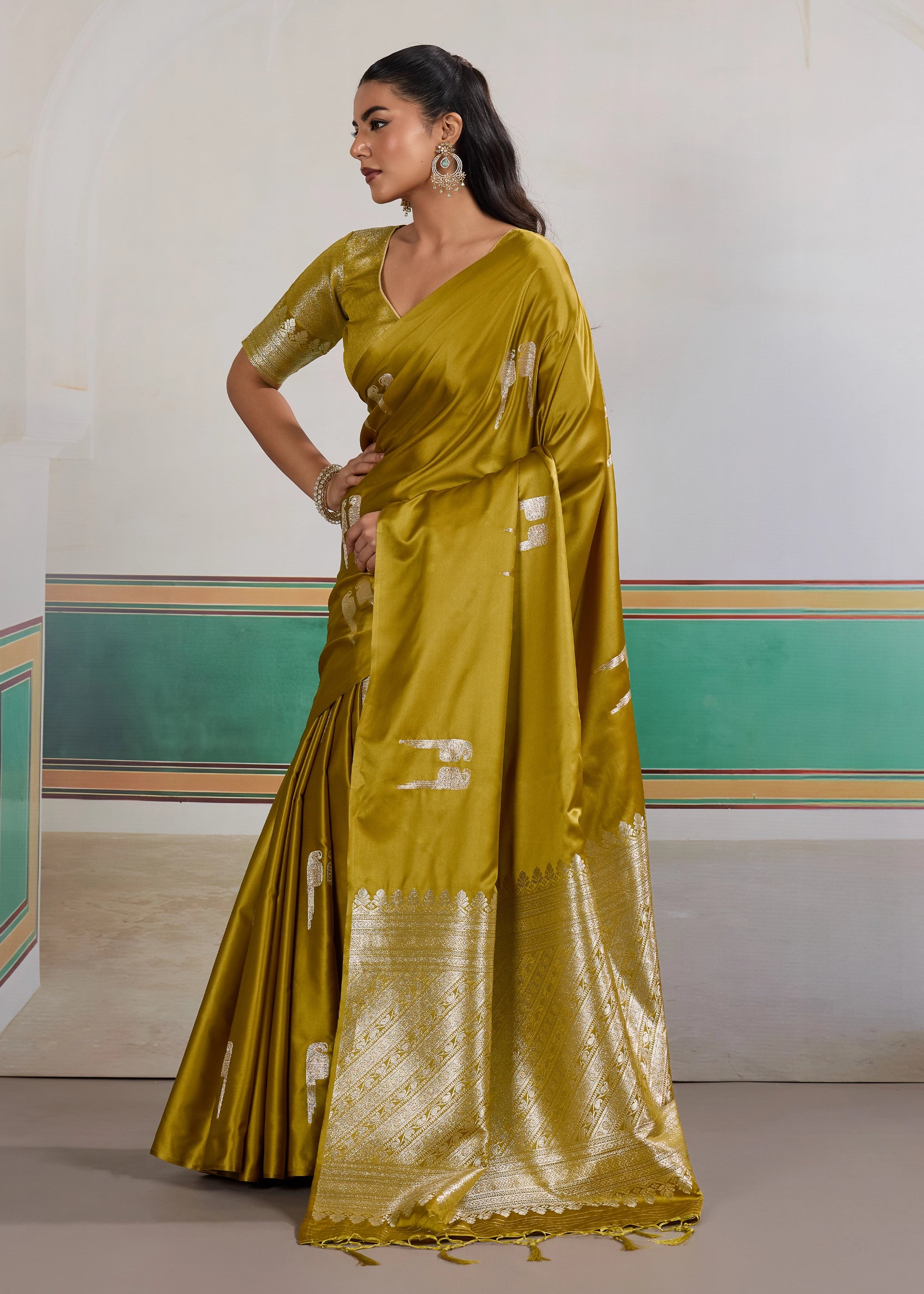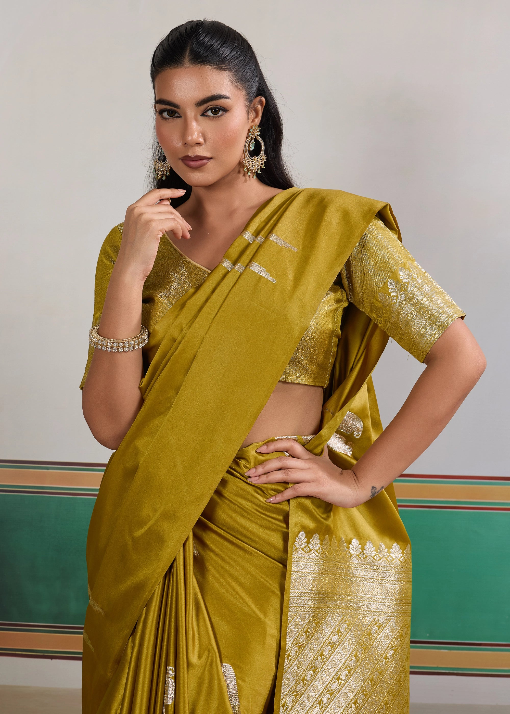 Radiate royal elegance with this luxuriousBanarasi Satin Silk Saree, a perfect fusion of heritage and contemporary charm. Crafted from smooth, lustrous satin silk, it features intricate Banarasi zari weaving that reflects the timeless artistry of Varanasi’s master weavers.