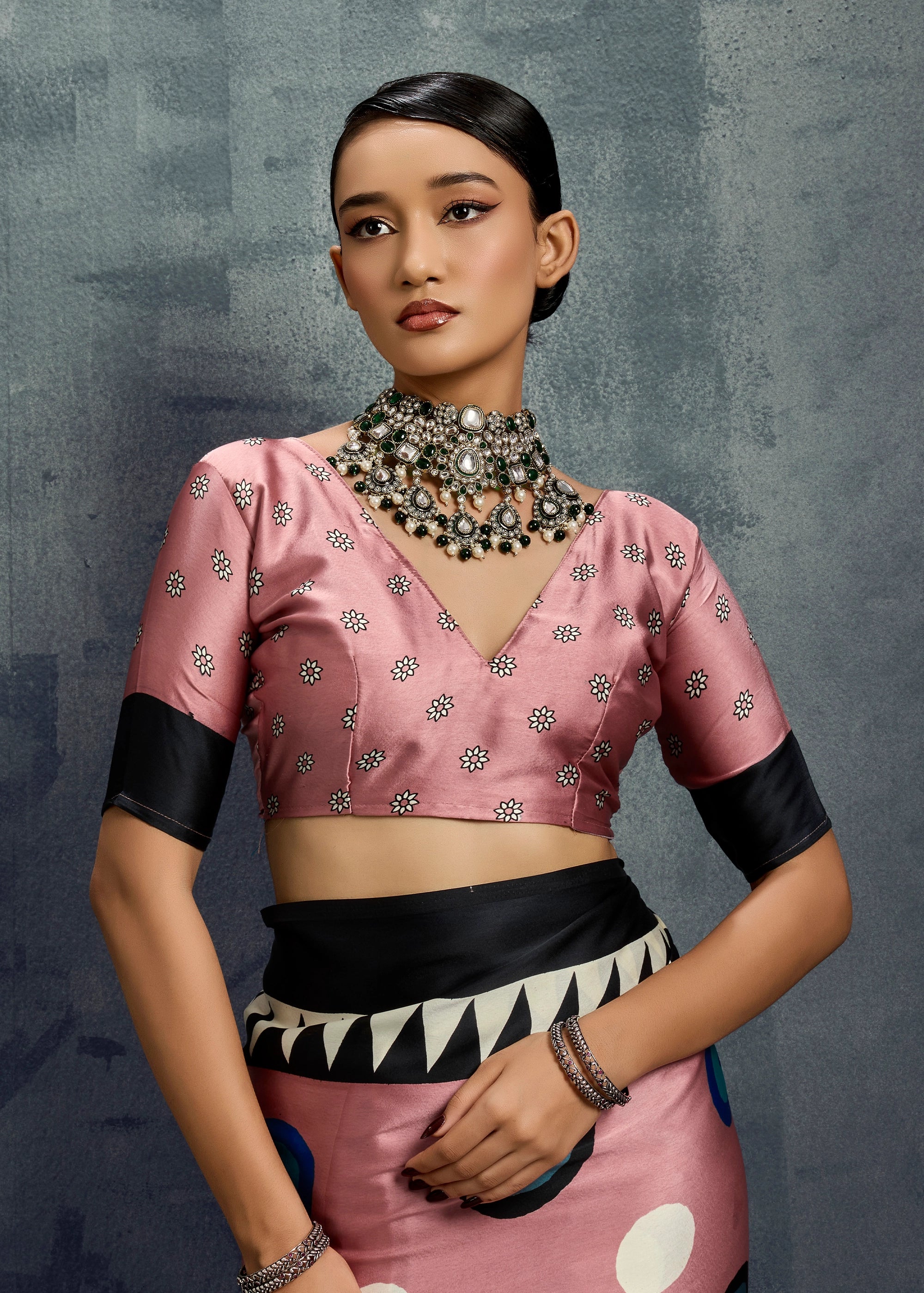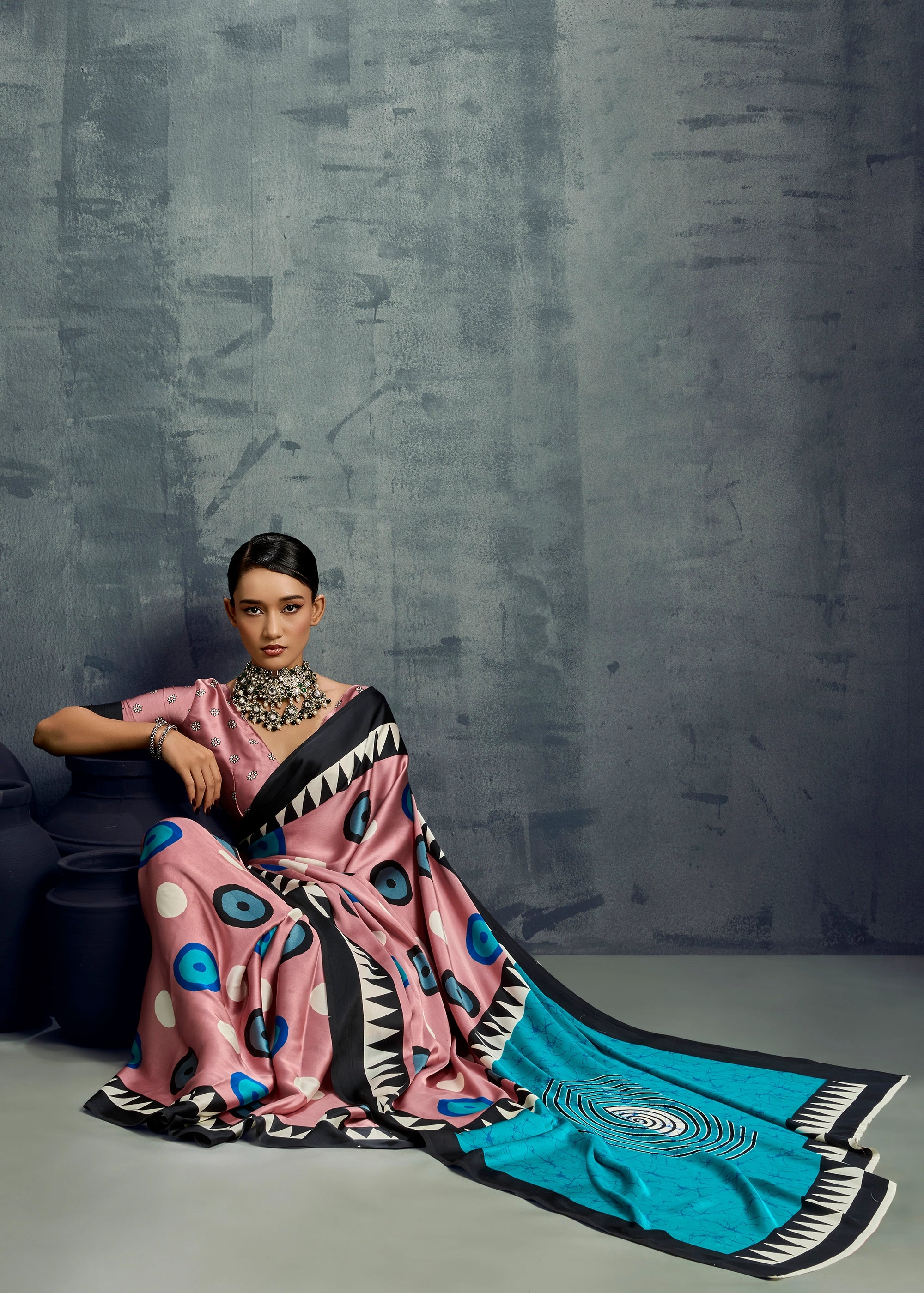 Make a lasting impression with our stunning Satin Silk Saree. Its sleek, opulent fabric provides a sophisticated base for the captivating Ajrakh printed pallu and blouse, infusing traditional charm into a modern design. Whether it's a festive gathering, a formal event, or a special evening out, this saree is designed to make you feel effortlessly elegant and uniquely beautiful.