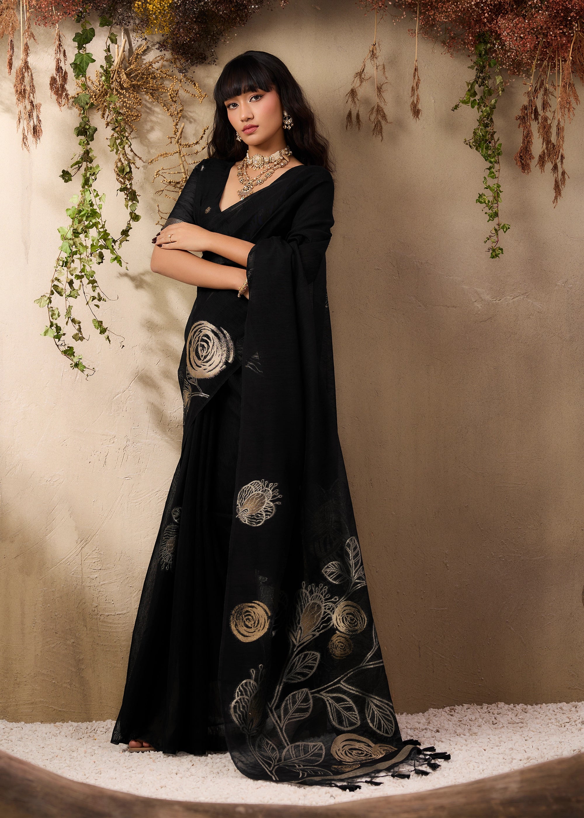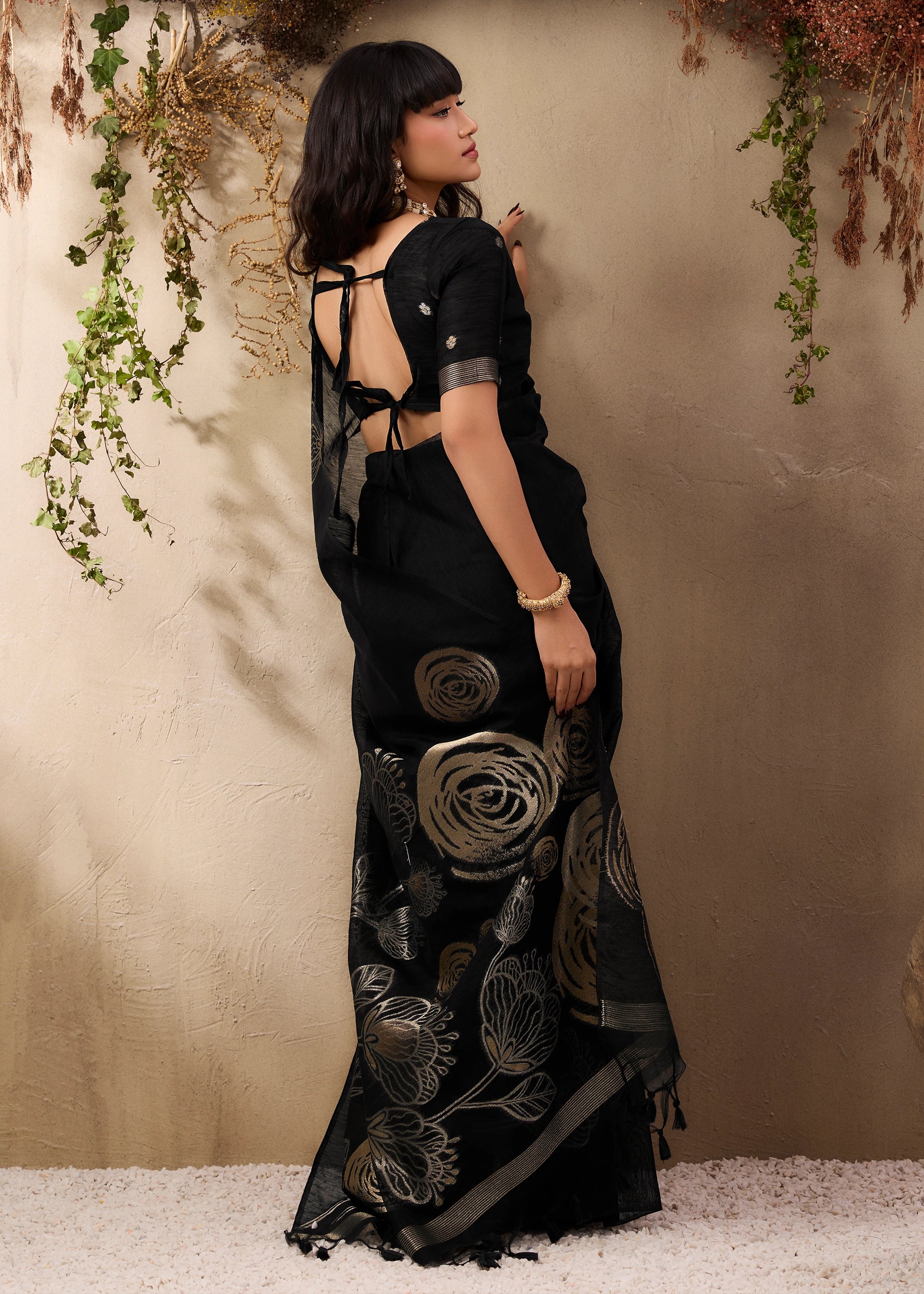 Elevate your ethnic wardrobe with this exquisite Muga Silk Saree, celebrated for its natural golden sheen, rich texture, and exceptional durability. The base beautifully complements the intricately woven floral motifs in subtle metallic tones, adding a touch of refined elegance to the drape.