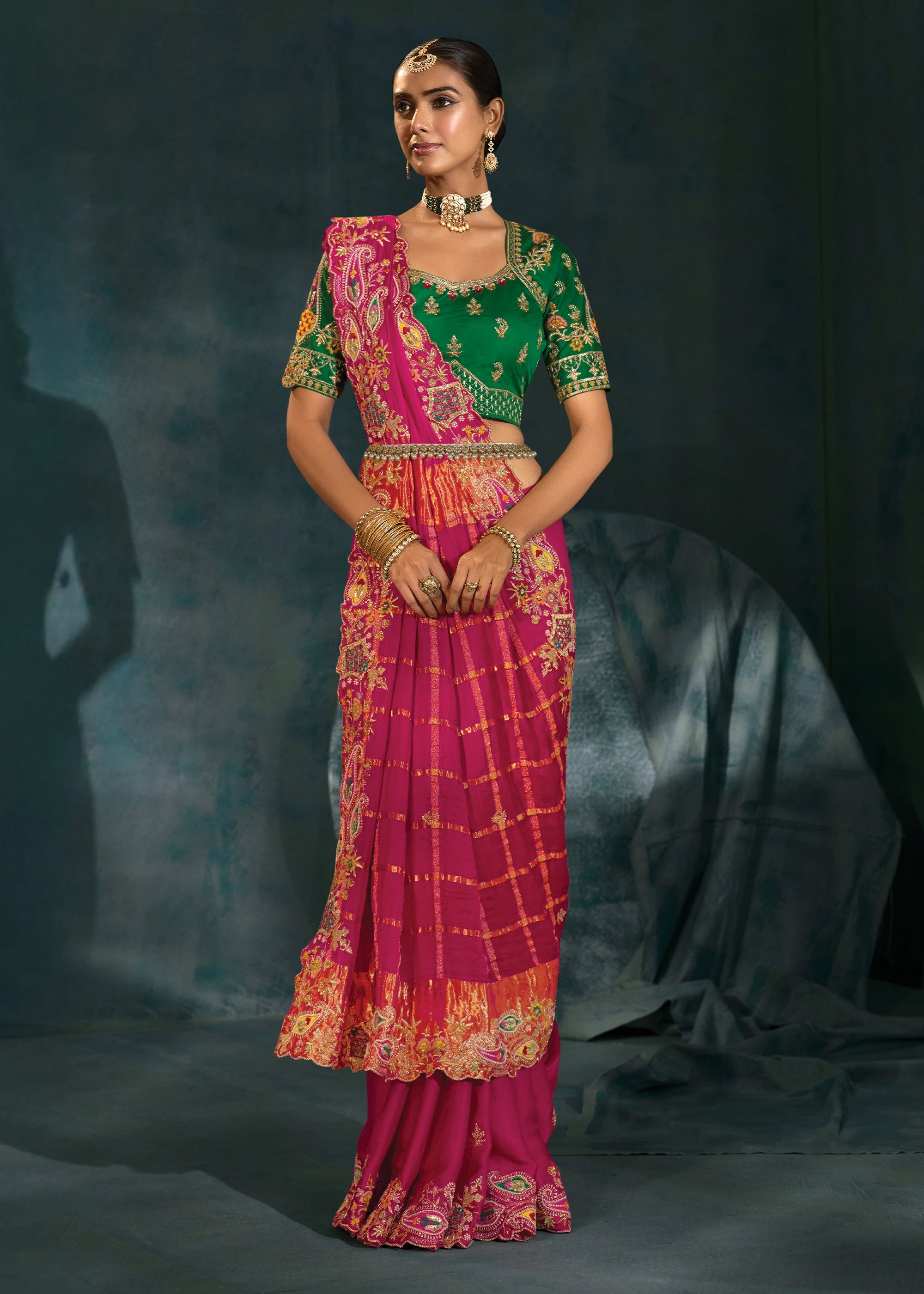 Raspberry Pink Embroidered Designer Tissue Saree
