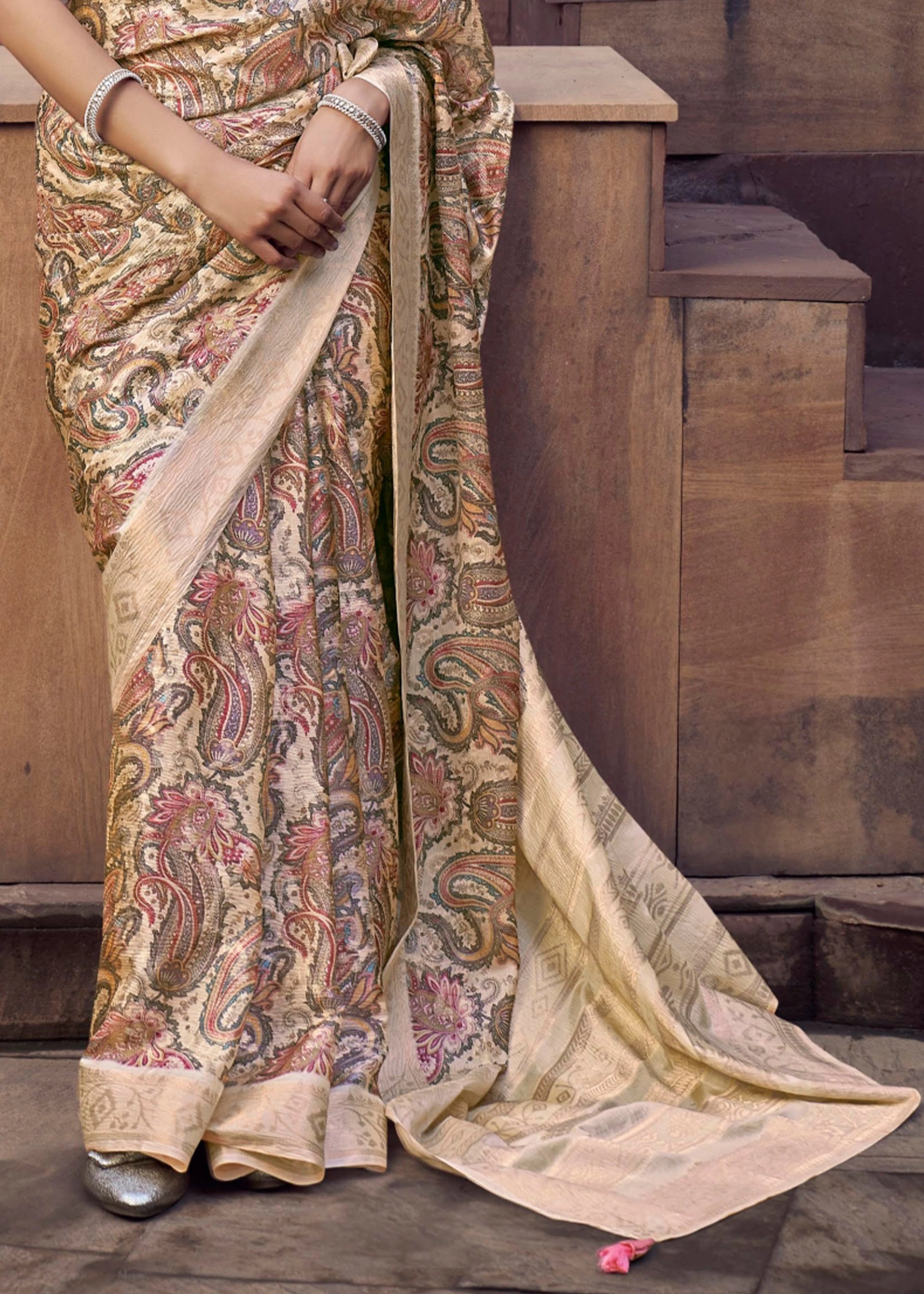 Sand Beige Digital Printed Silk Saree