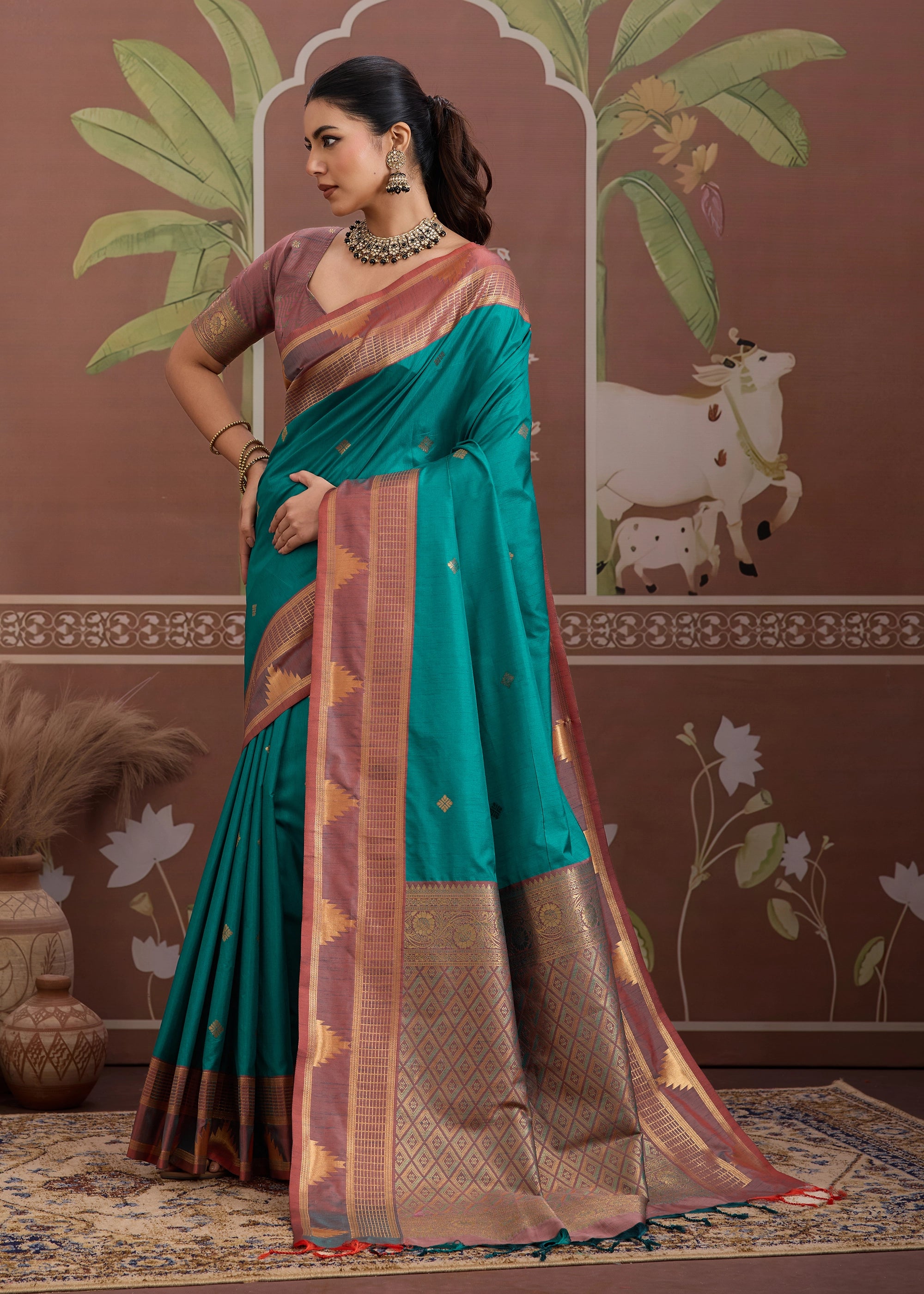 Pure delight that combine royalty and clam stability into your wardrobe. the rich zari weaving enhances the aura whereas the bright colors exude the richness of tradition. this beautiful 6-yard gives a aura a more enchanting appeal for any special occasions.