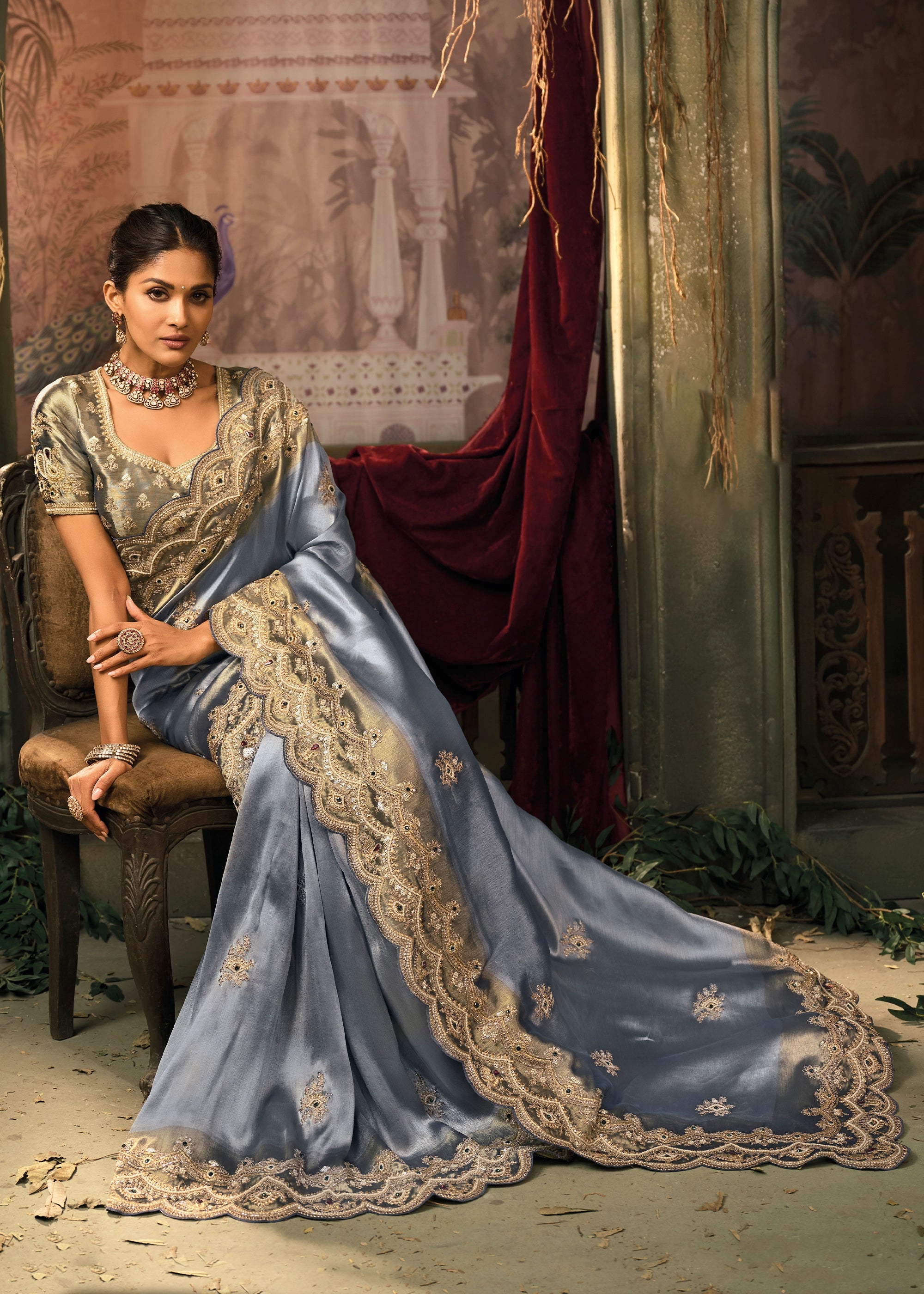 This saree exudes soft luxury and refined elegance. The highlight of the saree is its delicately embroidered blouse, adorned with intricate floral motifs, fine threadwork, and subtle embellishments that add depth and sophistication without overpowering the look.
