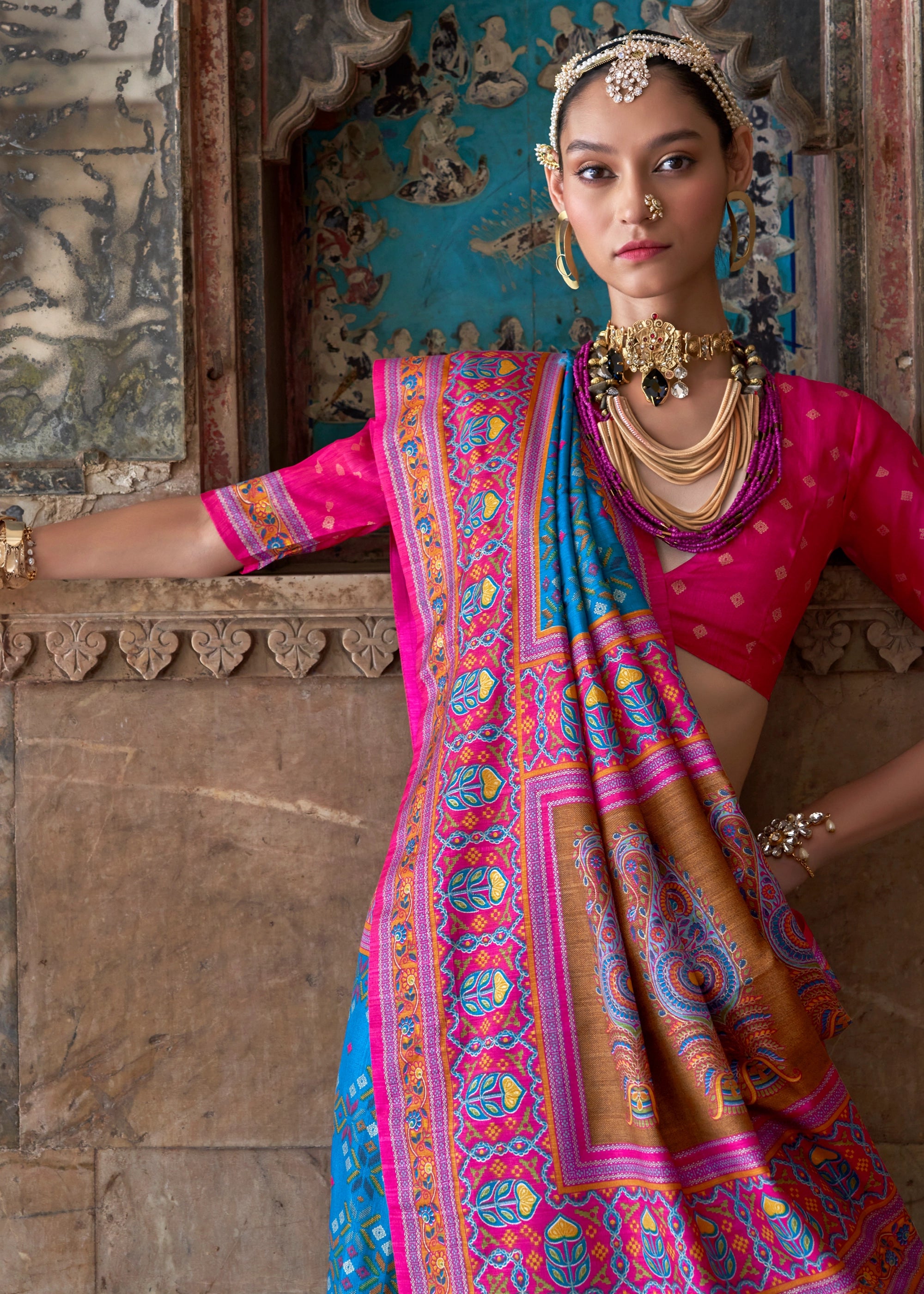 A Printed Patola Silk Saree beautifully blends the grandeur of silk with the intricate artistry of Patola-inspired motifs. Crafted with luxurious silk fabric, it showcases vibrant geometric and ethnic patterns that echo the timeless heritage of Gujarat’s weaving tradition. The digital or screen-printed designs offer a modern twist while retaining the elegance of traditional Patola style. Lightweight, lustrous, and easy to drape, it is perfect for festive occasions, weddings, and cultural celebrations.