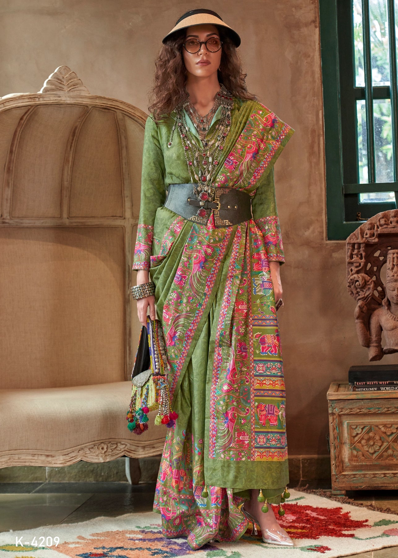 Adigital printed sareeis a modern take on the traditional Indian drape, created using advanced digital textile printing technology....