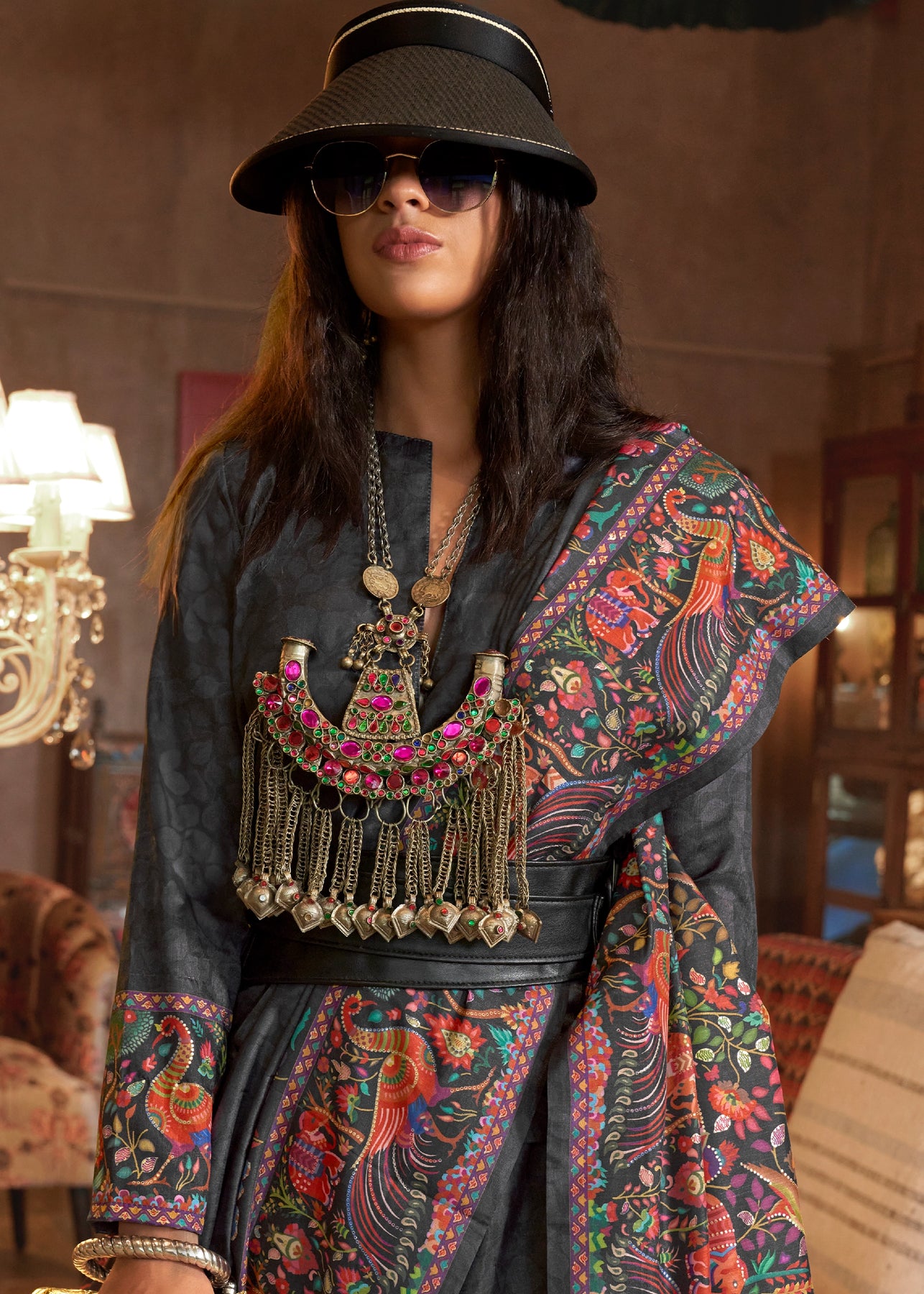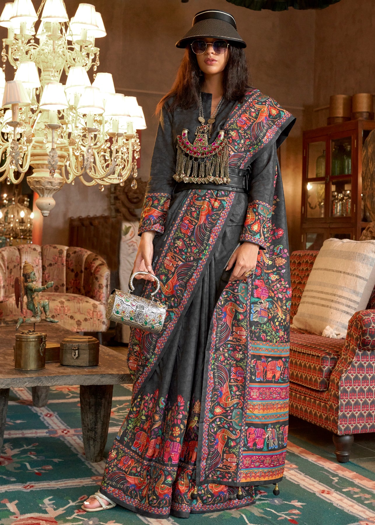 Jet Black Madhubani Printed Saree