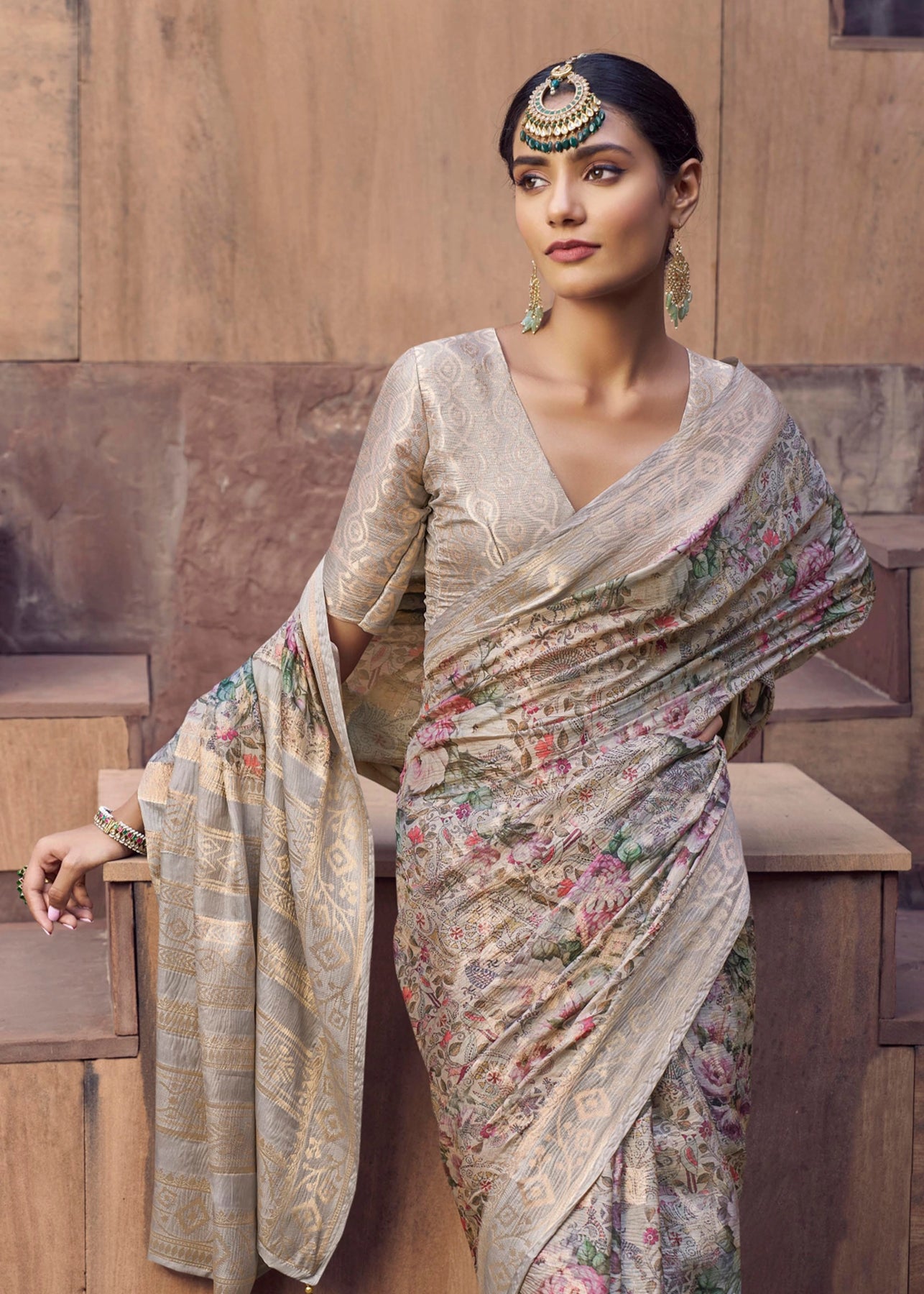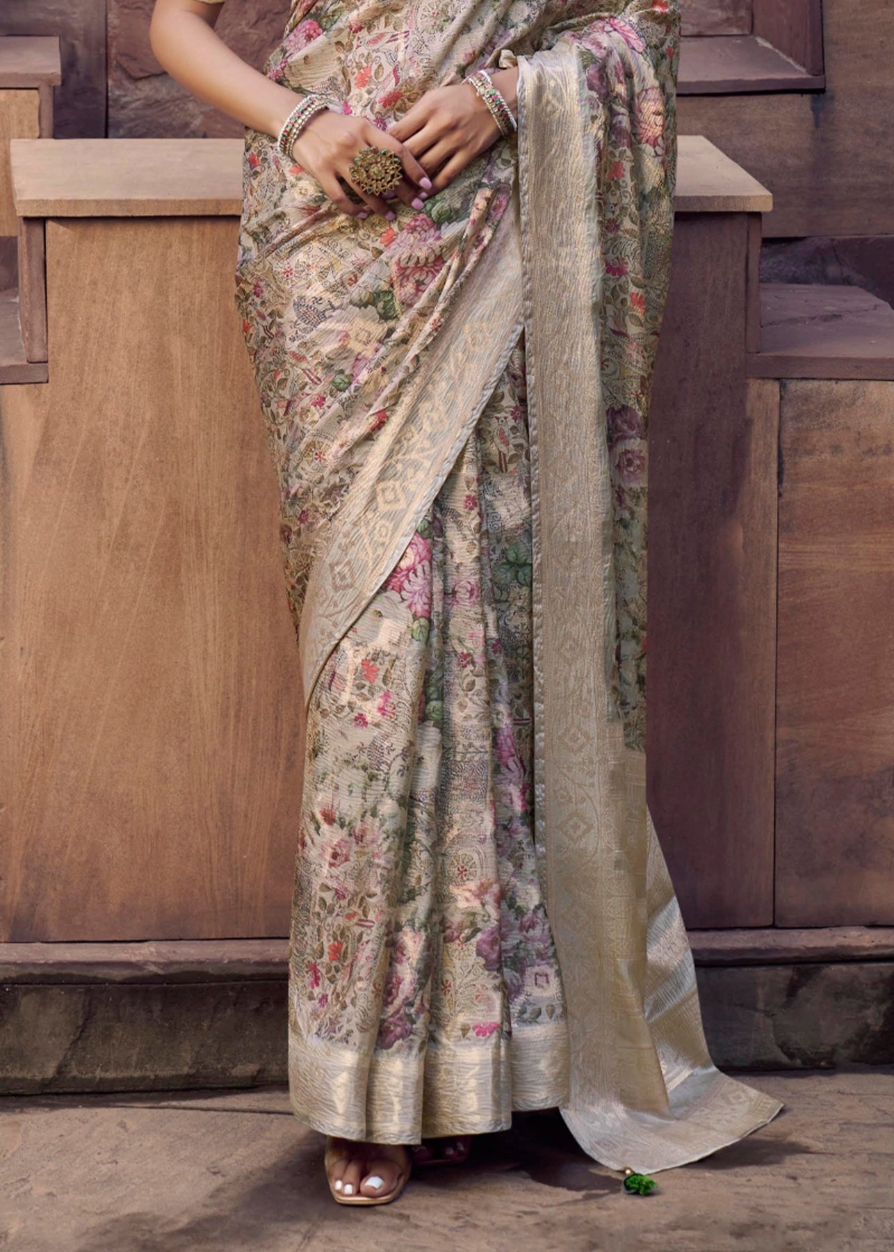 Sand Beige Digital Printed Silk Saree
