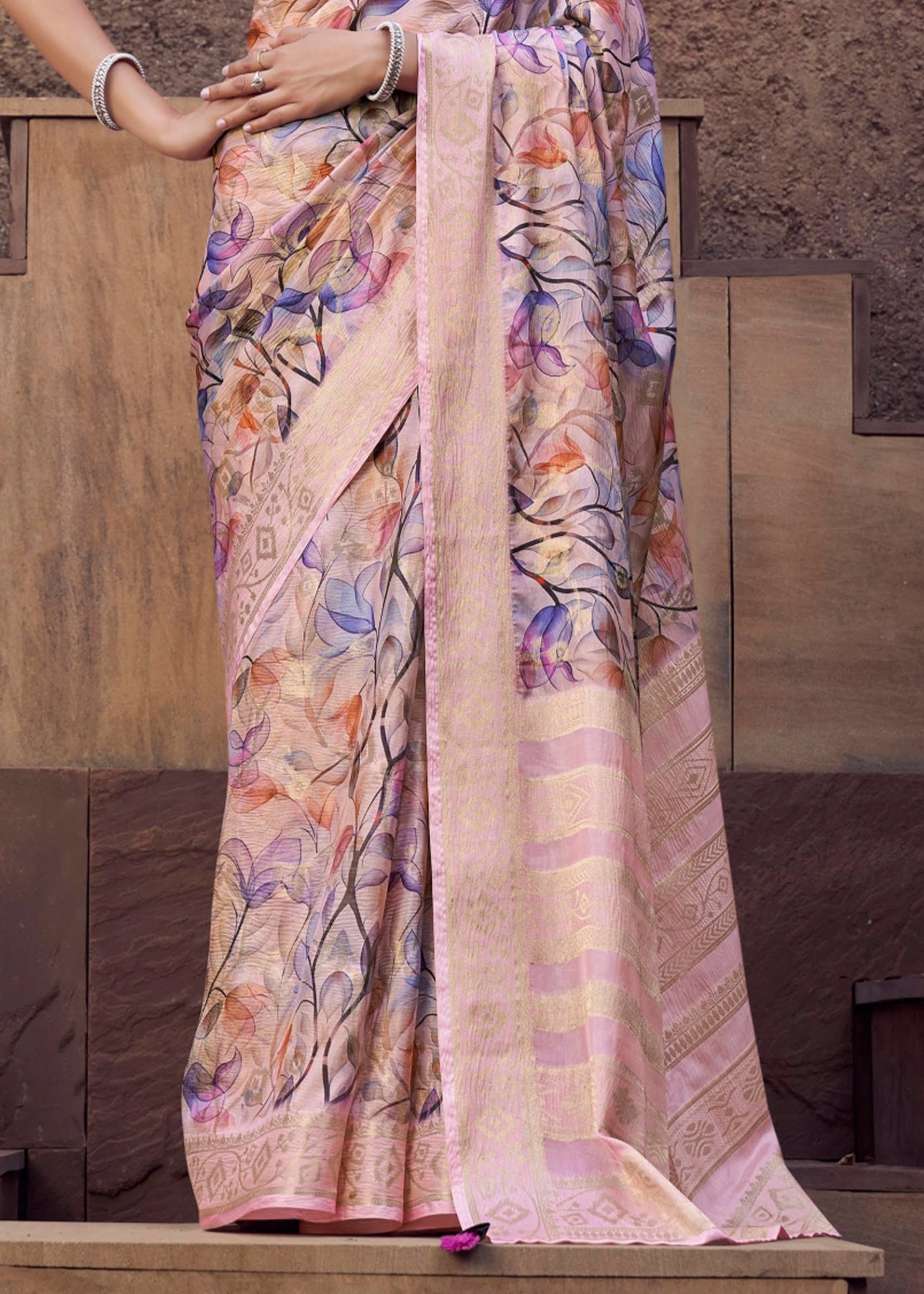 Apricot Pink Digital Printed Silk Saree