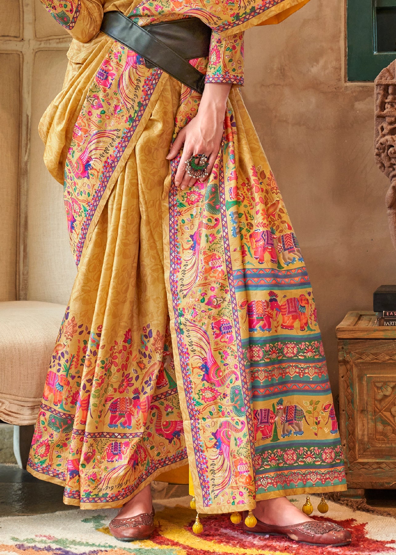 Sunshine Yellow Madhubani Printed Saree