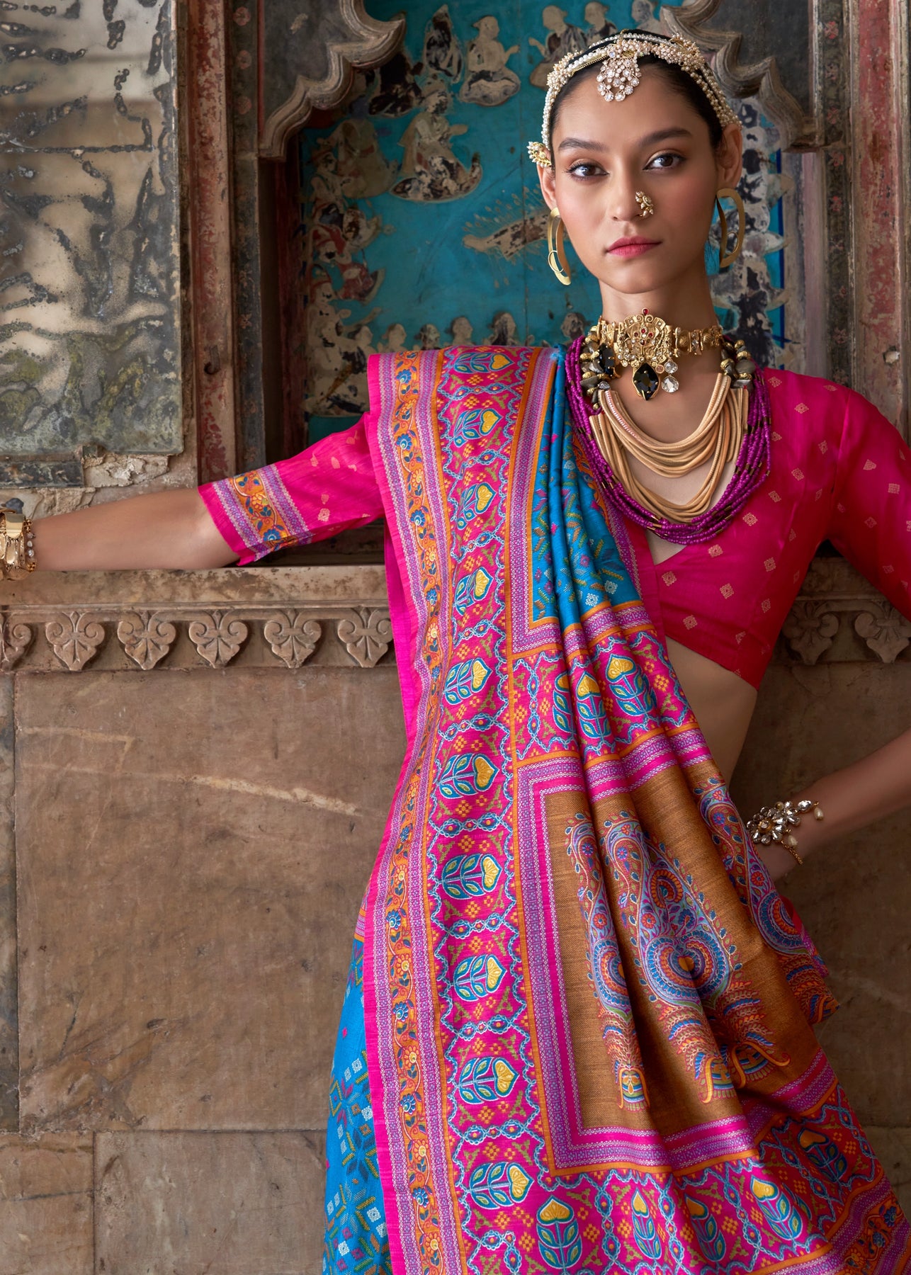 Princess Pink Patola Printed Silk Saree