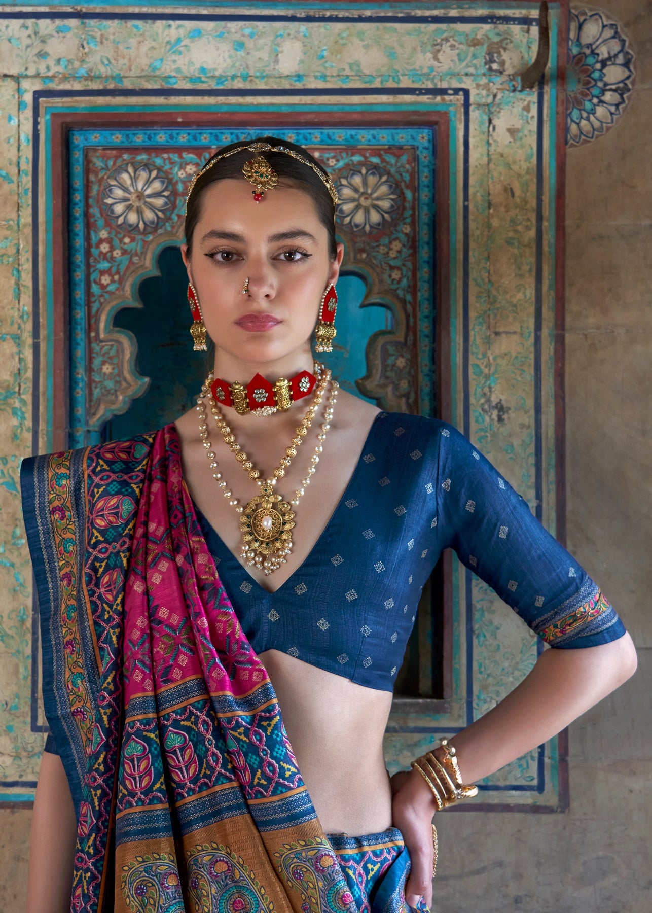 Coral Blue Printed Patola Silk Saree