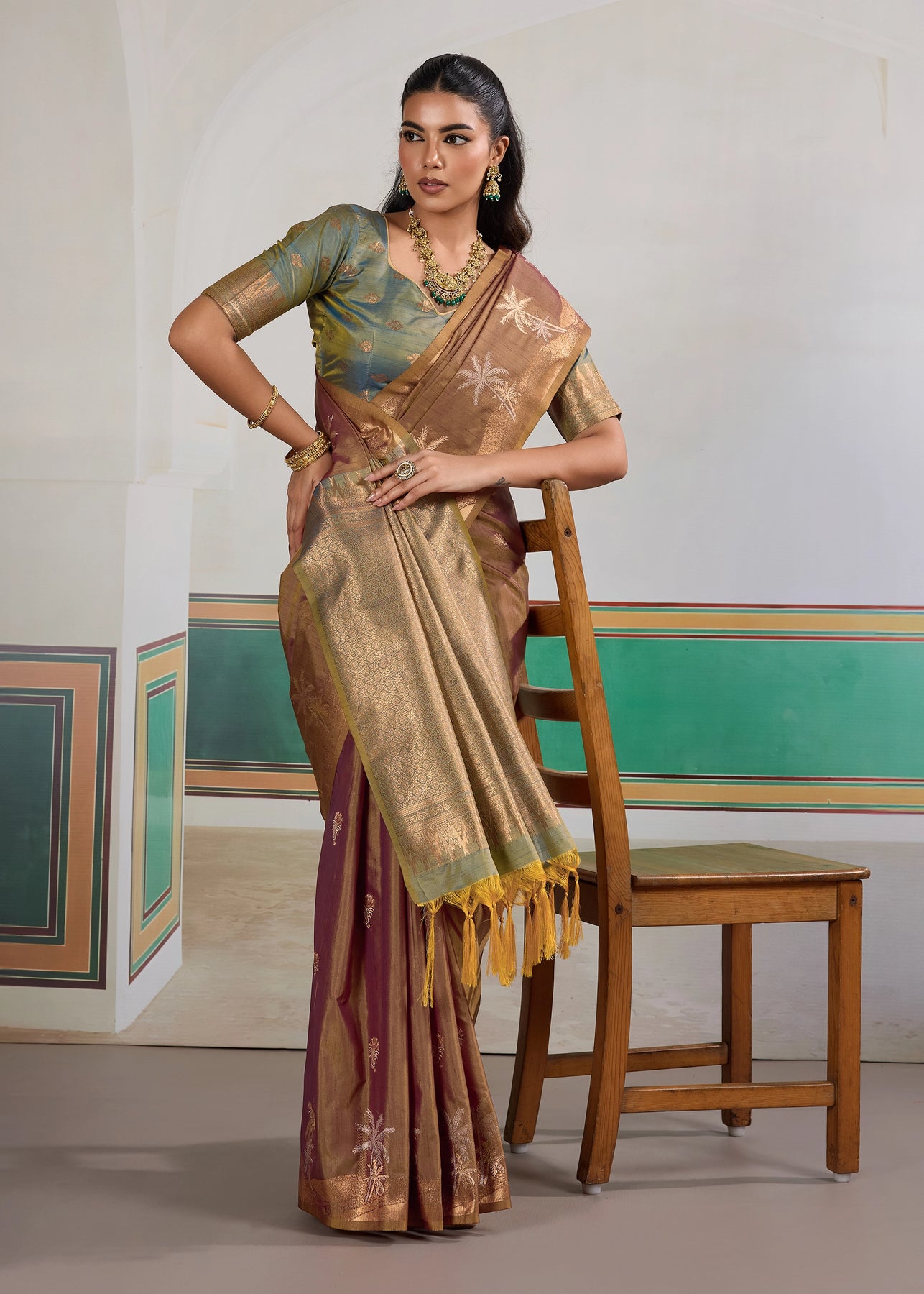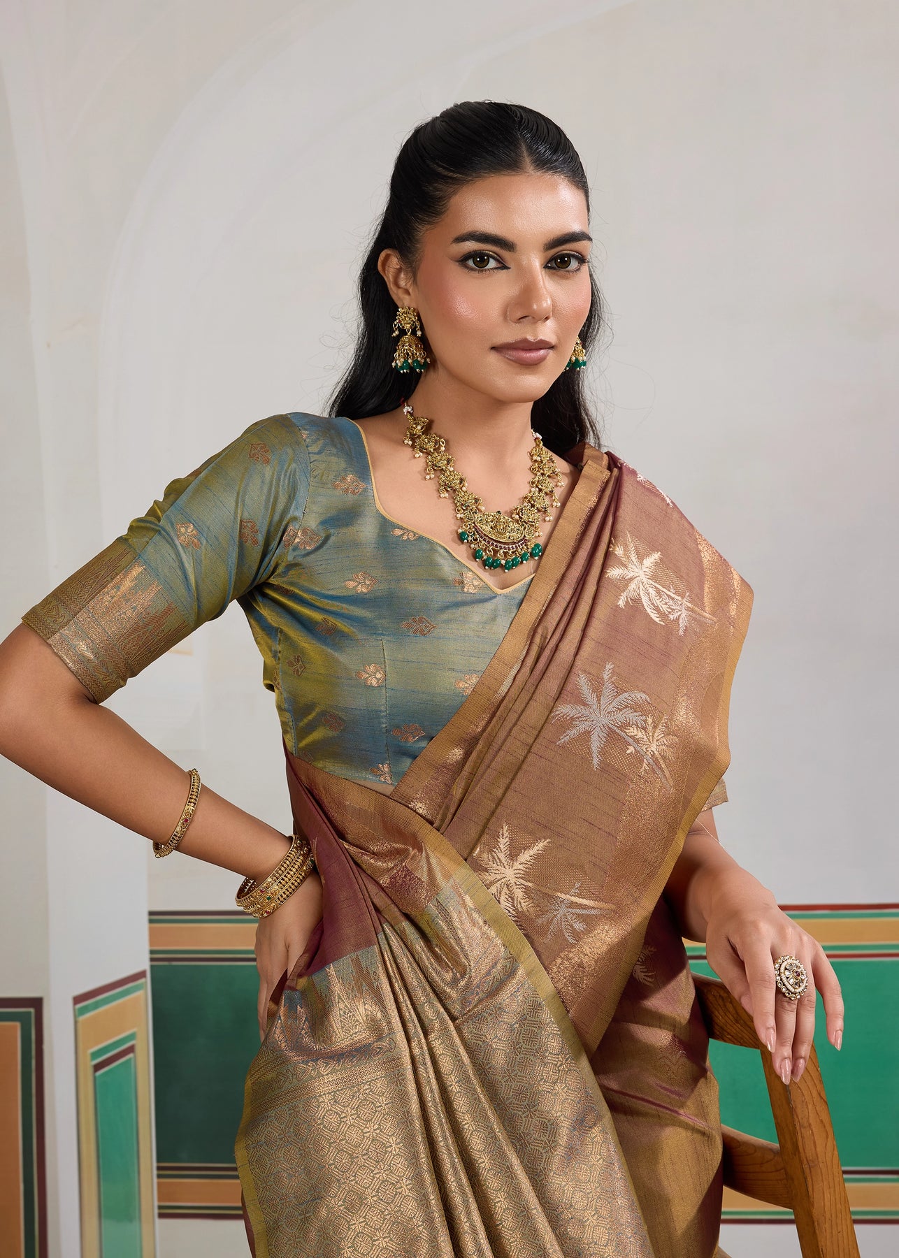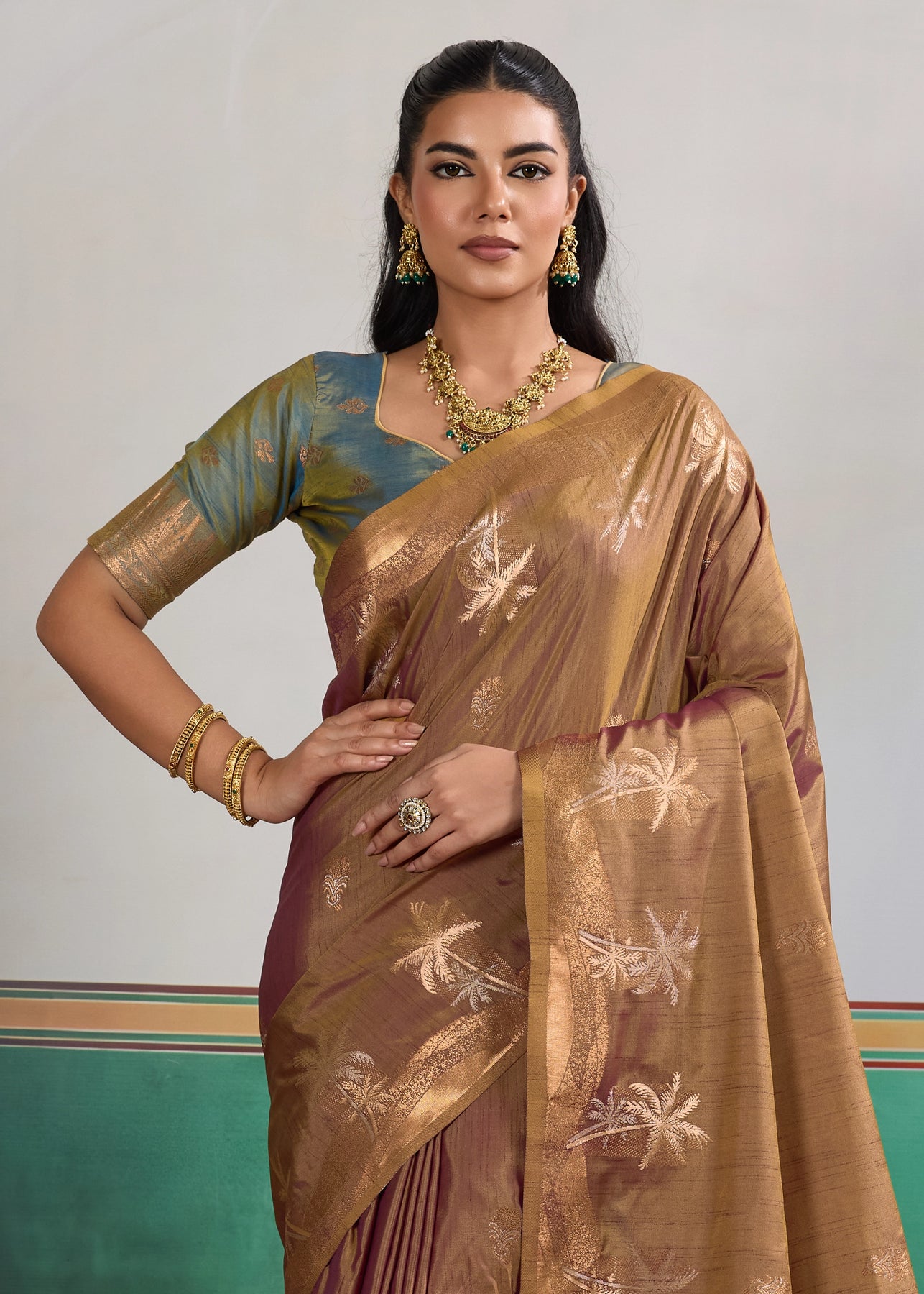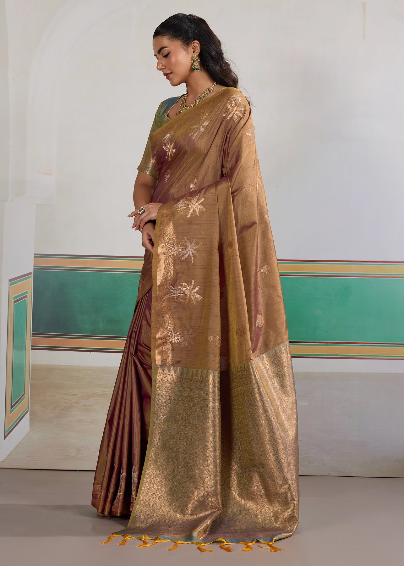 Arabian Brown Woven Linen Silk Saree