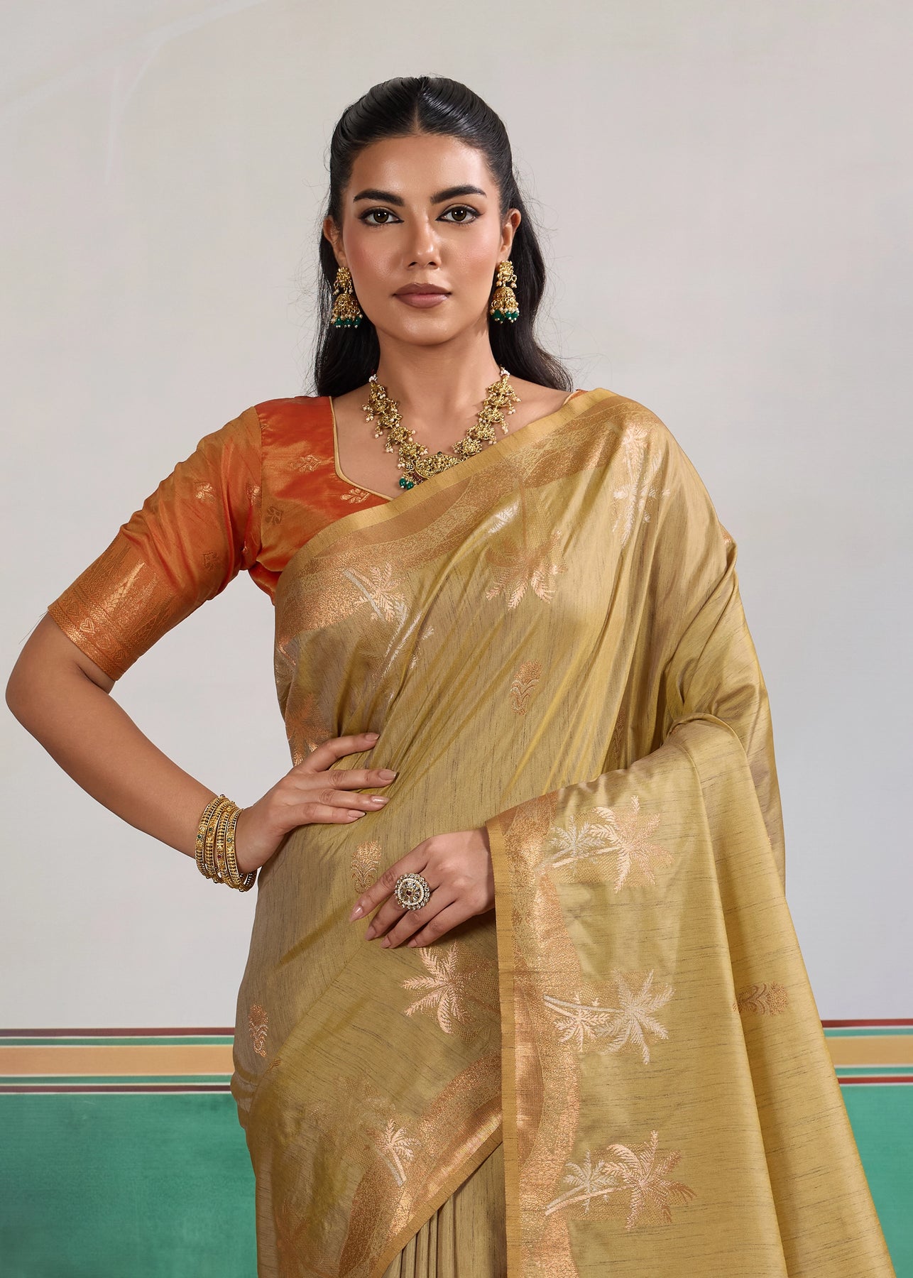 Golden Beige Woven Banarasi Silk Saree