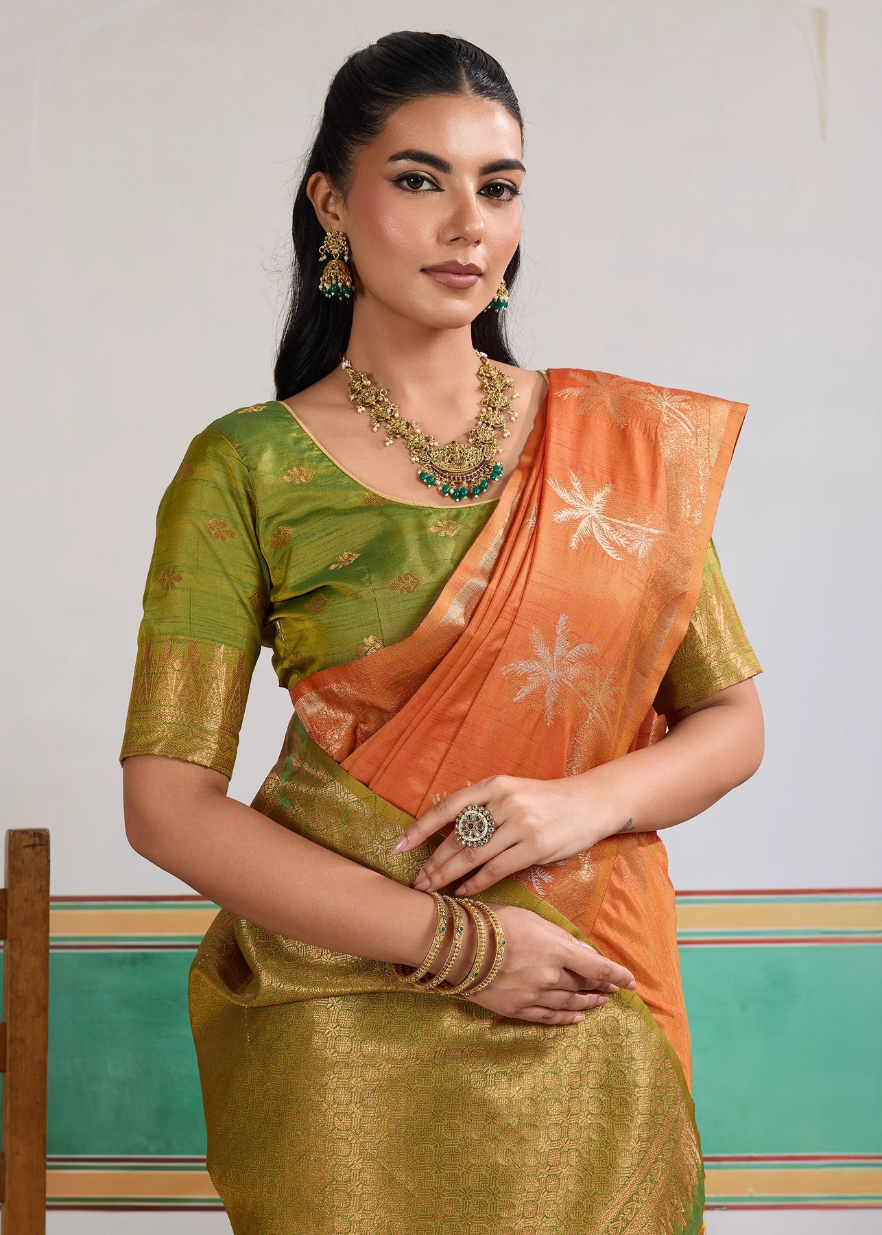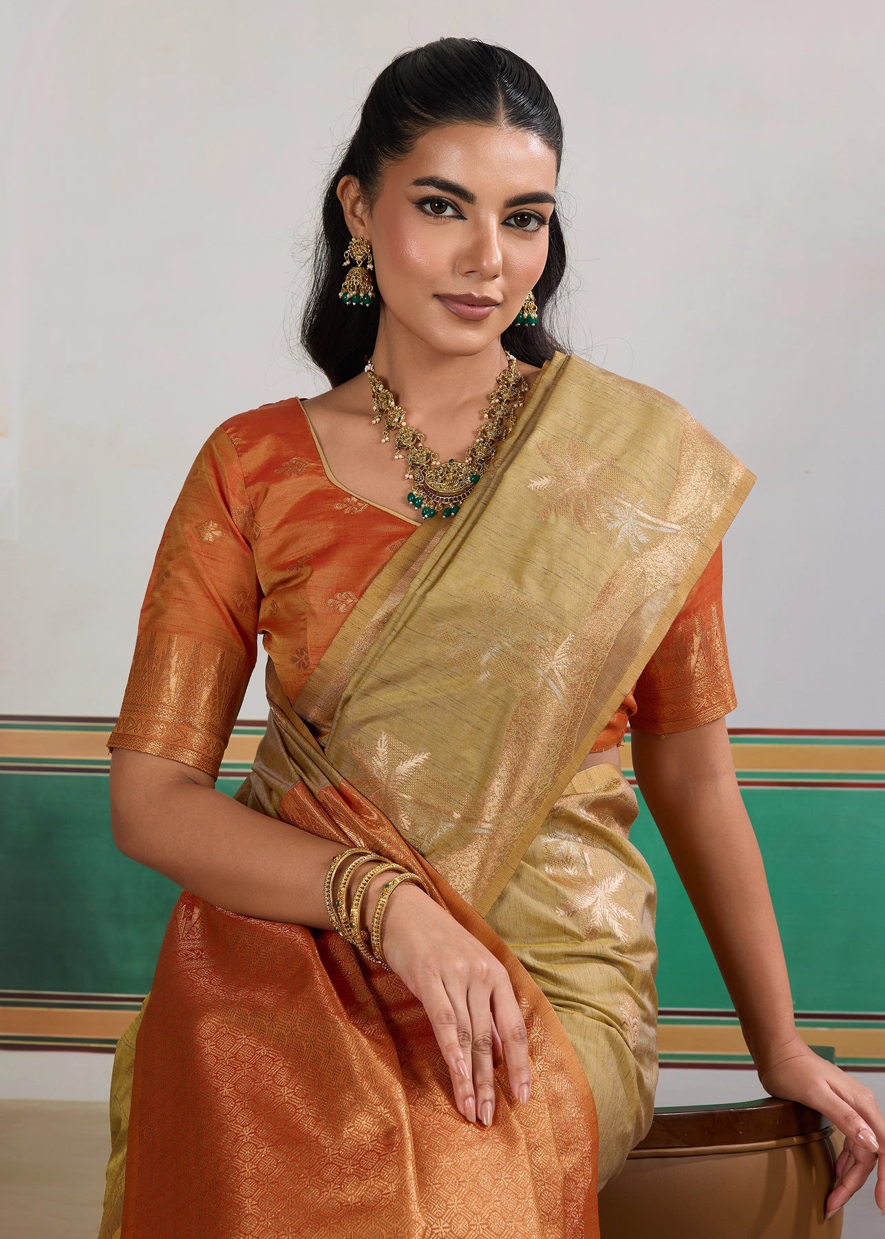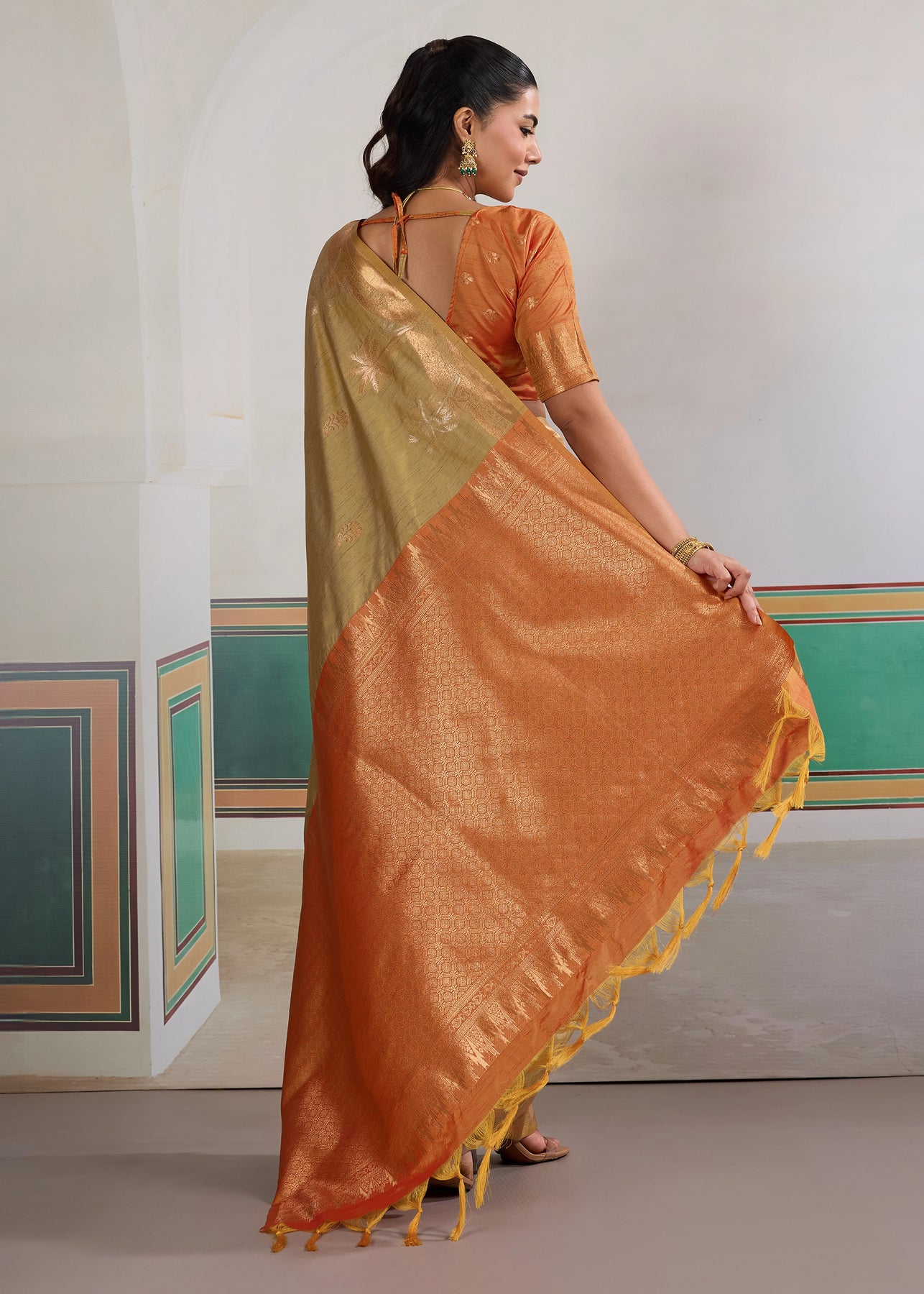Jaffa Orange Woven Cotton Silk Saree
