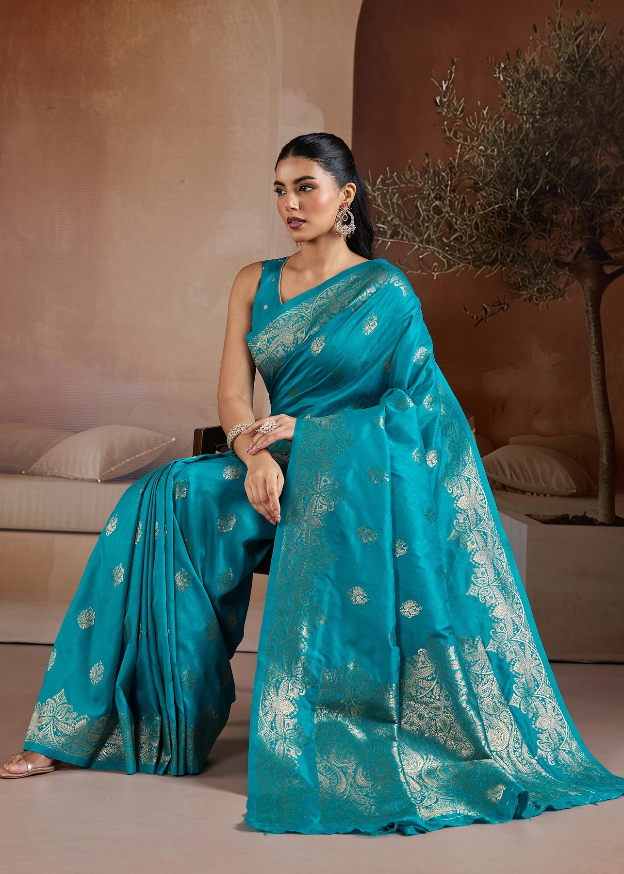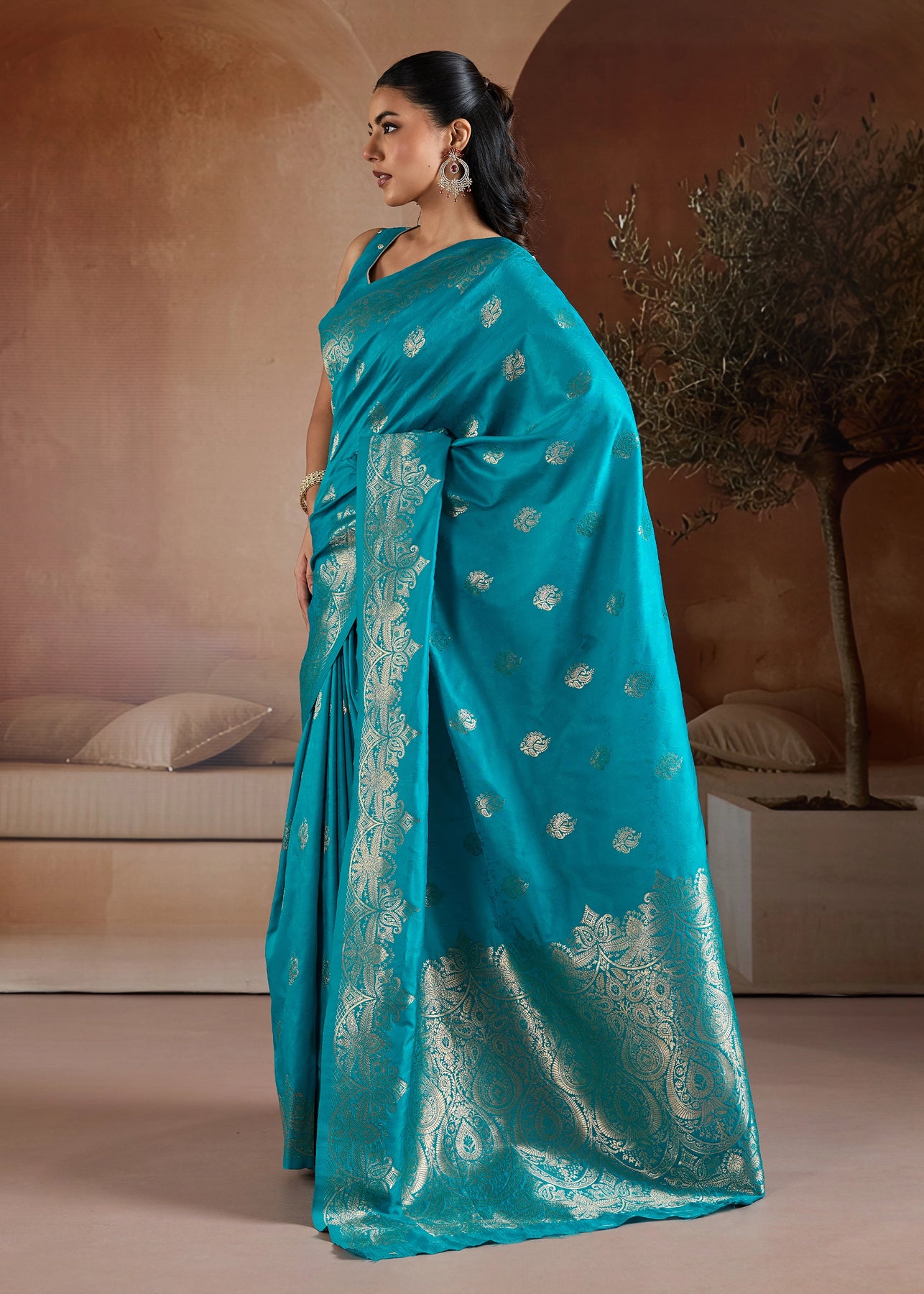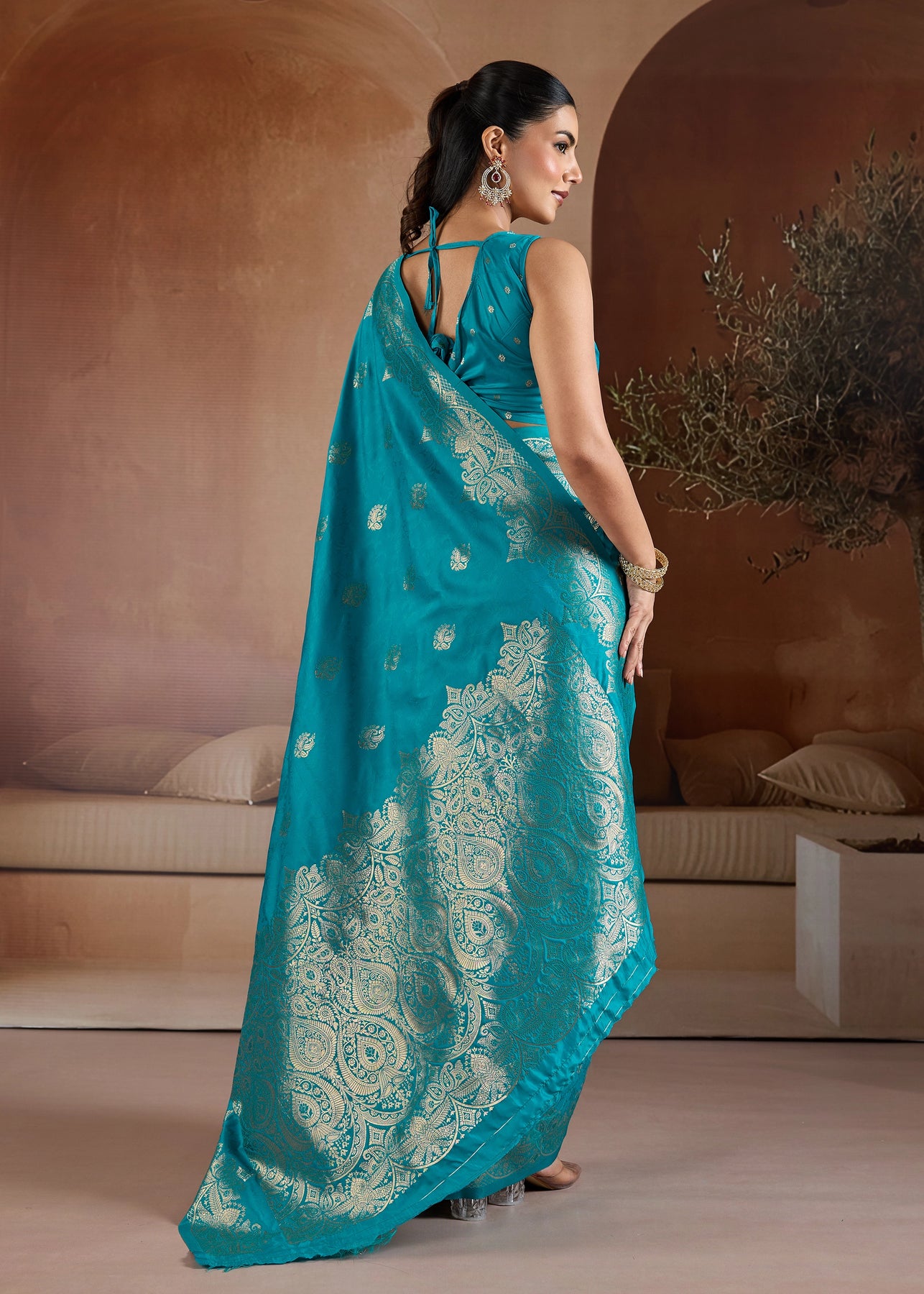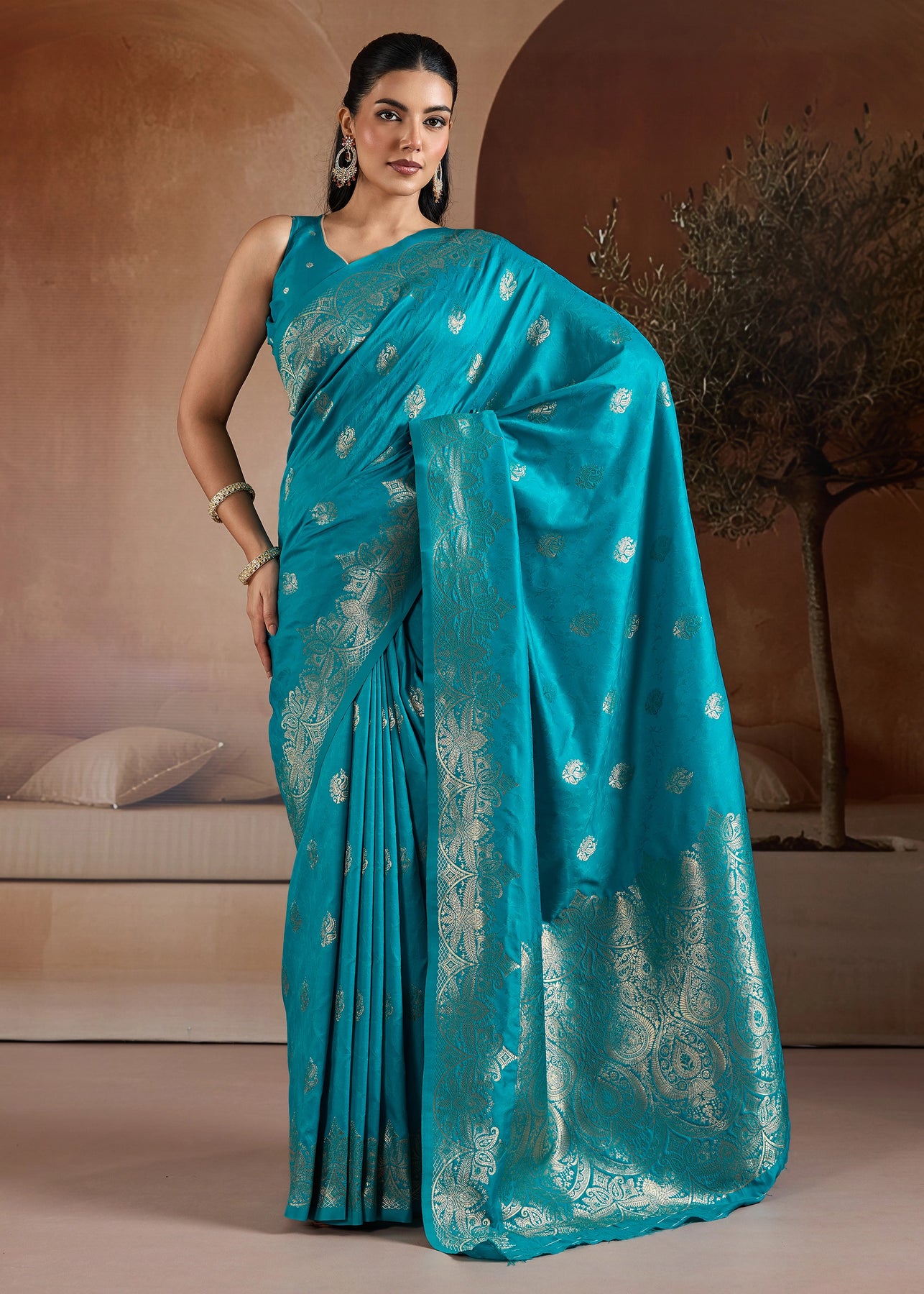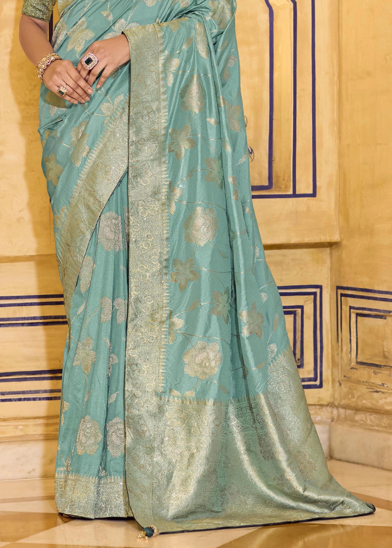 Aqua Blue Woven Banarasi Silk Saree