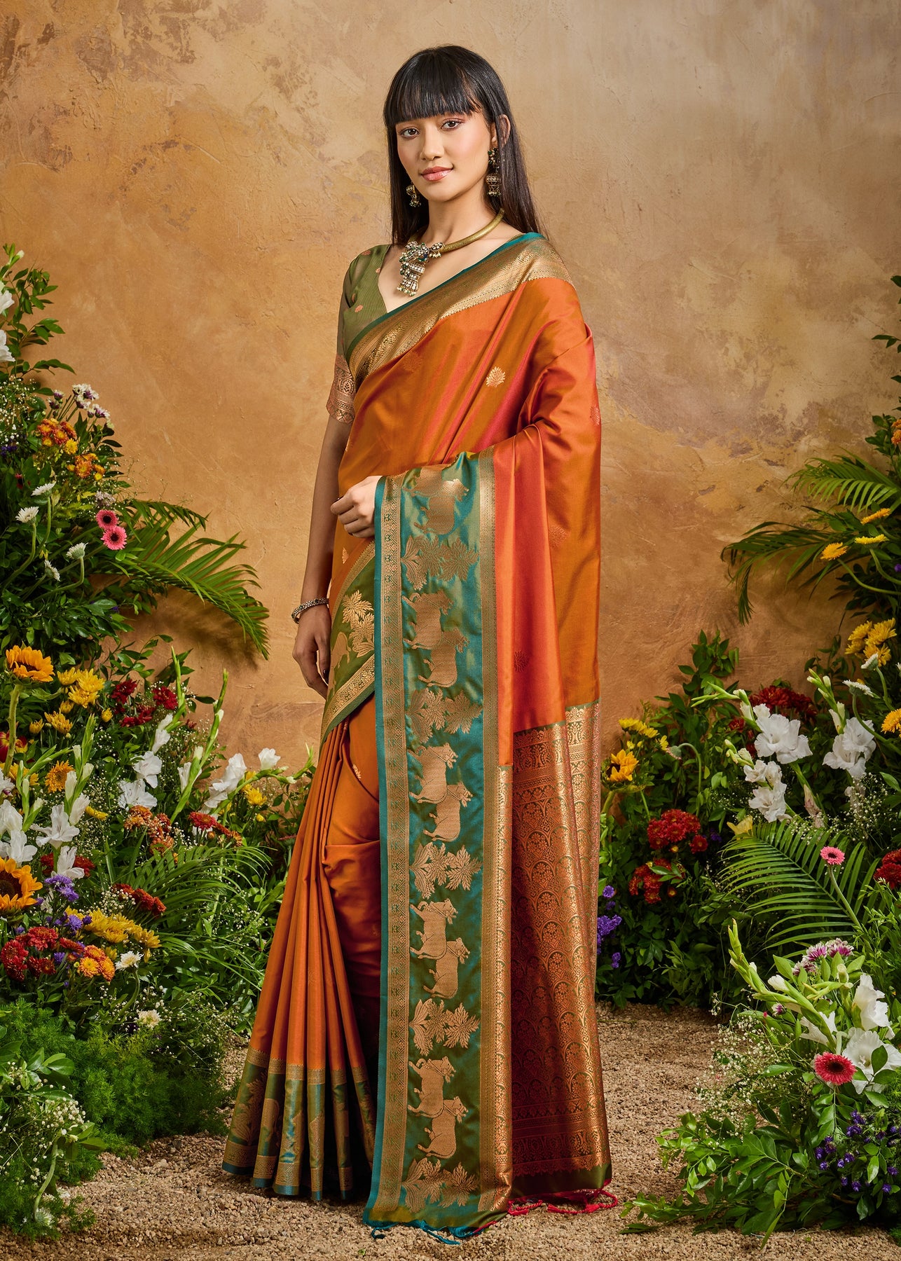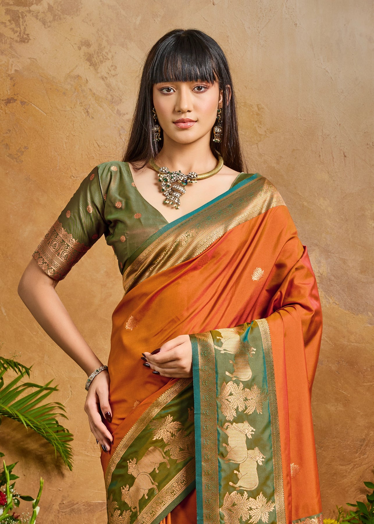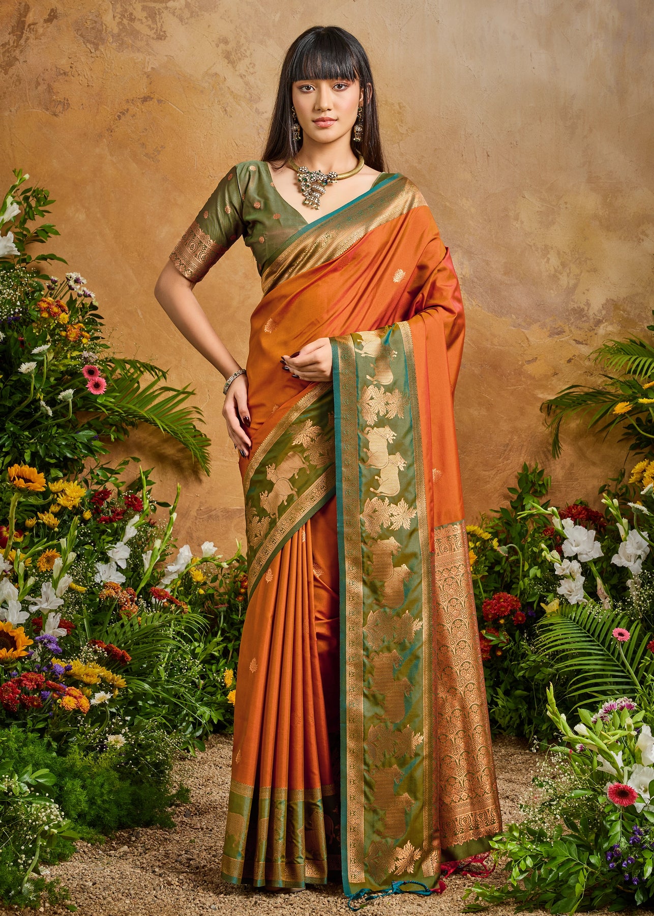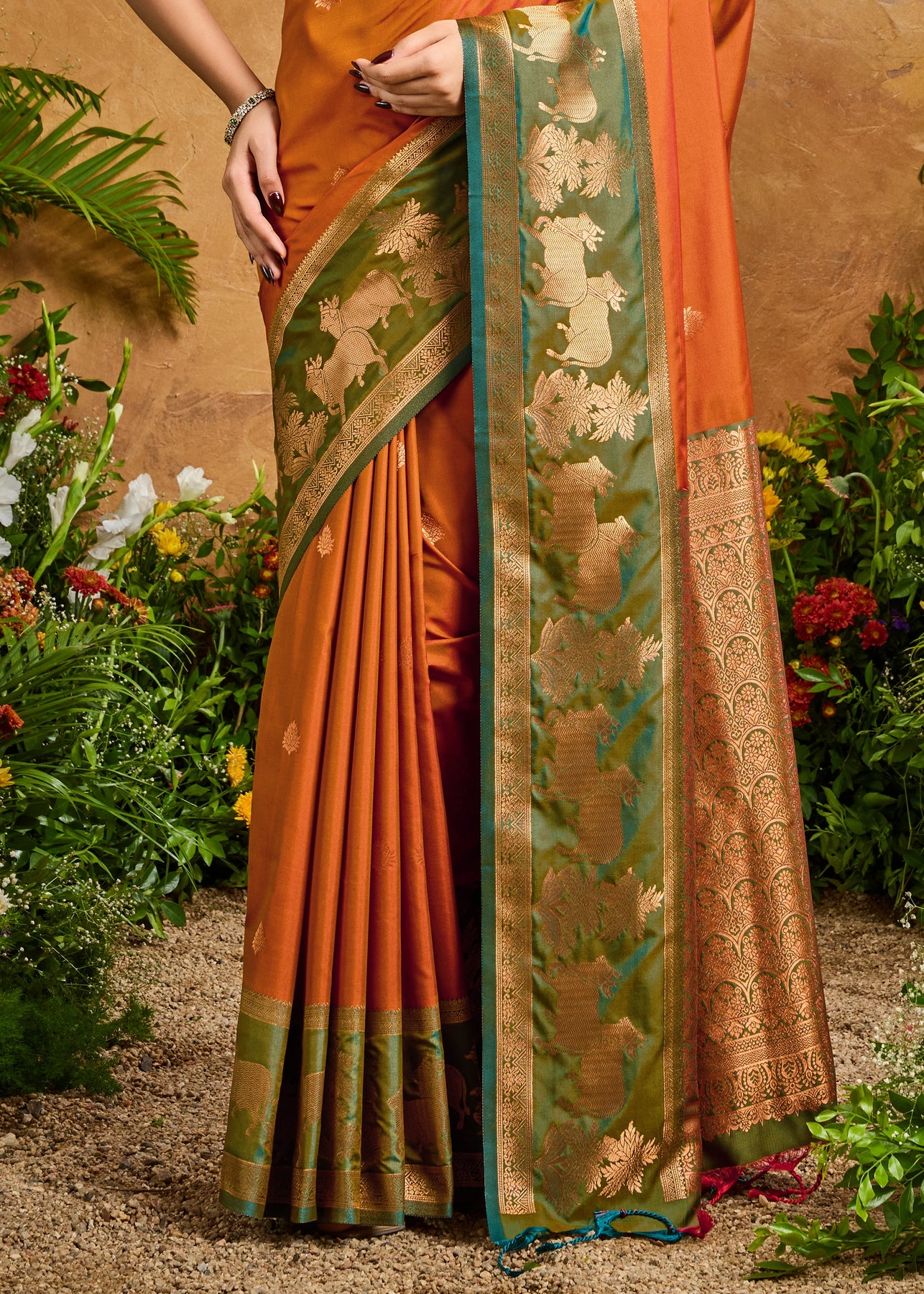 Burnt Orange Woven Banarasi Silk Saree