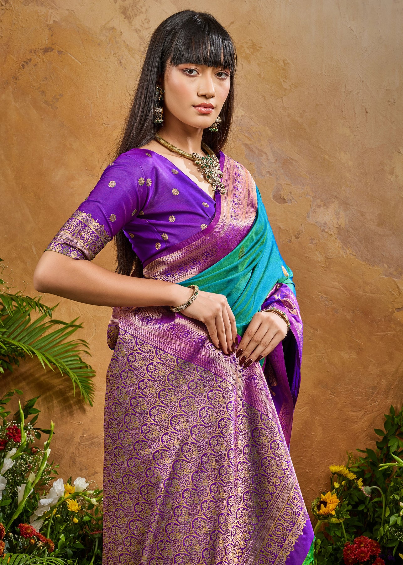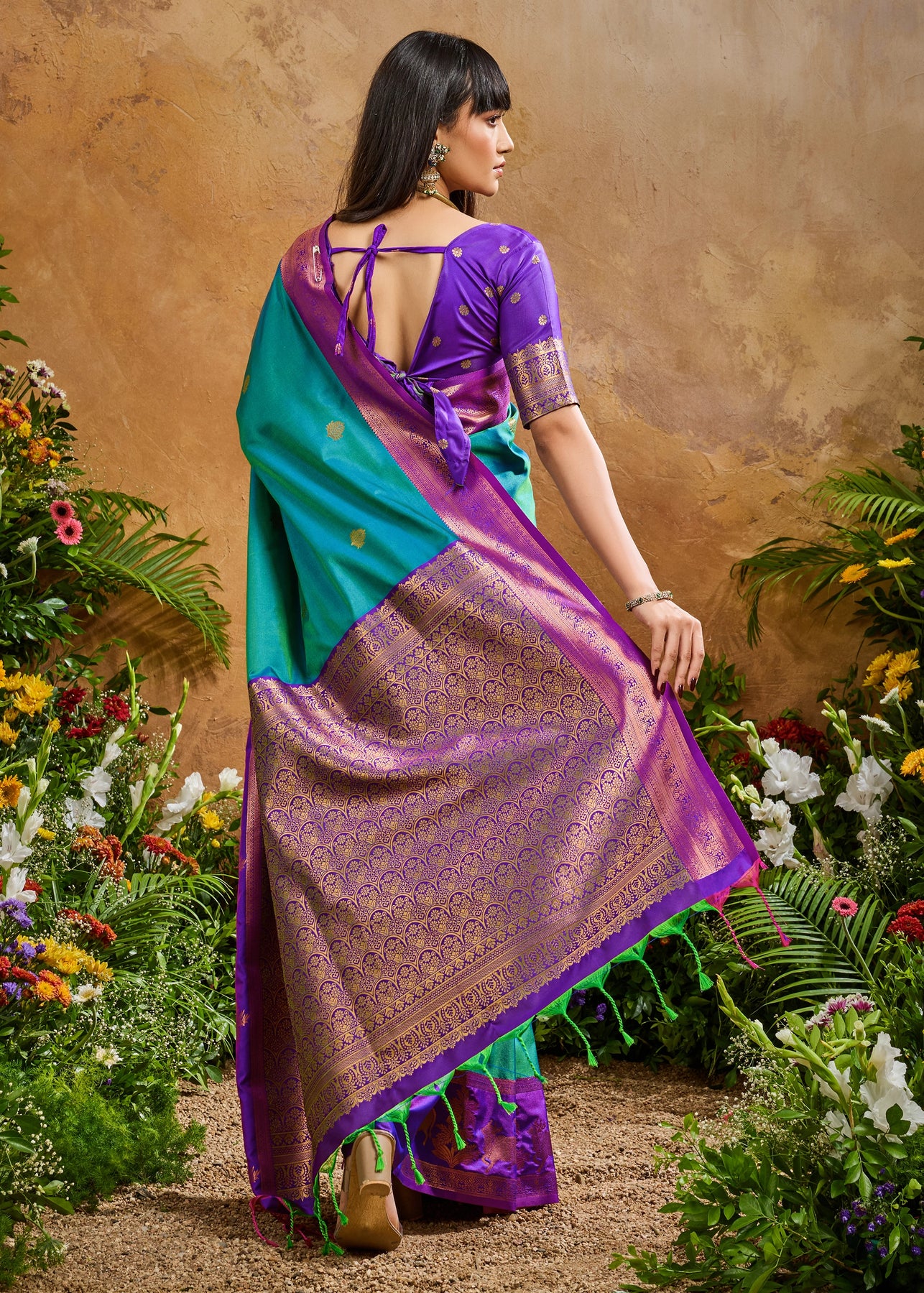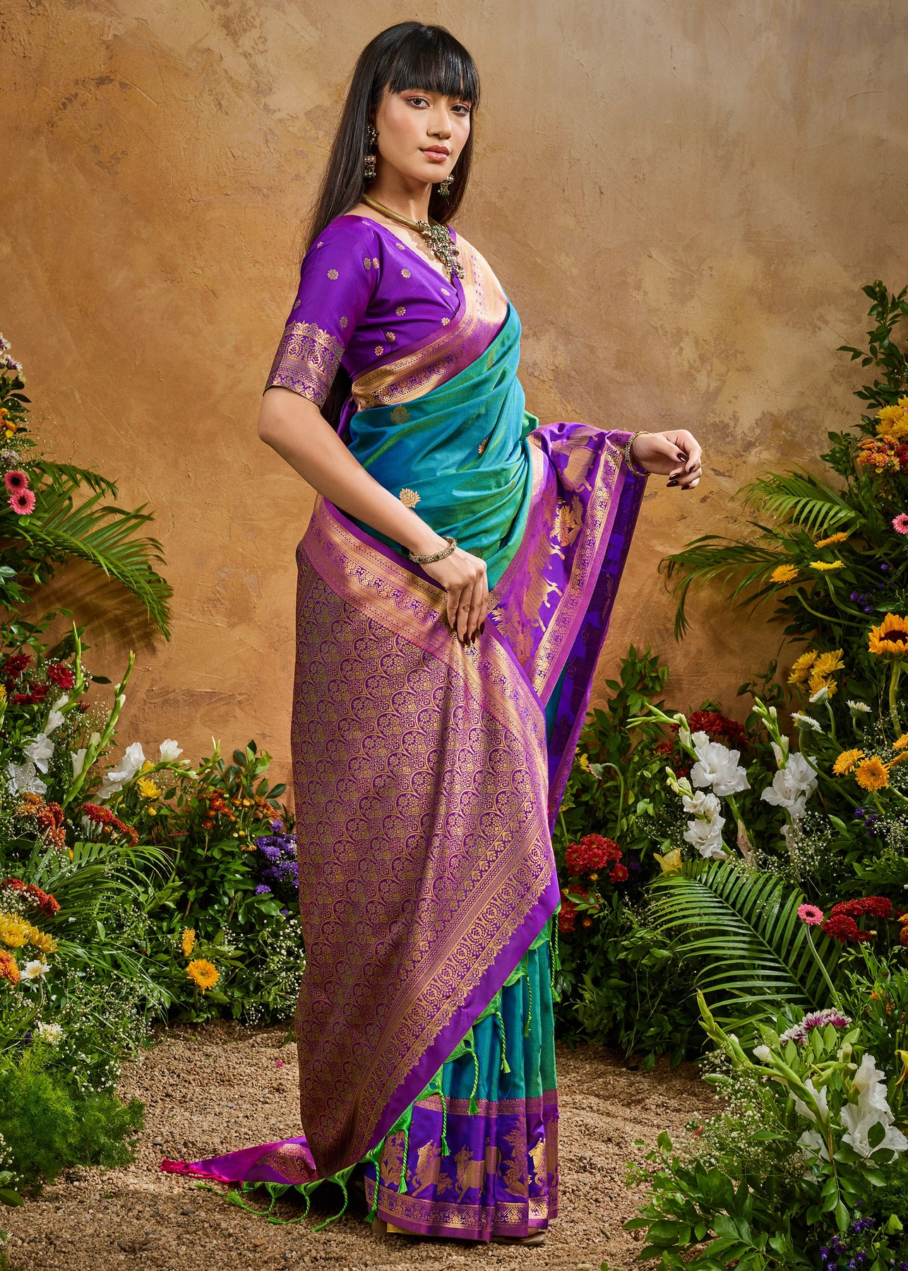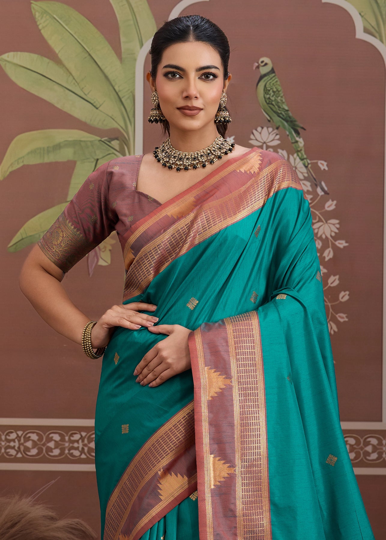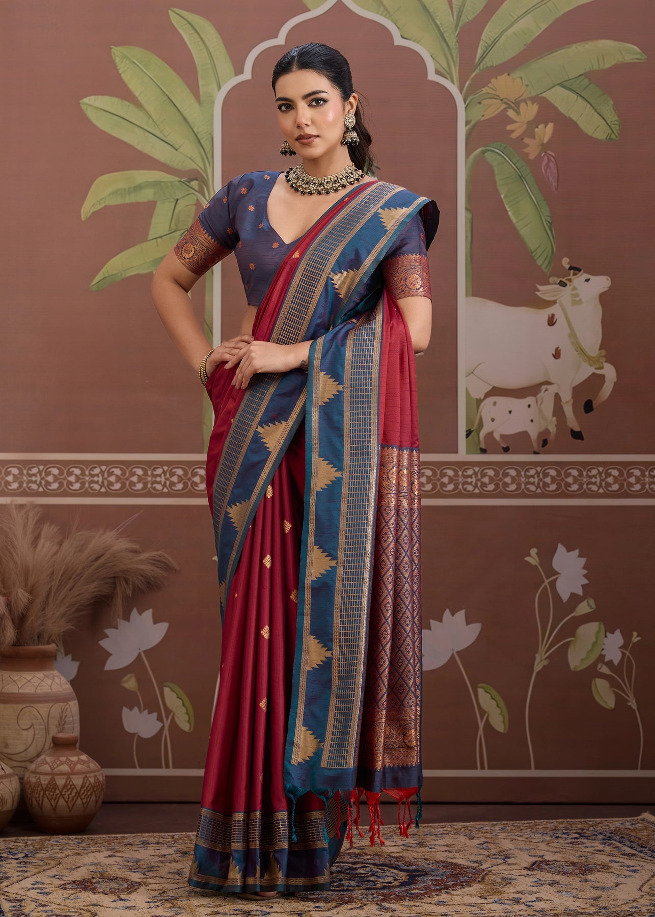 Pure delight that combine royalty and clam stability into your wardrobe. the rich zari weaving enhances the aura whereas thebrightcolors exude the richness of tradition. this beautiful 6-yard gives a aura a more enchanting appeal for any special occasions.