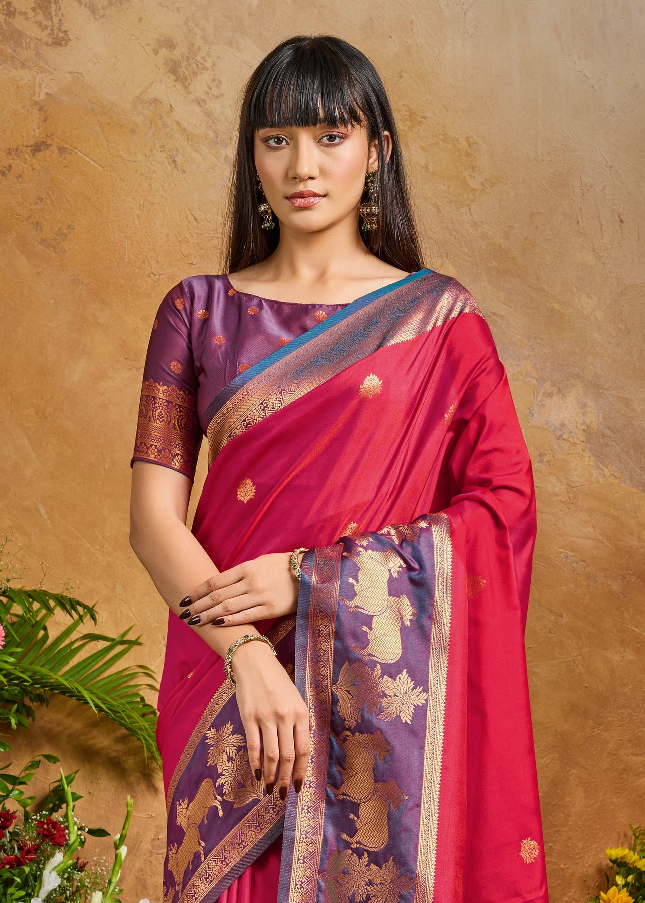Hot Pink Woven Banarasi Silk Saree