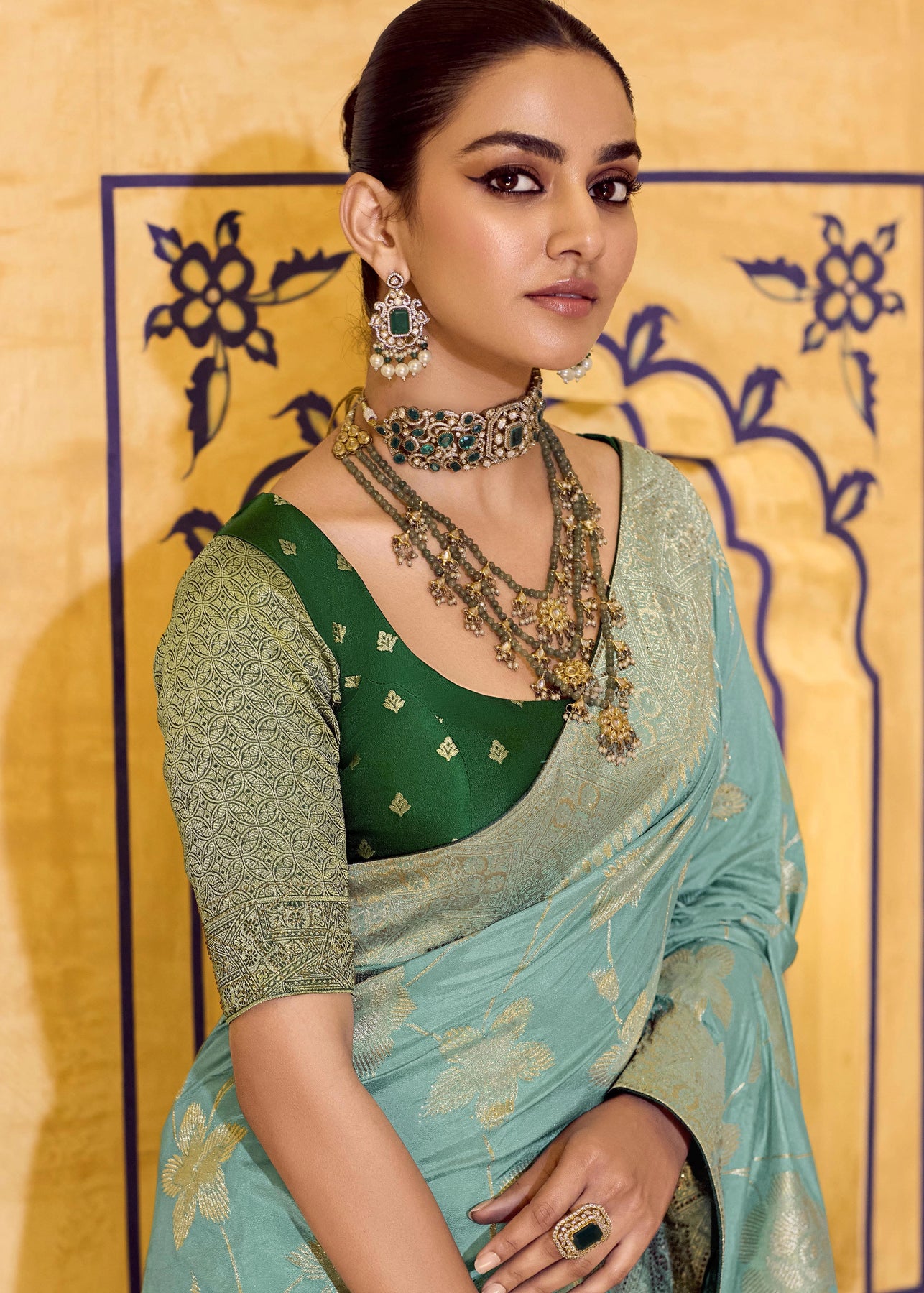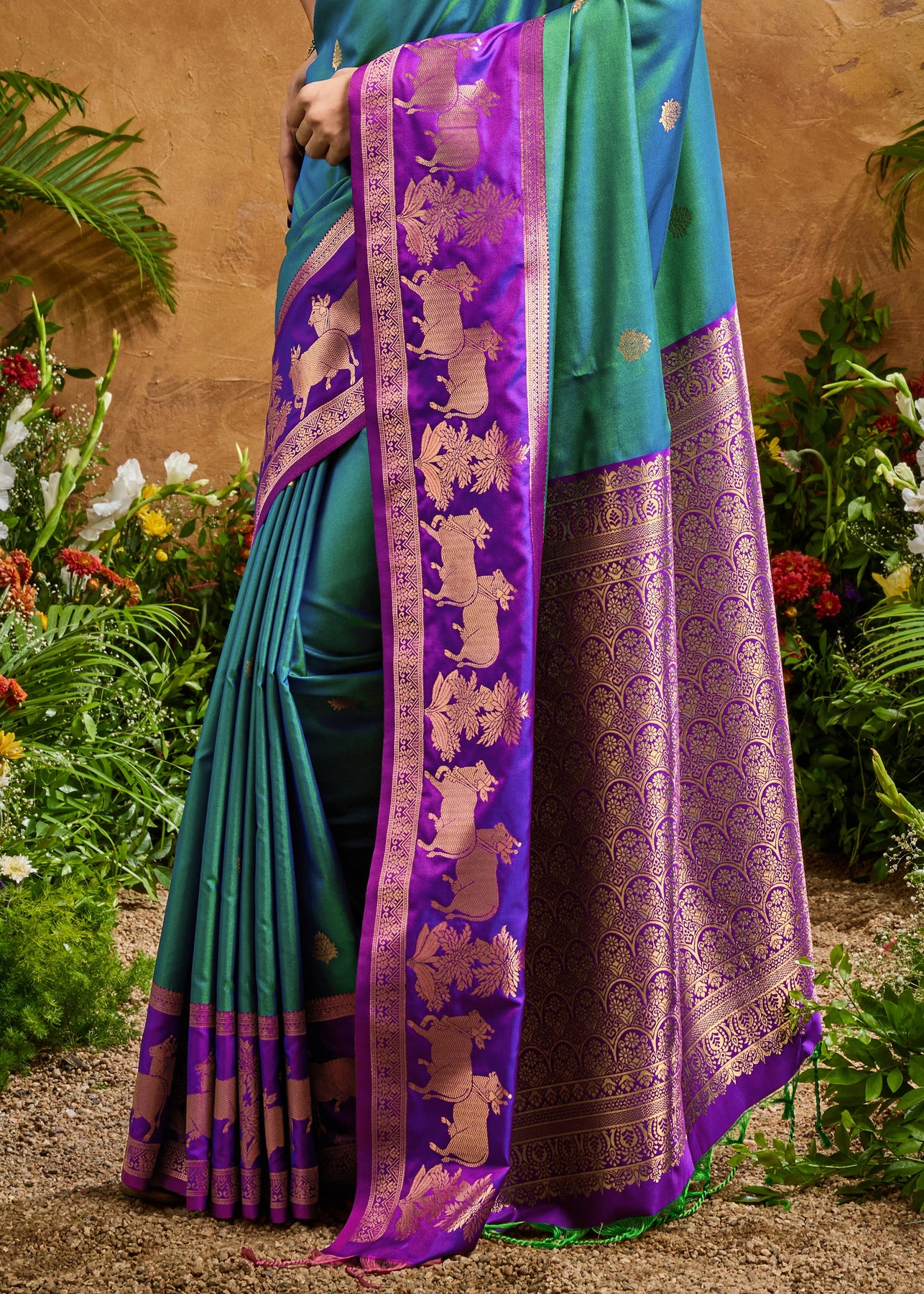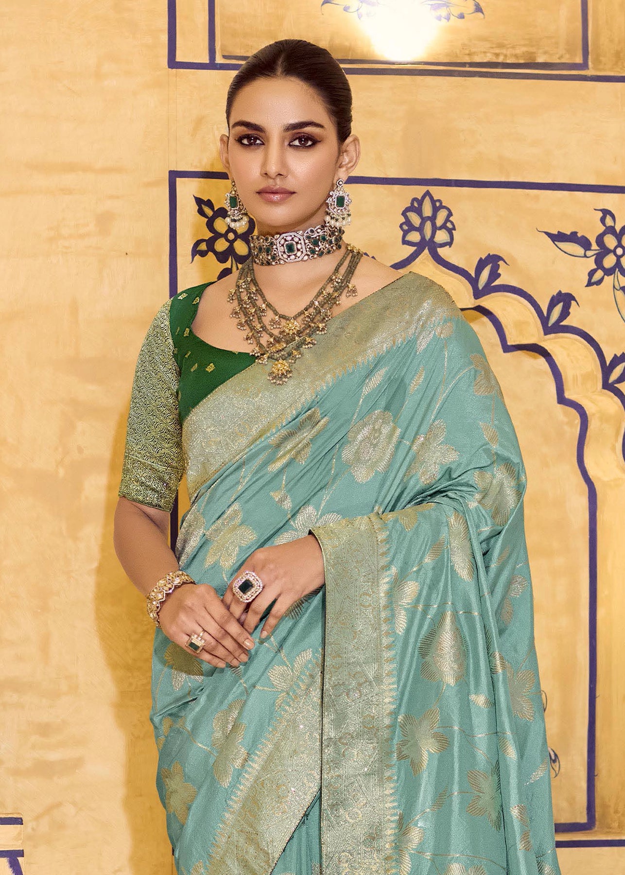 Marine Green Woven Banarasi Silk Saree