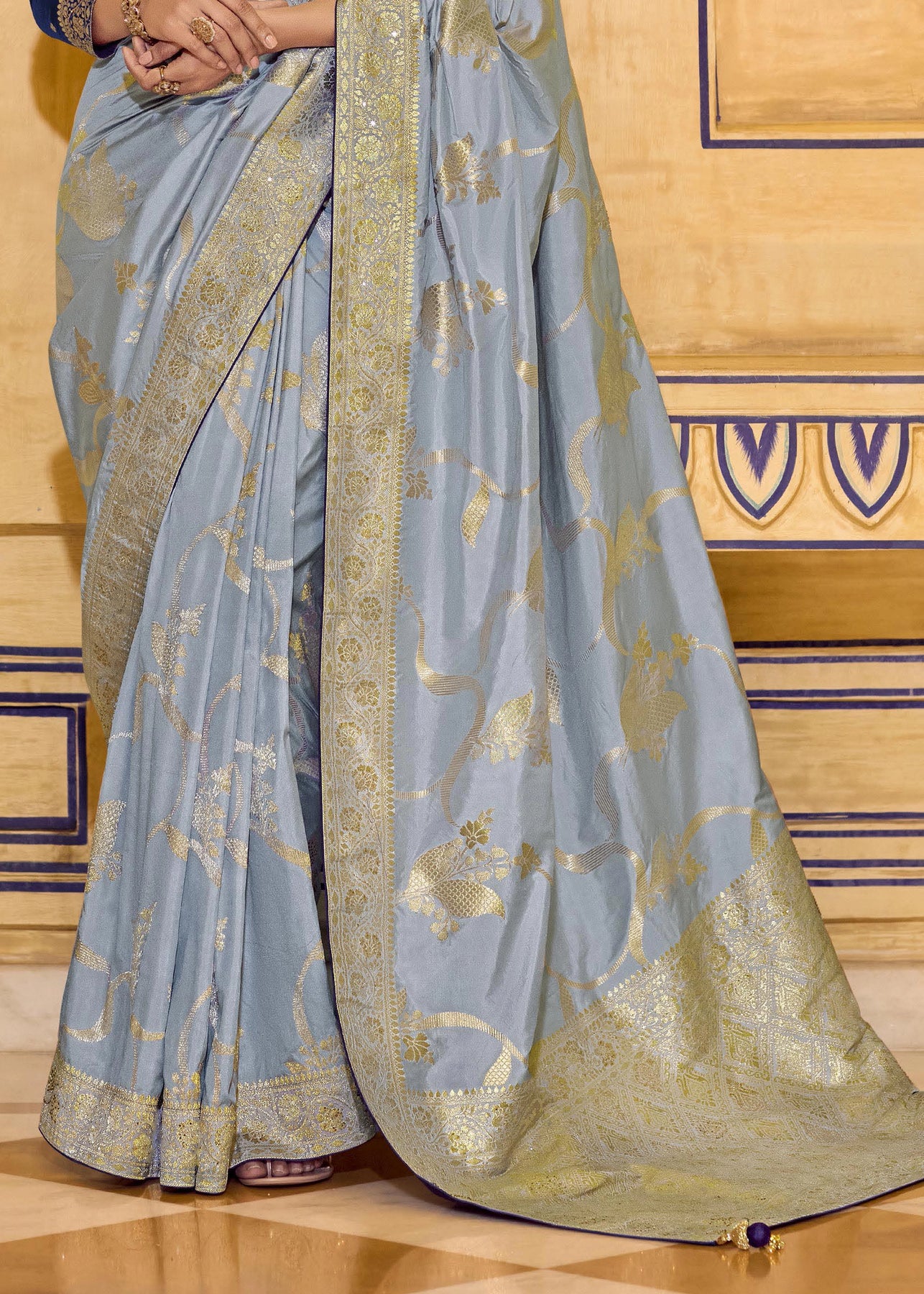 Swedish Blue Woven Banarasi Silk Saree